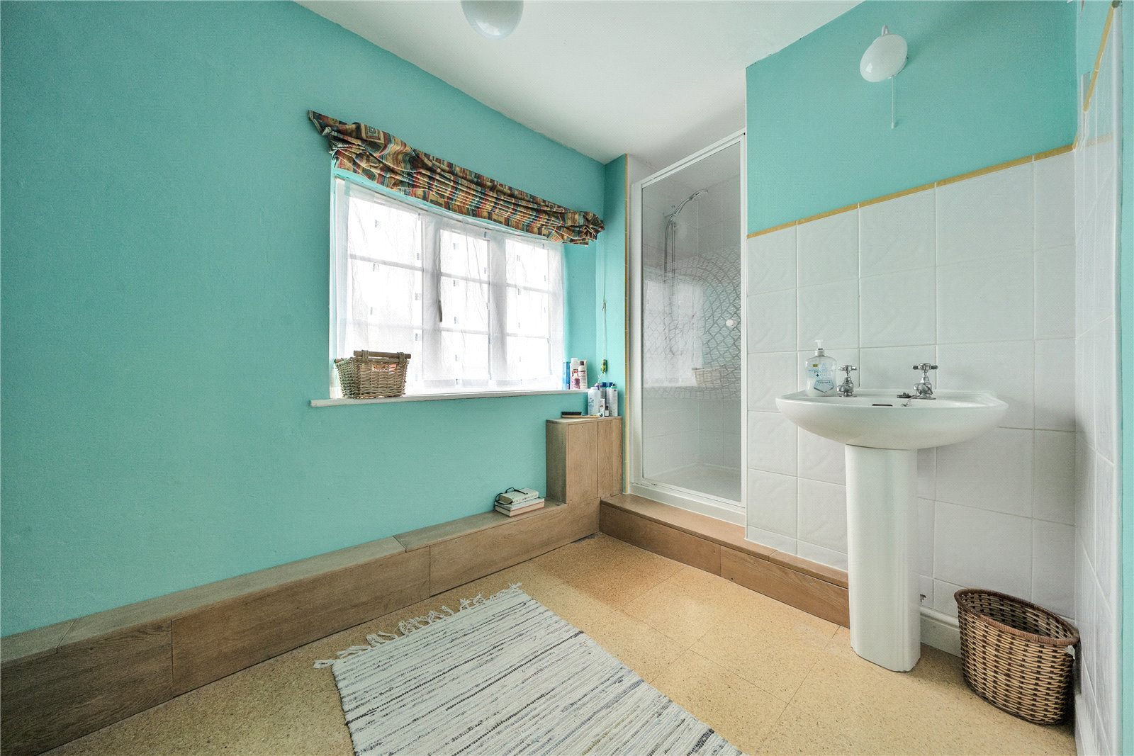 The staircase leads to the first-floor landing, where to the right, there is an airing cupboard, a shower room, and "The Granary Room", a spacious second bedroom featuring an external stone staircase that provides direct access to the garden. Continuing along the landing, bedroom three overlooks the rear garden, offering a peaceful and scenic view. The master bedroom, positioned at the front of the house, boasts a charming fireplace and its own shower room. A step leads to bedroom four, which includes a delightful window seat, adding character and charm. Also on this level is the family bathroom, which benefits from a window overlooking the garden, creating a bright and inviting space