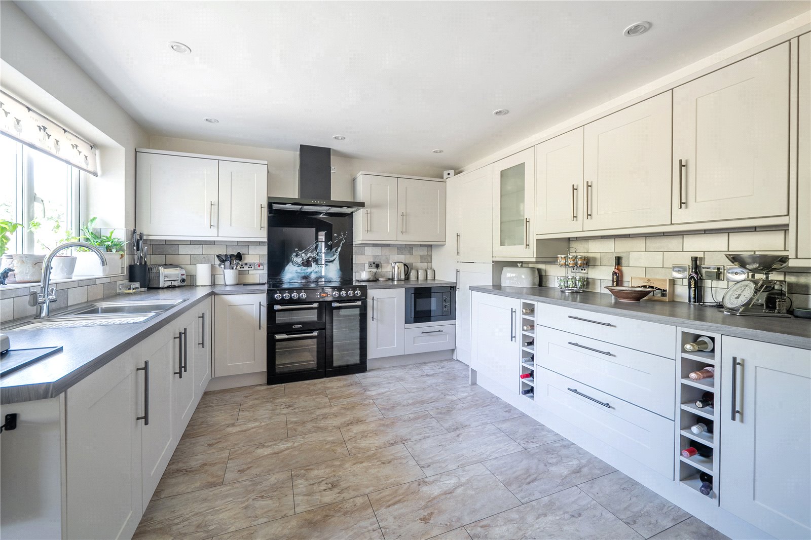 On the ground floor there is a generous living/dining area, study/bedroom 5, large kitchen, utility room (with door leading to rear garden) and wet room with w,c. A separate concealed door from the kitchen gives access to further reception room, shower room, kitchenette and two double bedrooms, ideal for separate living or as part of the main premises. The first floor provides a further two double bedrooms with en-suites.The property sits in a plot with wrap around garden, patio, double garage and ample parking.
