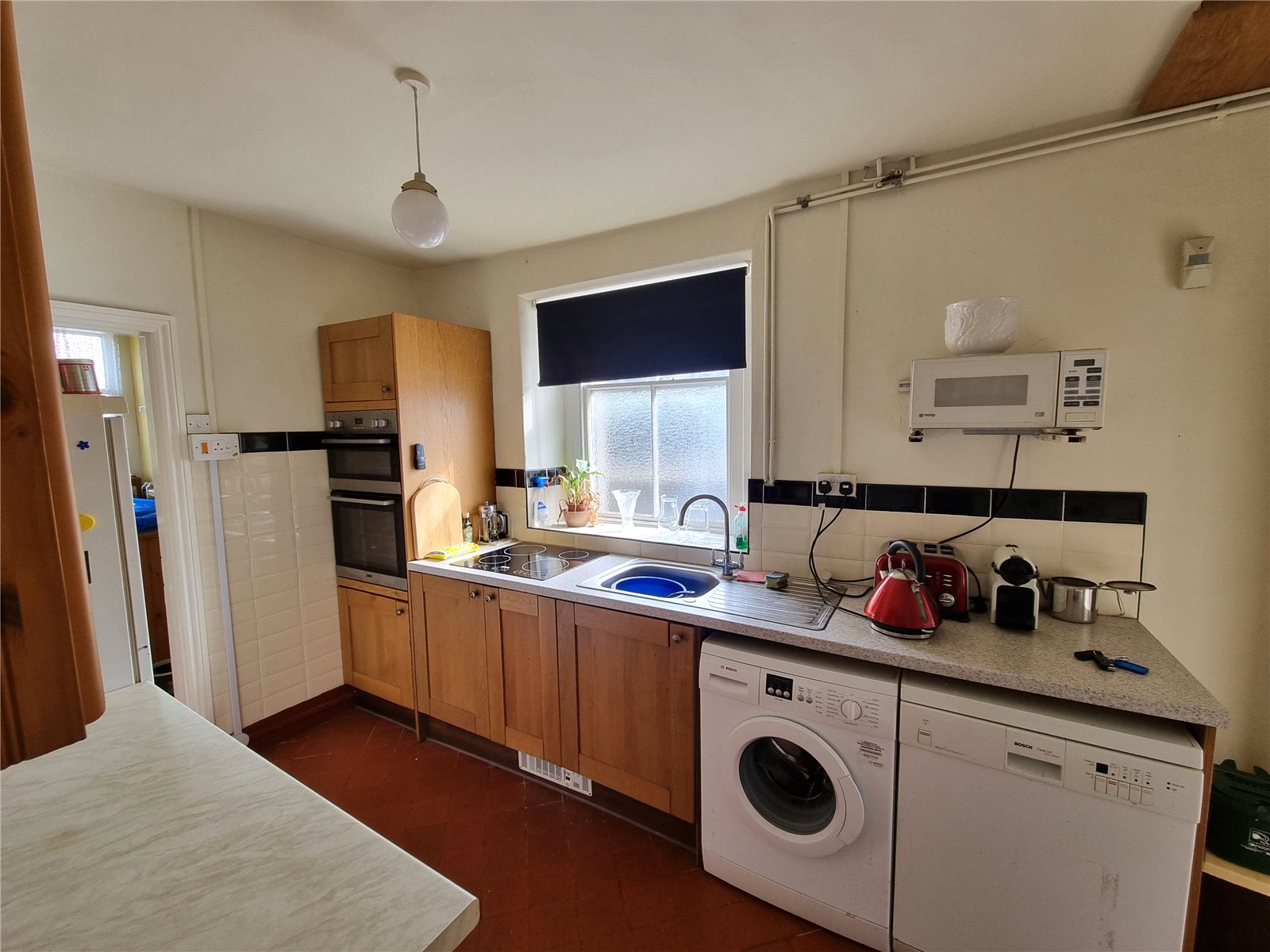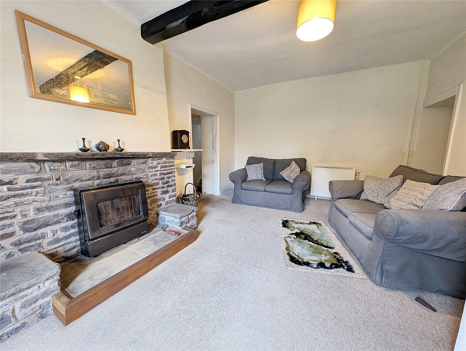 Following on into the kitchen with quarry tiled flooring, a range of fitted wall and base units, window, and pantry. A further door continues to a second hallway with door providing access to the side entrance, door to the annexe and a further sitting room with window and electric wood burning stove.