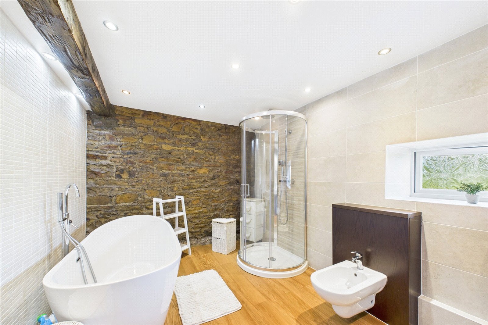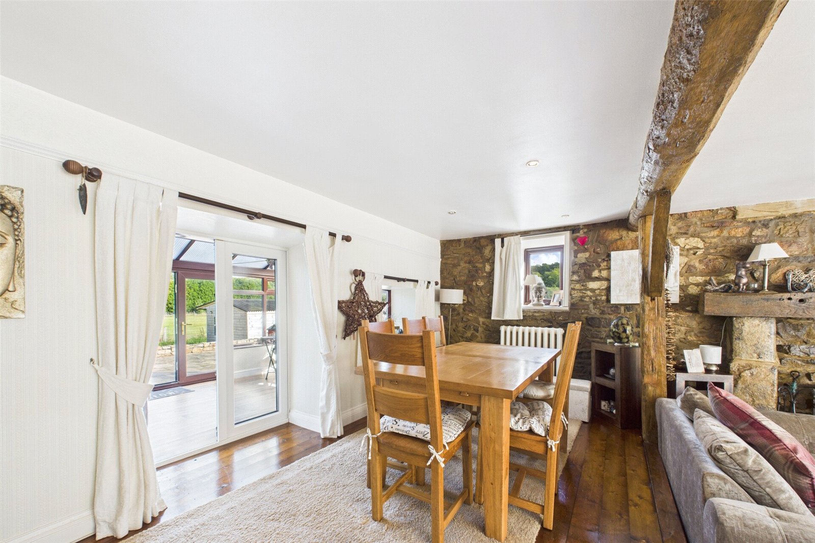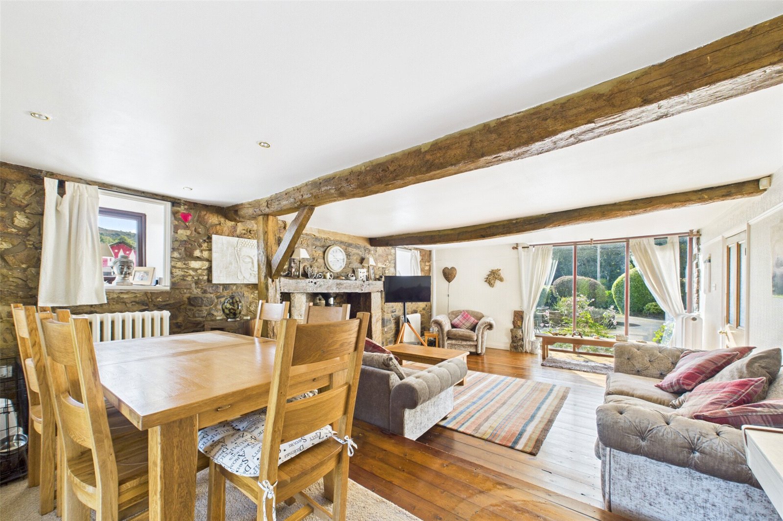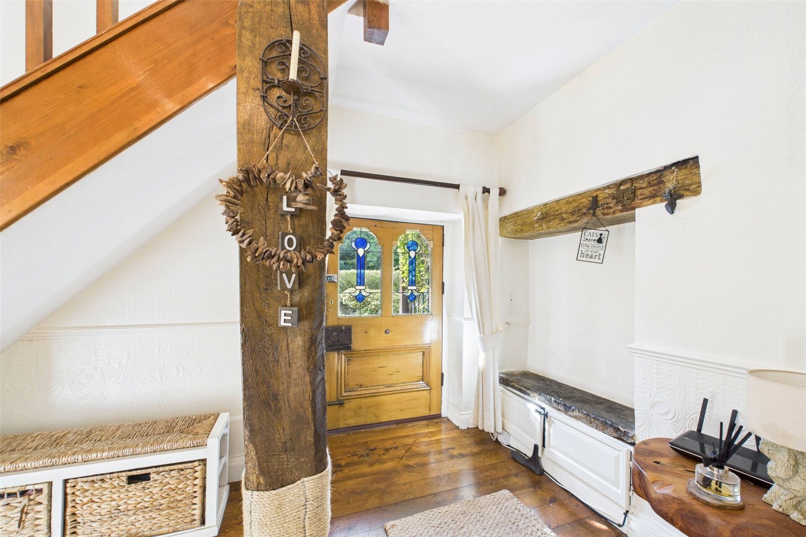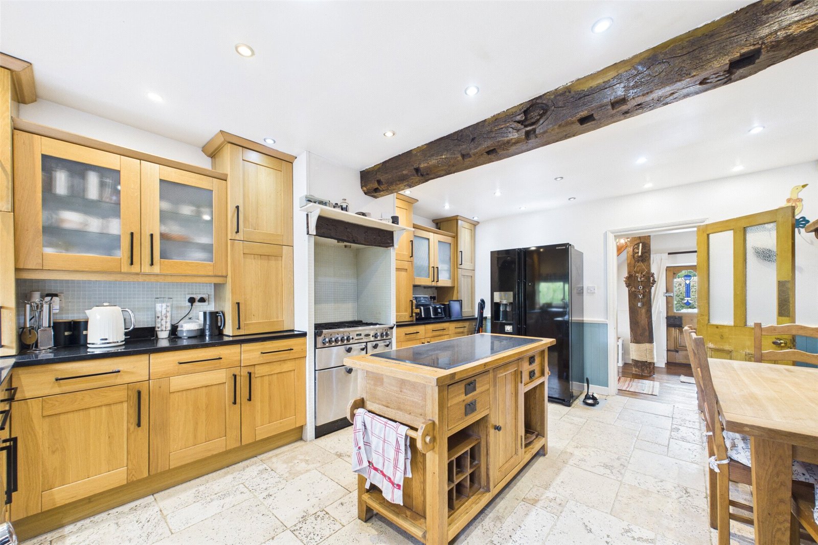 This home brims with a rustic charm that immediately draws you in. Its handsome stone facade, adorned with a mix of multi-pane and arched windows under a newly installed roof, gives it a striking presence. Inside, the care and attention to detail are evident at every turn. The warm and inviting living spaces are filled with character, from the original support beams and exposed stone walls to the stunning arched window that bathes the living room in natural light. The kitchen/diner, the true heart of this home, combines rustic charm with modern functionality. It's a space where memories are made, with elegant travertine floors, original timber beams, and a magnificent Rangemaster cooker set within a charming mosaic-tiled alcove.