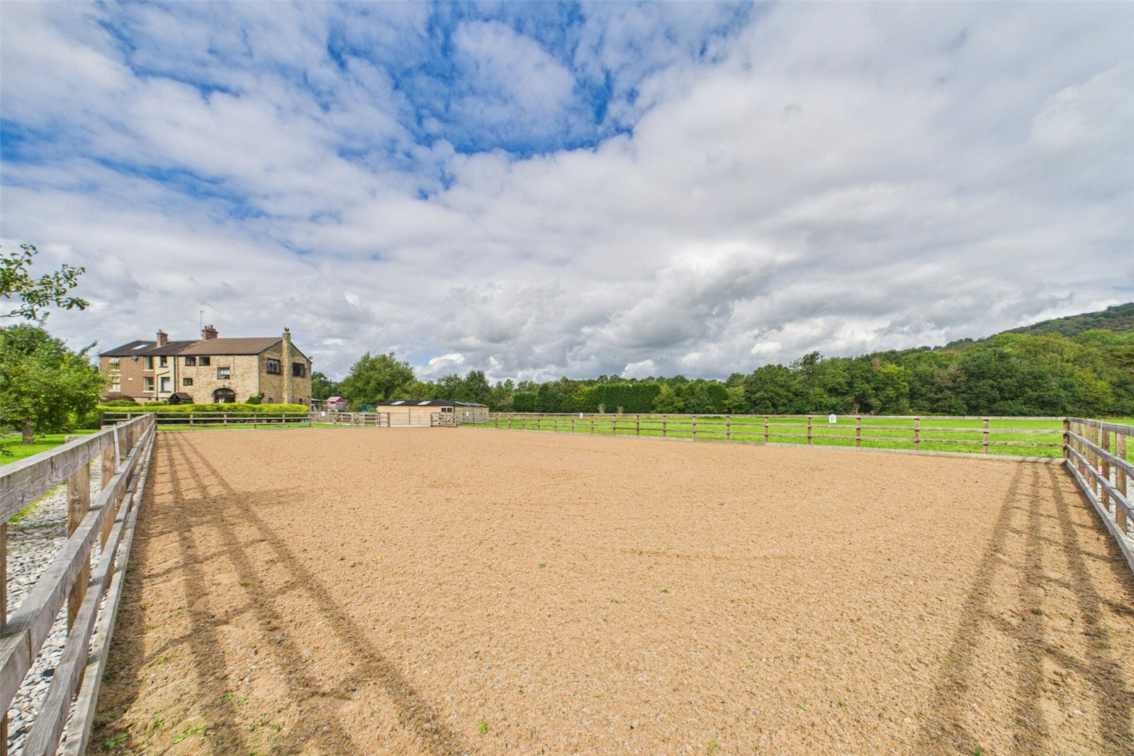 Grazing Land: Approximately seven acres of level, well-drained land have been thoughtfully divided into multiple paddocks for rotational grazing, all secured with smart post-and-rail fencing. The entire complex is a picturesque oasis, backed by mature trees and the peaceful Goyt river.