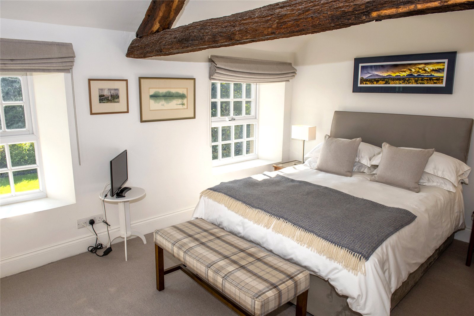 The cottage's exterior is a testament to its timeless appeal, featuring beautifully maintained stone walls and timber frame doors. The surrounding gardens, meticulously landscaped, create a serene ambience that complements the property's rustic charm.