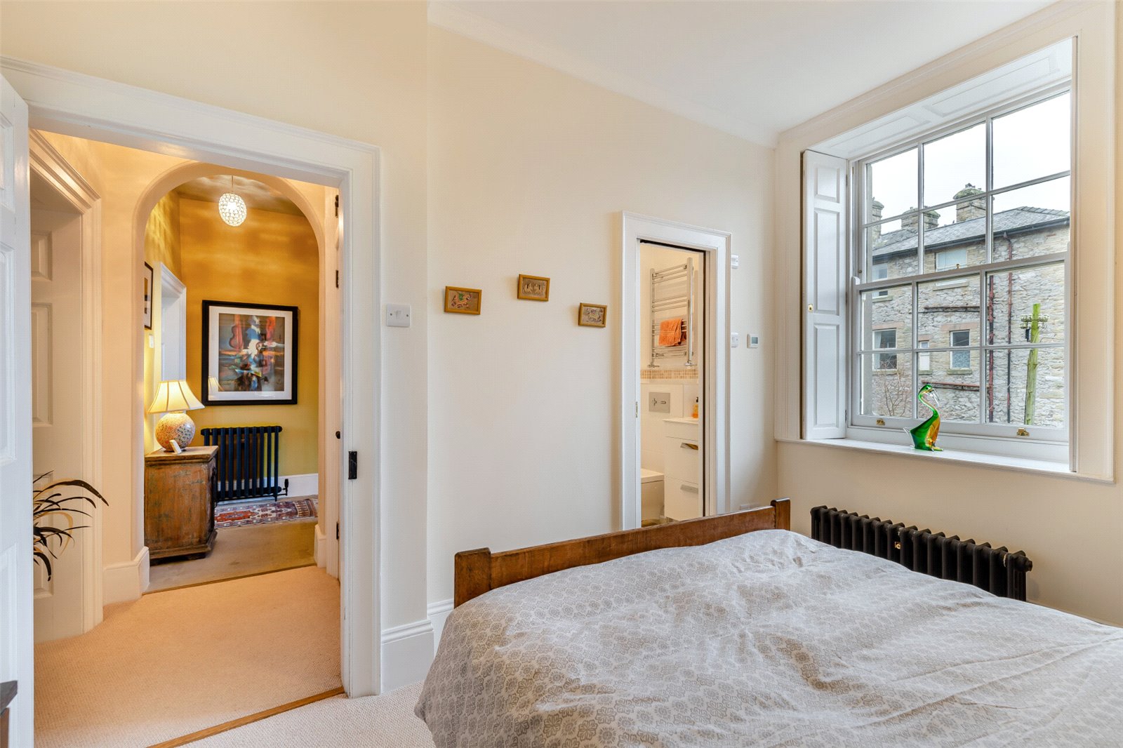 The main bedroom on the second floor offers a private sanctuary with park views. Unwind in the spacious bathroom with a unique characterful stone wall, featuring a walk-in shower, freestanding bath, and heated towel rail. An anteroom to the main bedroom and bathroom gives access to a walk-in wardrobe. The third bedroom also benefits from park views.