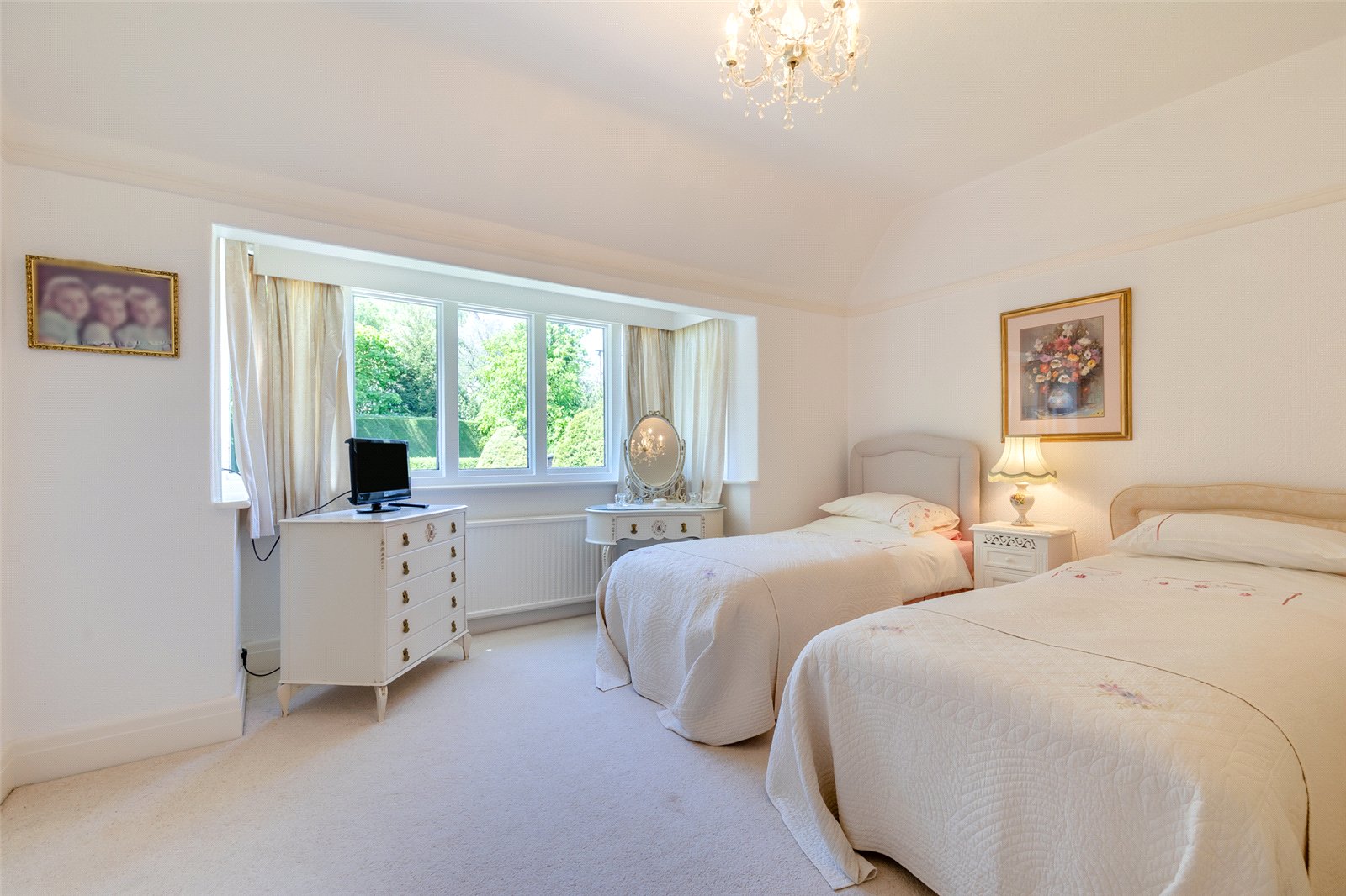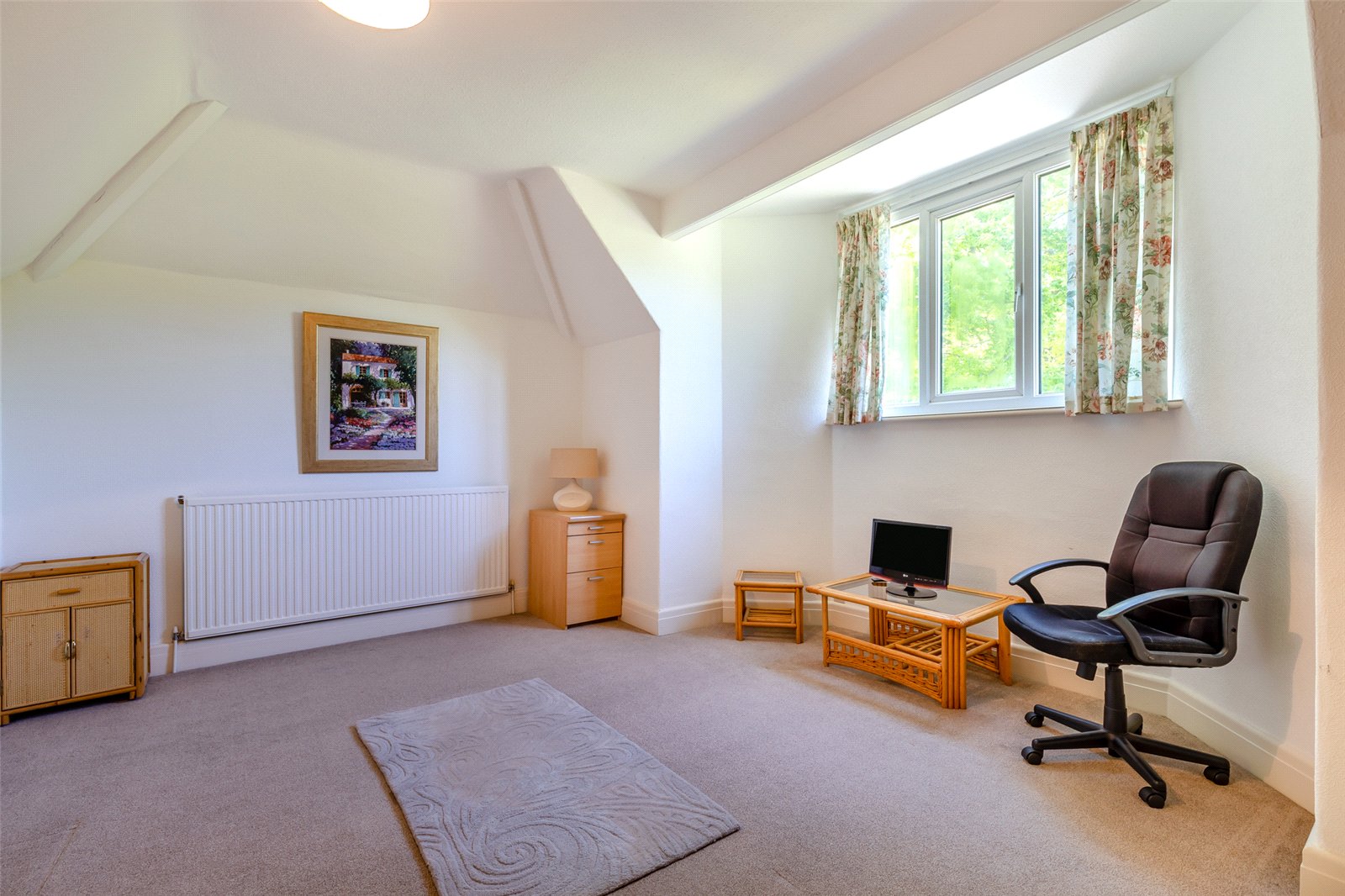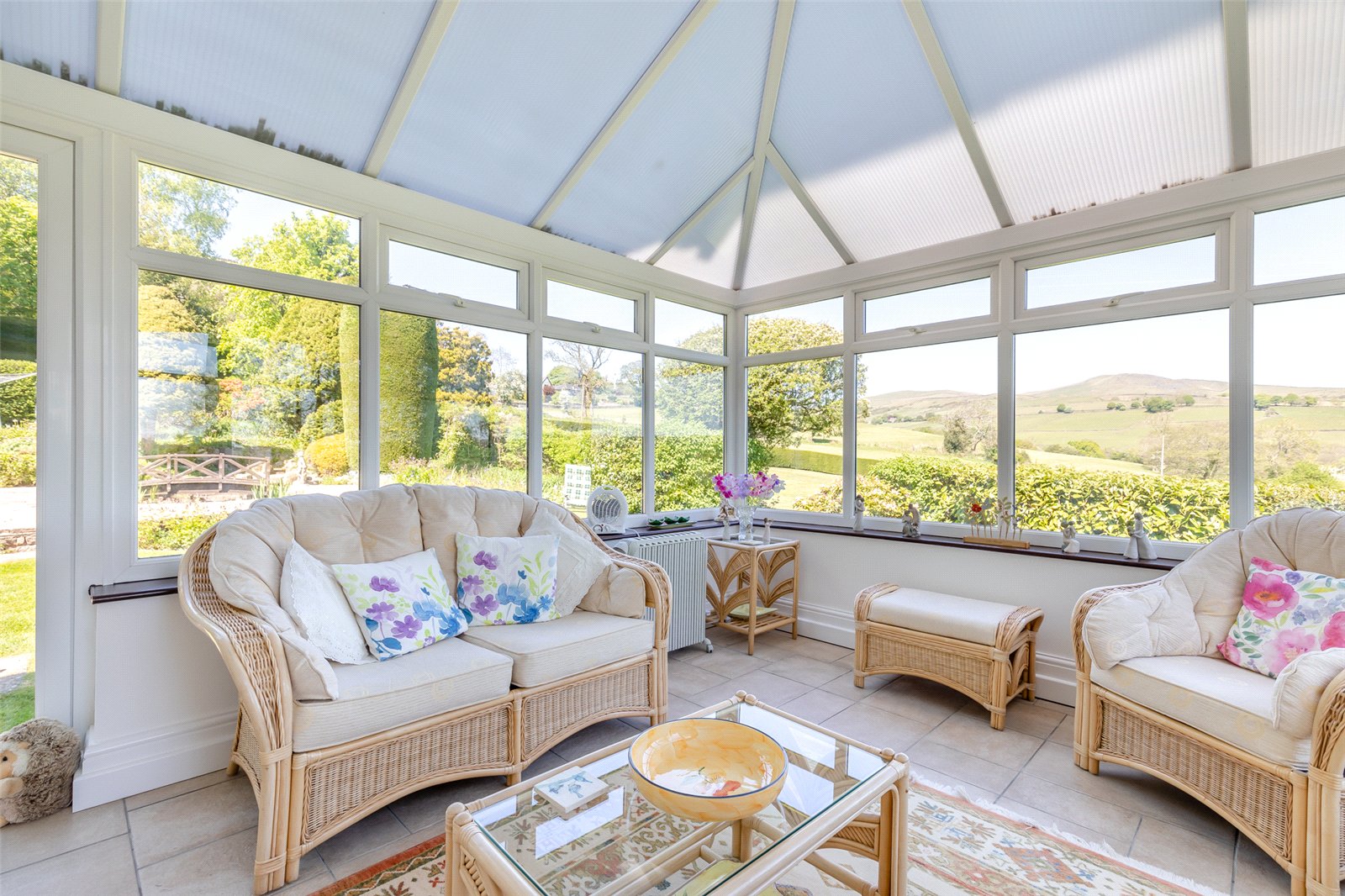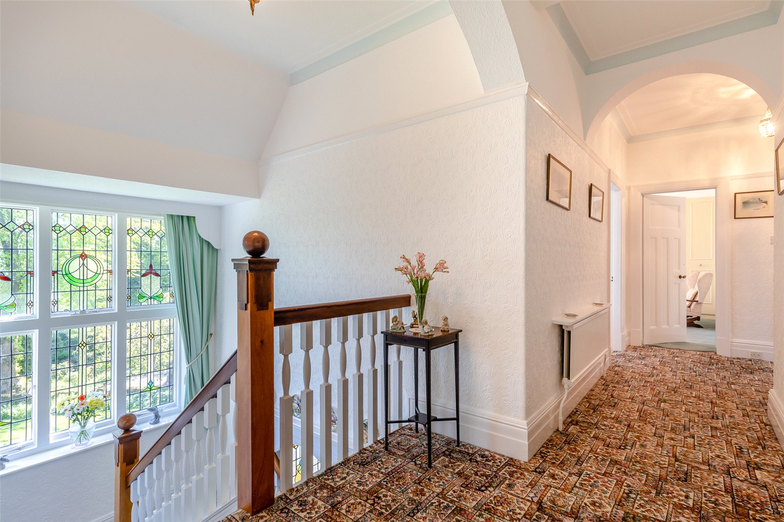 Ascending to the first floor, a striking landing adorned with a magnificent stained-glass window exemplifies the property's unique character. Here, five beautifully appointed bedrooms bask in natural light, with large windows framing picturesque views of the gardens and surrounding countryside. The luxurious family bathroom is complemented by two en-suite bathrooms, ensuring supreme comfort and convenience.