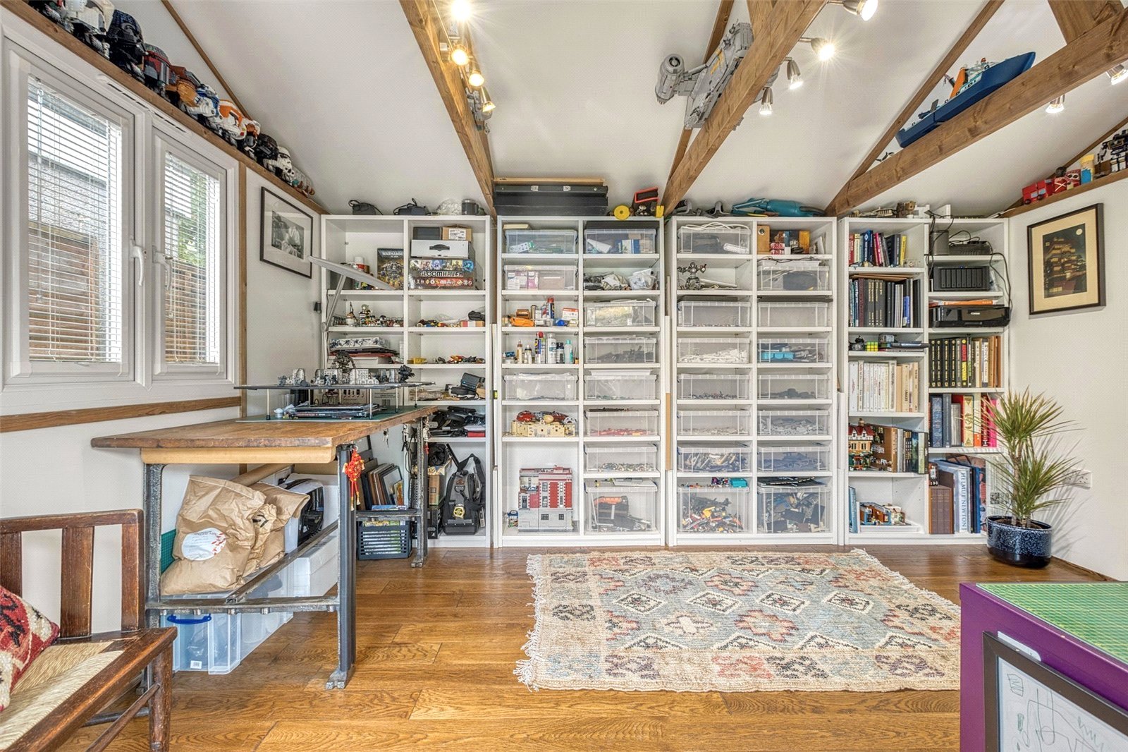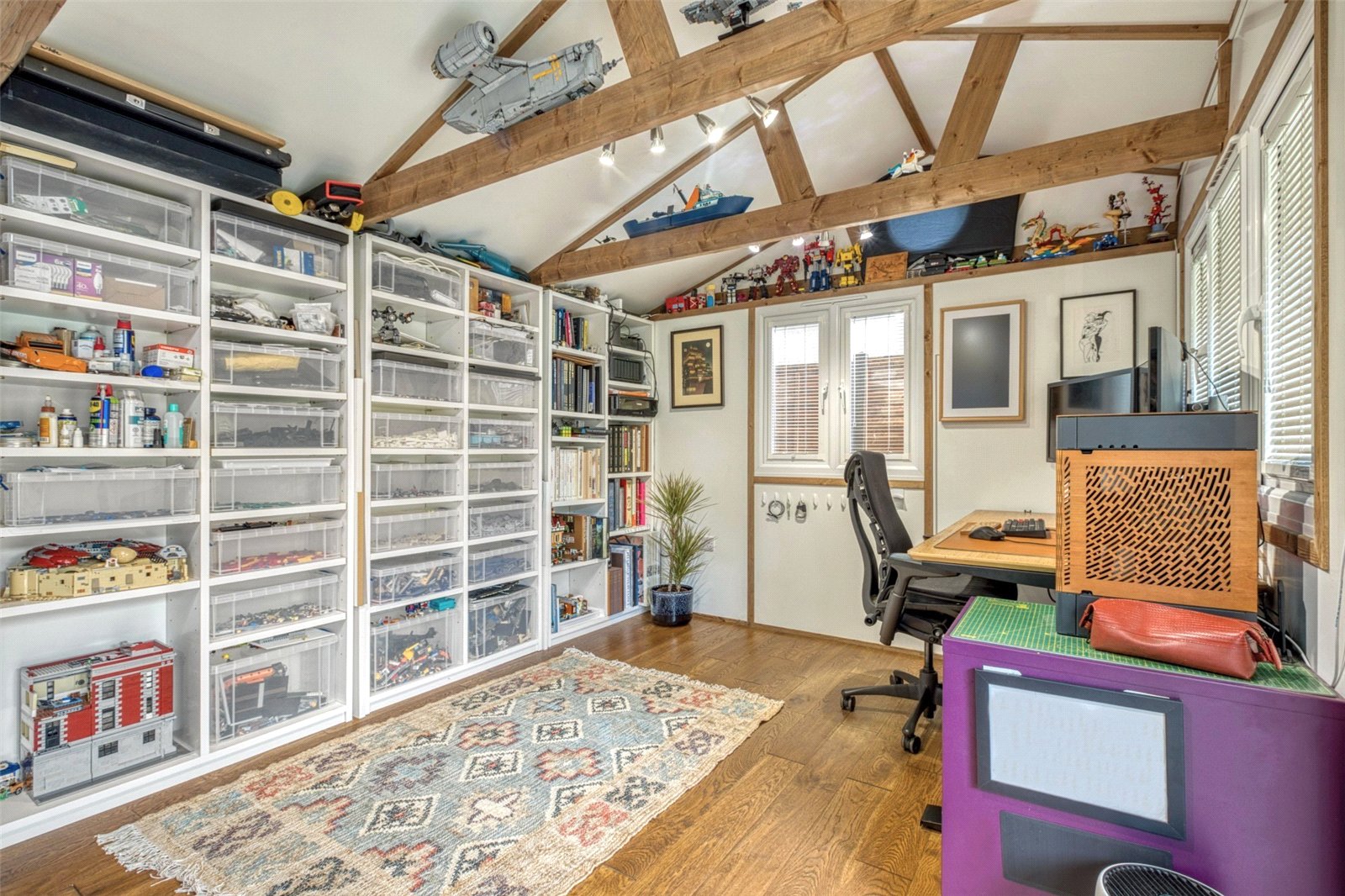 At the far end of the garden: Tucked away at the far end of the garden lies a bespoke studio, crafted in 2019 with no corners cut and no compromises made. This is no ordinary garden roomits a fully insulated, climate-controlled space, meticulously built to professional standards, with heating, air conditioning, lighting, and power seamlessly integrated. Originally conceived as a focused sanctuary during lockdown, it now offers an exceptional degree of flexibilitywhether for deep creative work, private client meetings, or simply escaping with a good book, entirely removed from the rhythm of the main house.