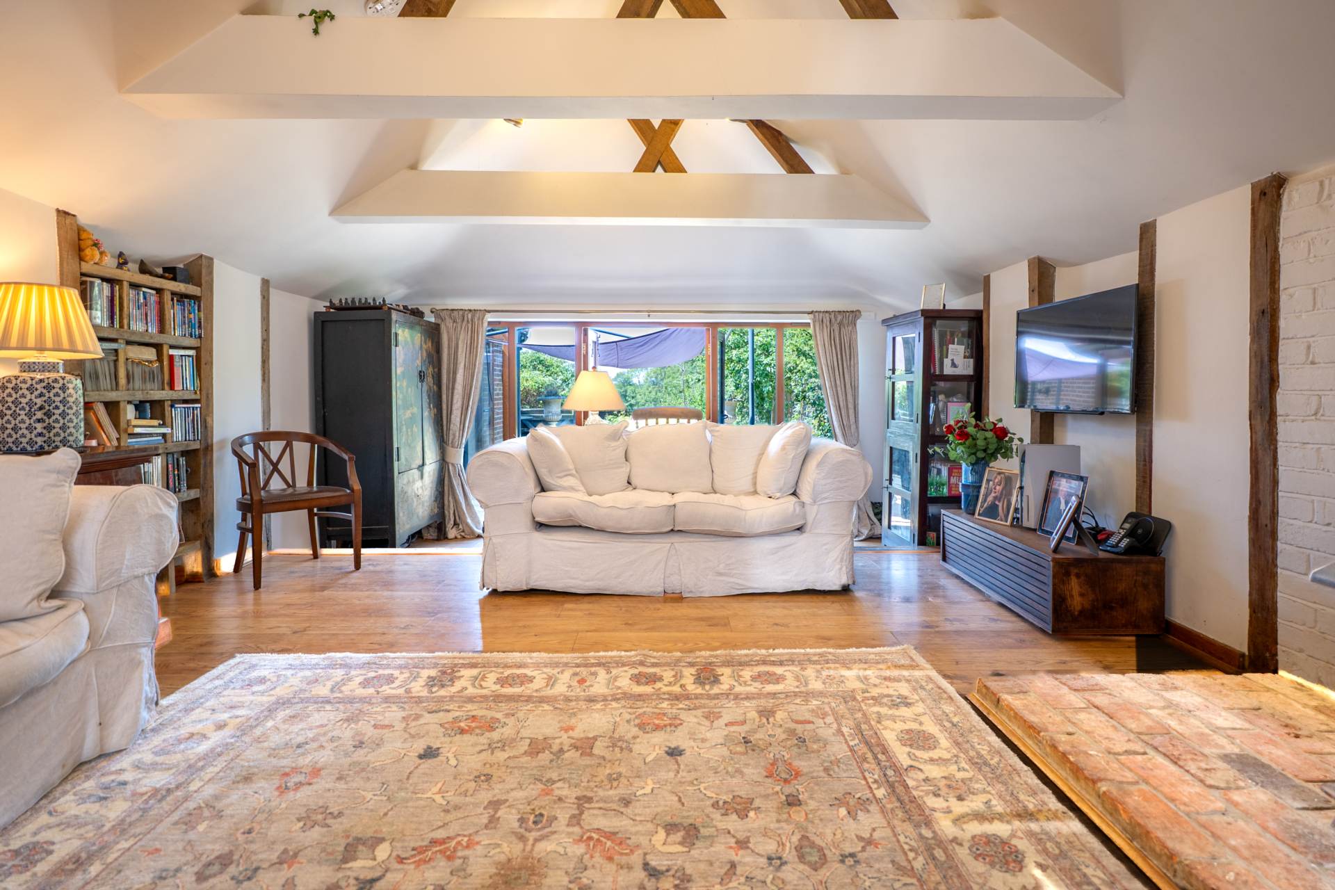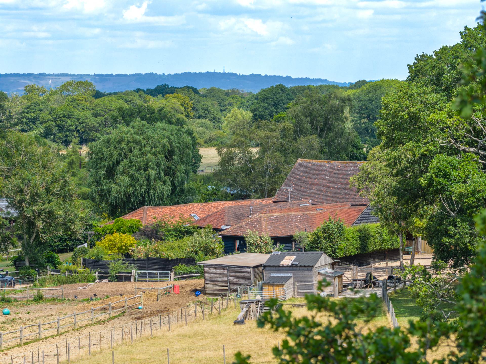Set on a generous 1.7-acre plot in a quiet countryside location near Horsham, this beautifully presented semi-detached barn conversion blends rustic charm with modern comfort perfect for a growing family seeking equestrian space or a couple looking to downsize in style.