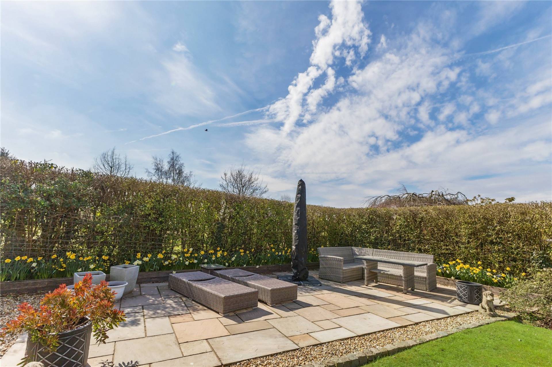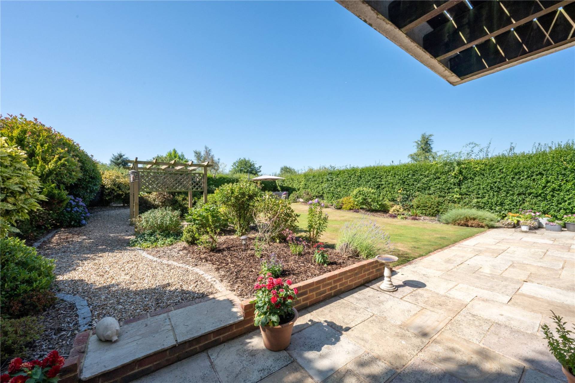 The south-facing rear garden is a standout feature of this exceptional home, thoughtfully landscaped to create a tranquil and picturesque setting. A diverse array of plants and mature shrubs not only enhance the garden`s beauty but also attract an abundance of wildlife, making it a haven for nature lovers. Multiple seating areas, including a charming timber-built pagoda and spacious patio areas, provide the perfect spots to relax and take in the stunning sunsets.