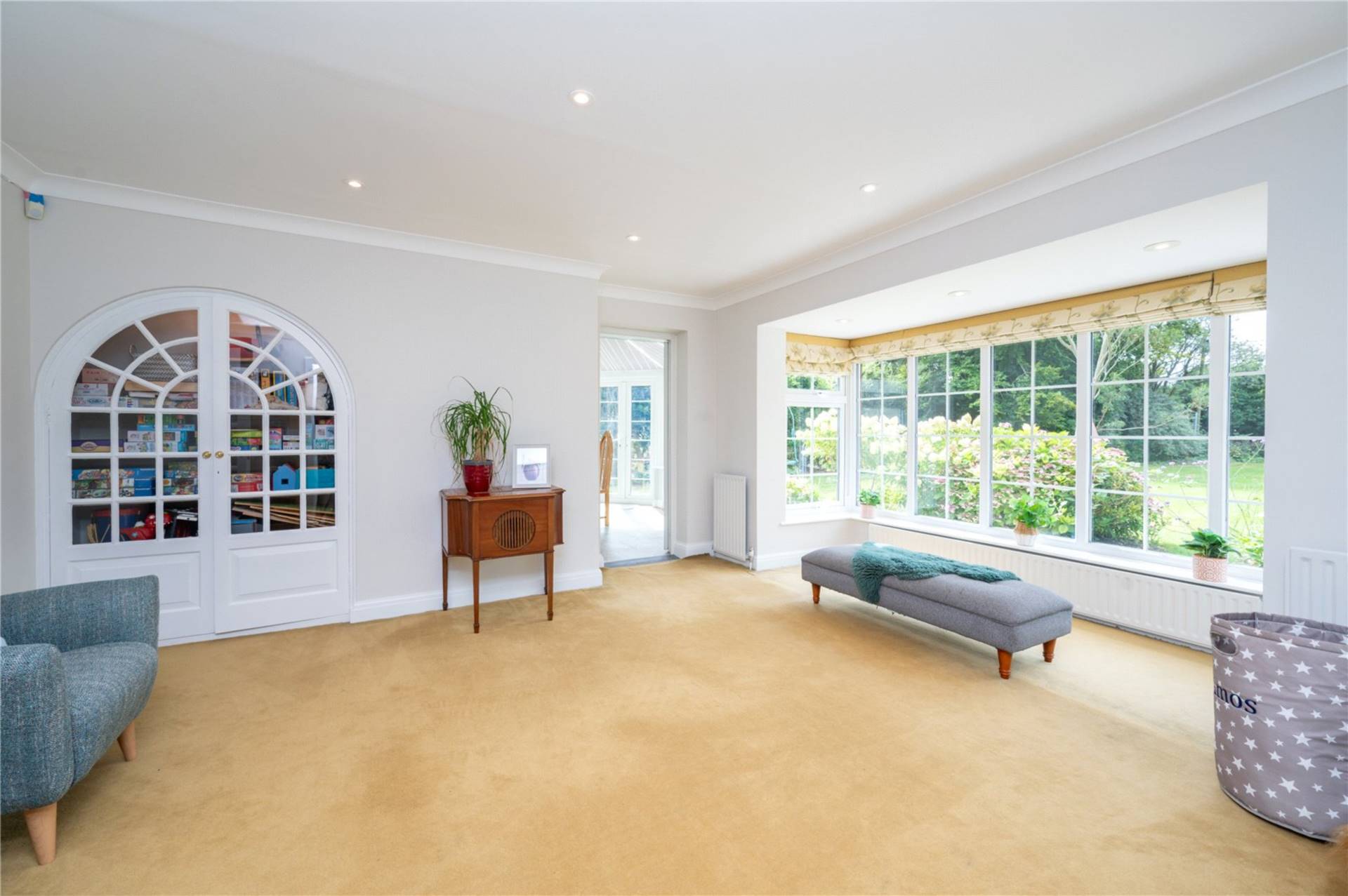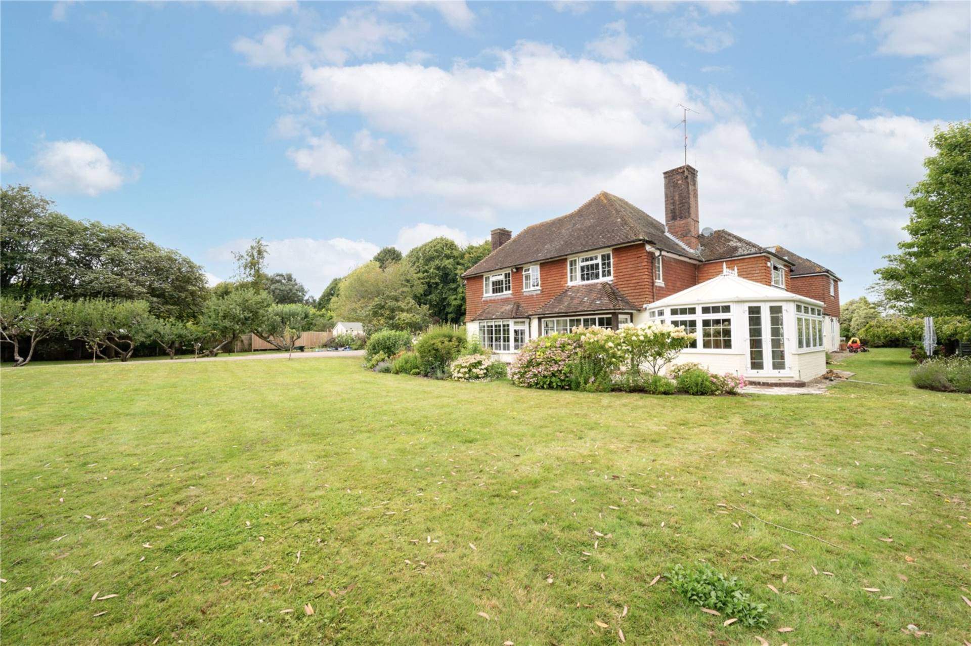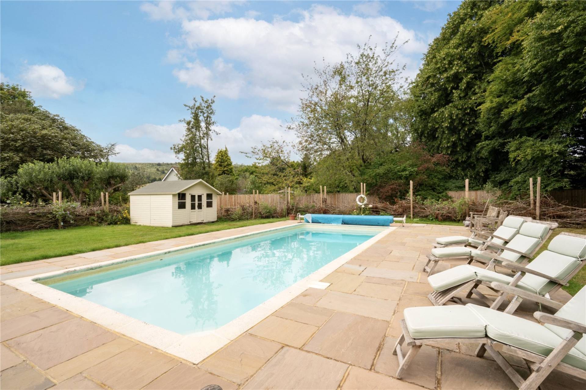 The expansive grounds total to cira 3.4 acres, with stunning views to the front of the house overlooking the Arun Valley. The heated swimming pool is the perfect spot to enjoy the view and the grounds surrounding it, with York stone paving and a pretty timber summer house/changing room. The tennis courts are in fantastic condition with open views onto the field. The triple bay garage has two door access, and attached at the rear there is a large Games/store room. The field completing the grounds is a delightful space and can be accessed via a separate gate.