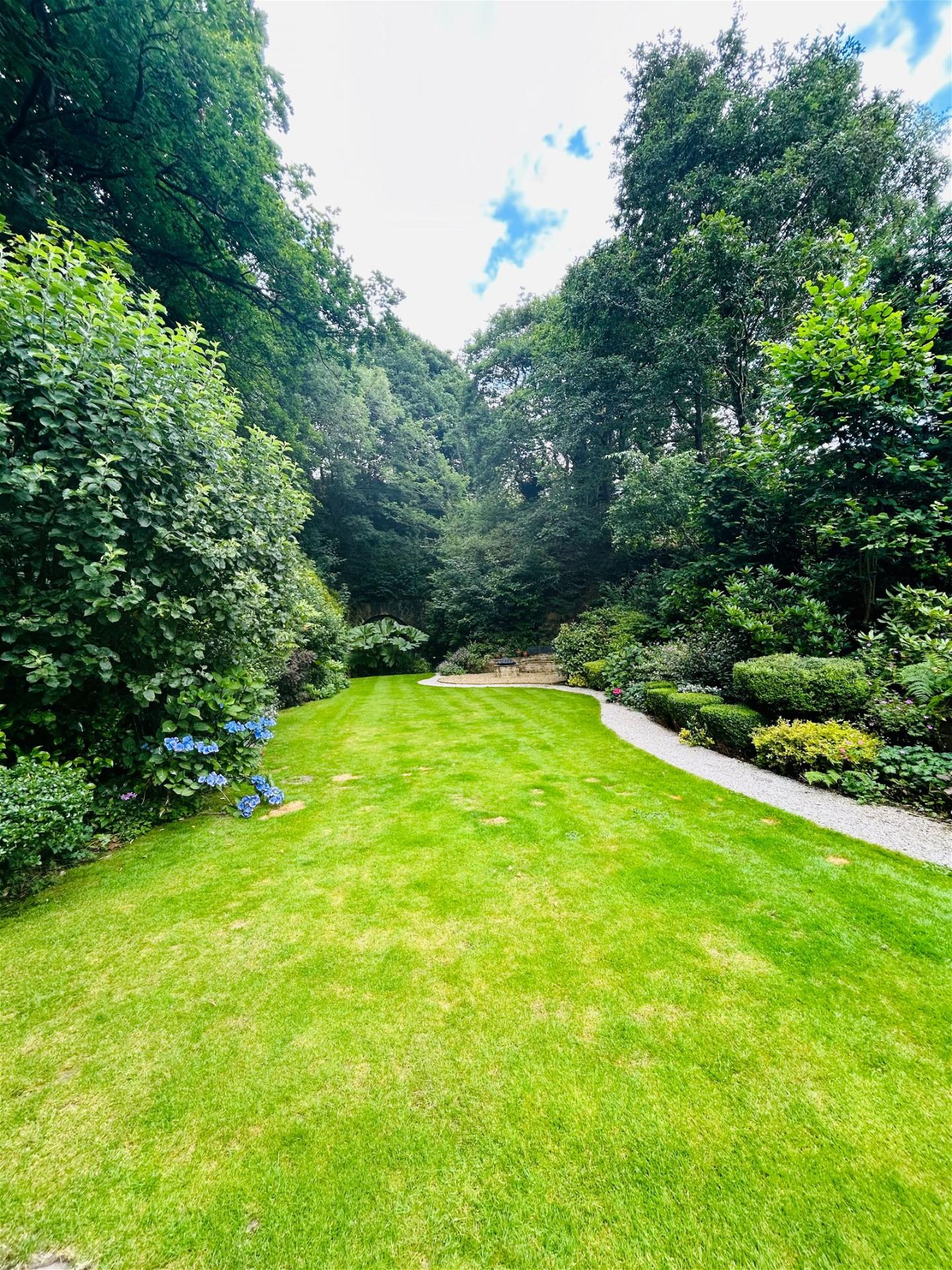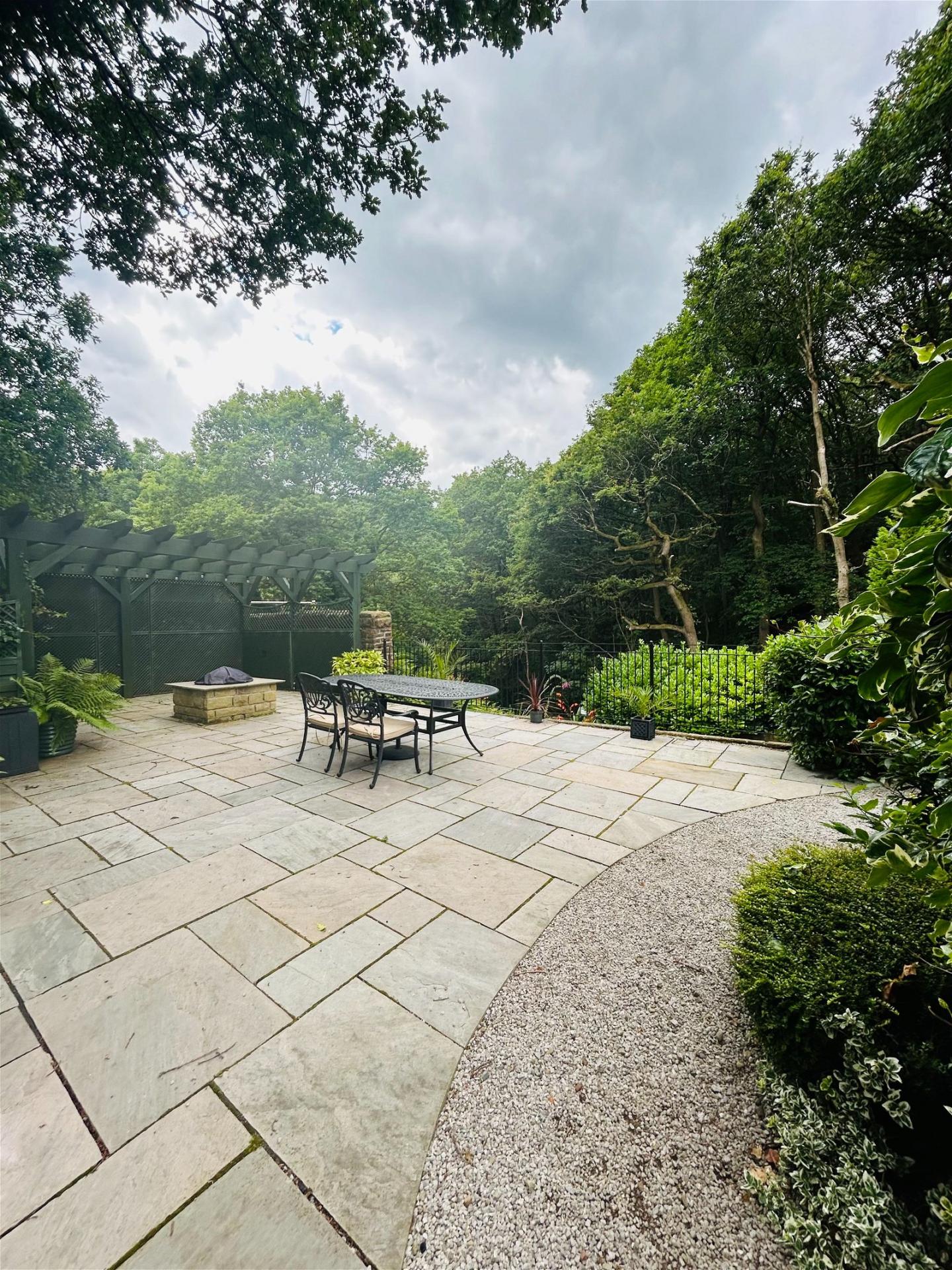 and has a pagoda and stone fire pit, this is perfect for evening entertaining, enjoying the woodland surrounding and evening sunshine. Immaculate landscaped gardens surround the property with winding paths and gated entrances to the rear garden. The flat level garden has been lovingly nurtured to create a beautiful private setting to be enjoyed by families and also a perfect space for entertaining. A large area of lawn is surrounded by colourful borders and well stocked beds. A winding path with seating area and second stone fire pit leads to The Portal, hidden at the bottom of the garden.