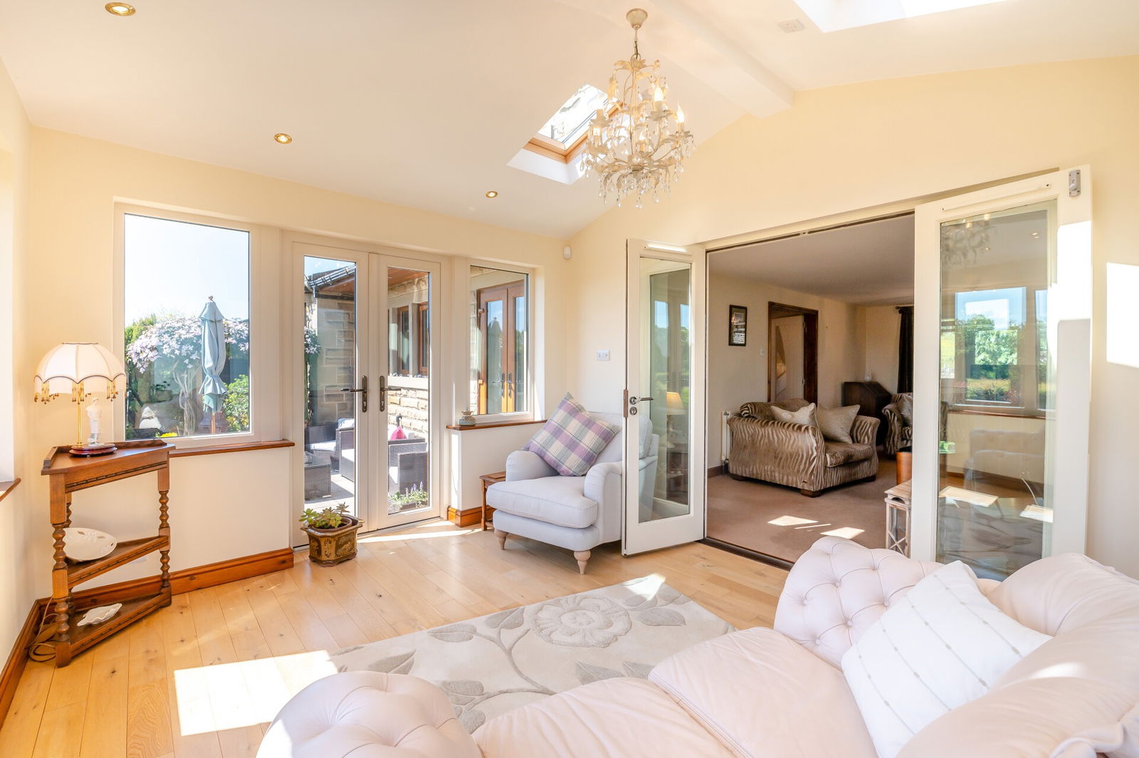 Providing an additional reception room, the sun lounge has quality timber flooring and is ideal for year-round relaxation. French doors from the conservatory lead to the rear garden.