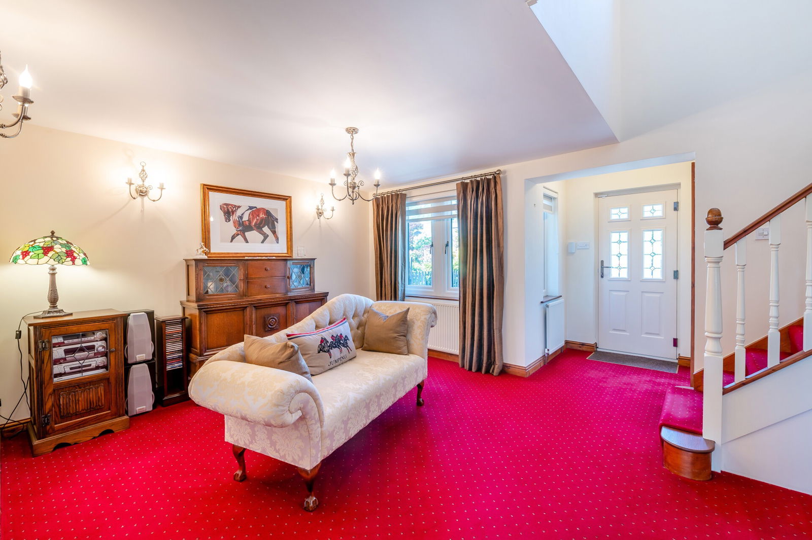 To the first floor, there is a spacious landing, featuring an open mezzanine that overlooks the ground floor dining hall adding a distinctive architectural element to the home.