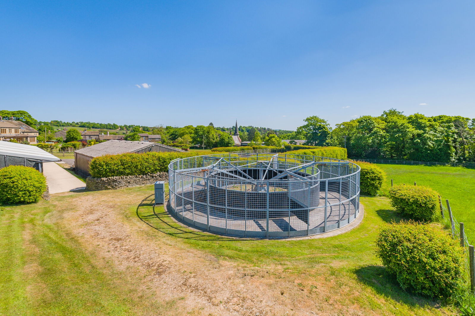 · Menage/Riding Arena: A 40m x 20m menage, enclosed by post and rail fencing,features a high-quality sand and rubber base providing excellent footing for schooling and training in all weather conditions.