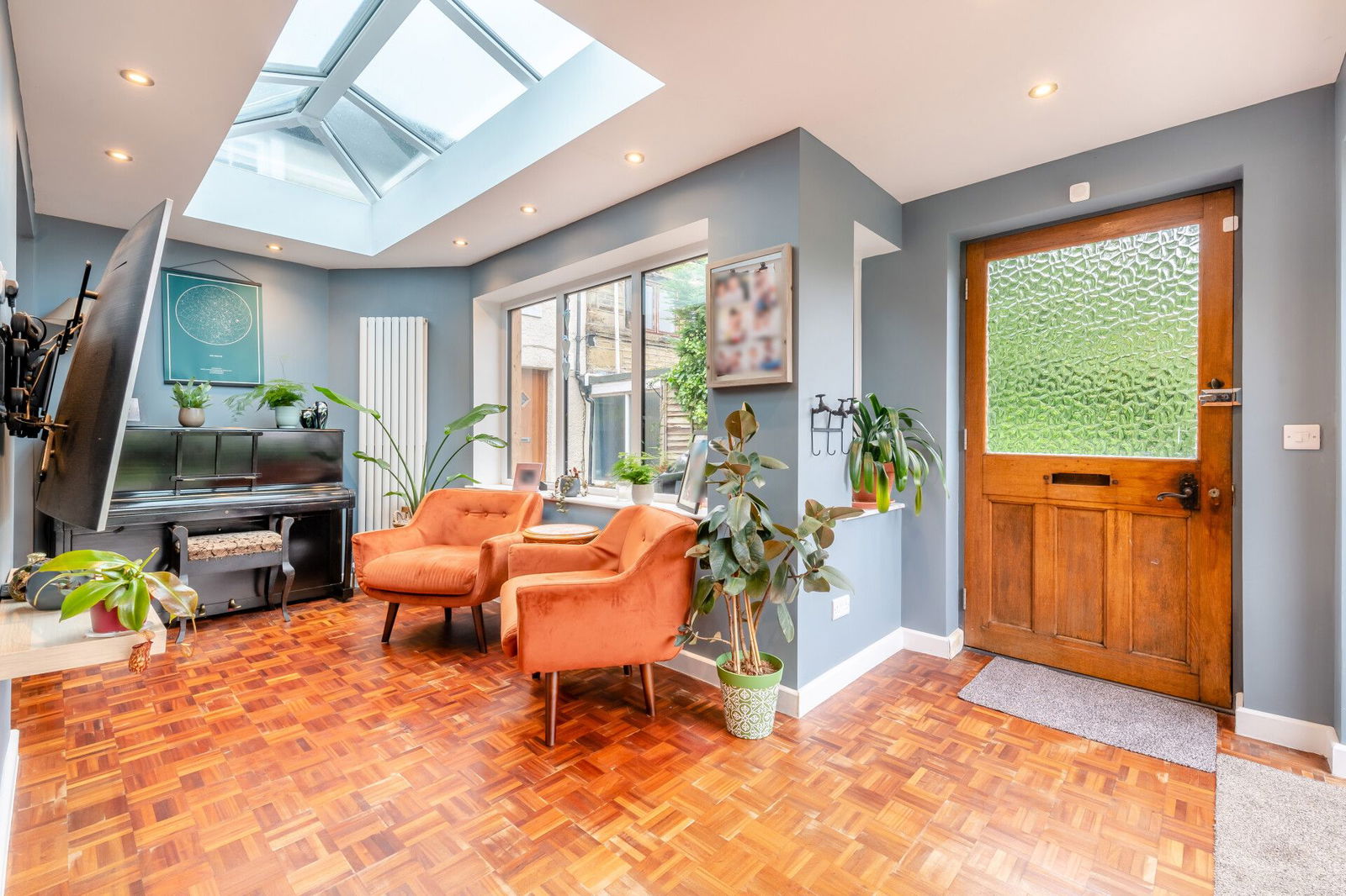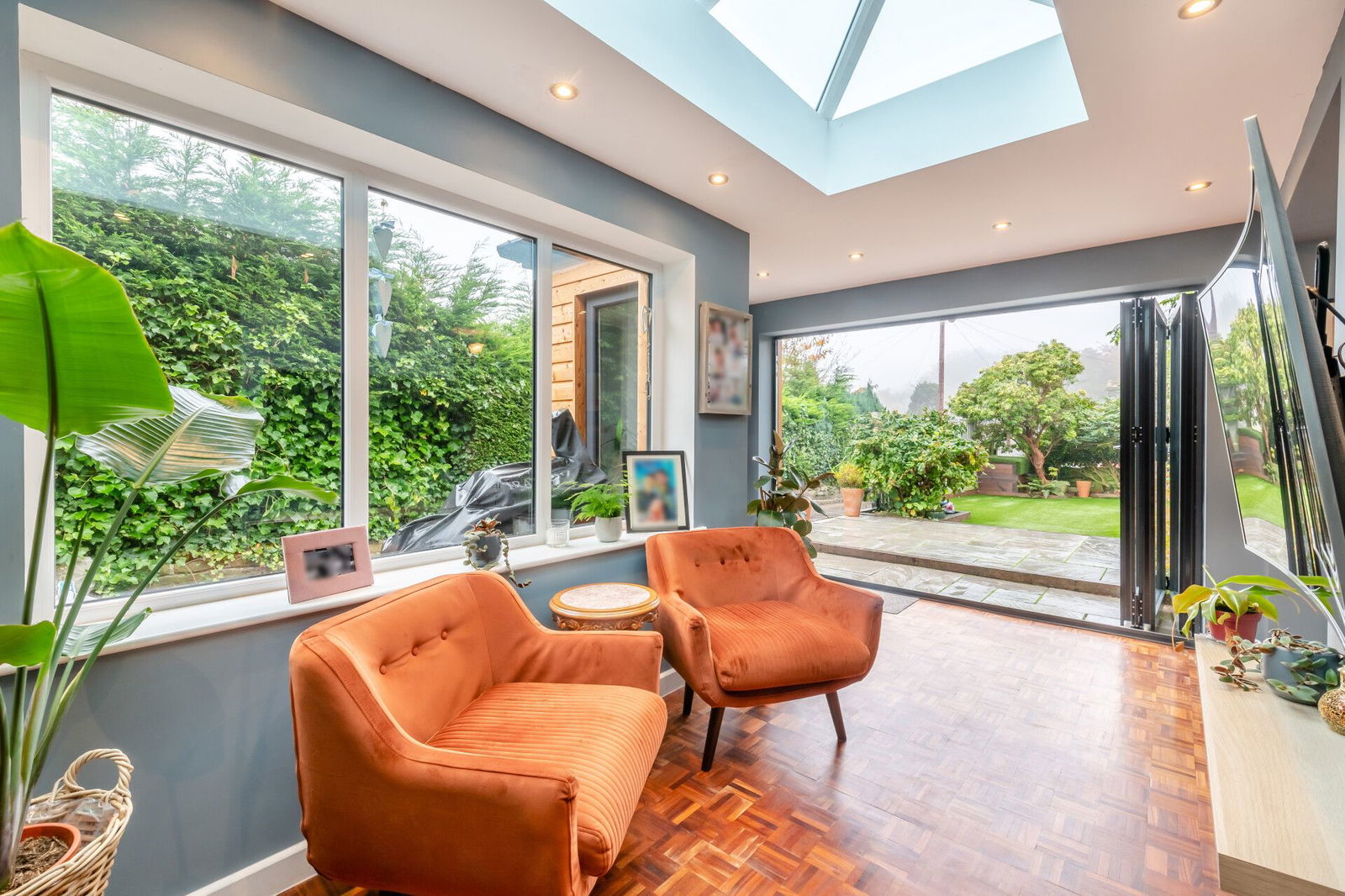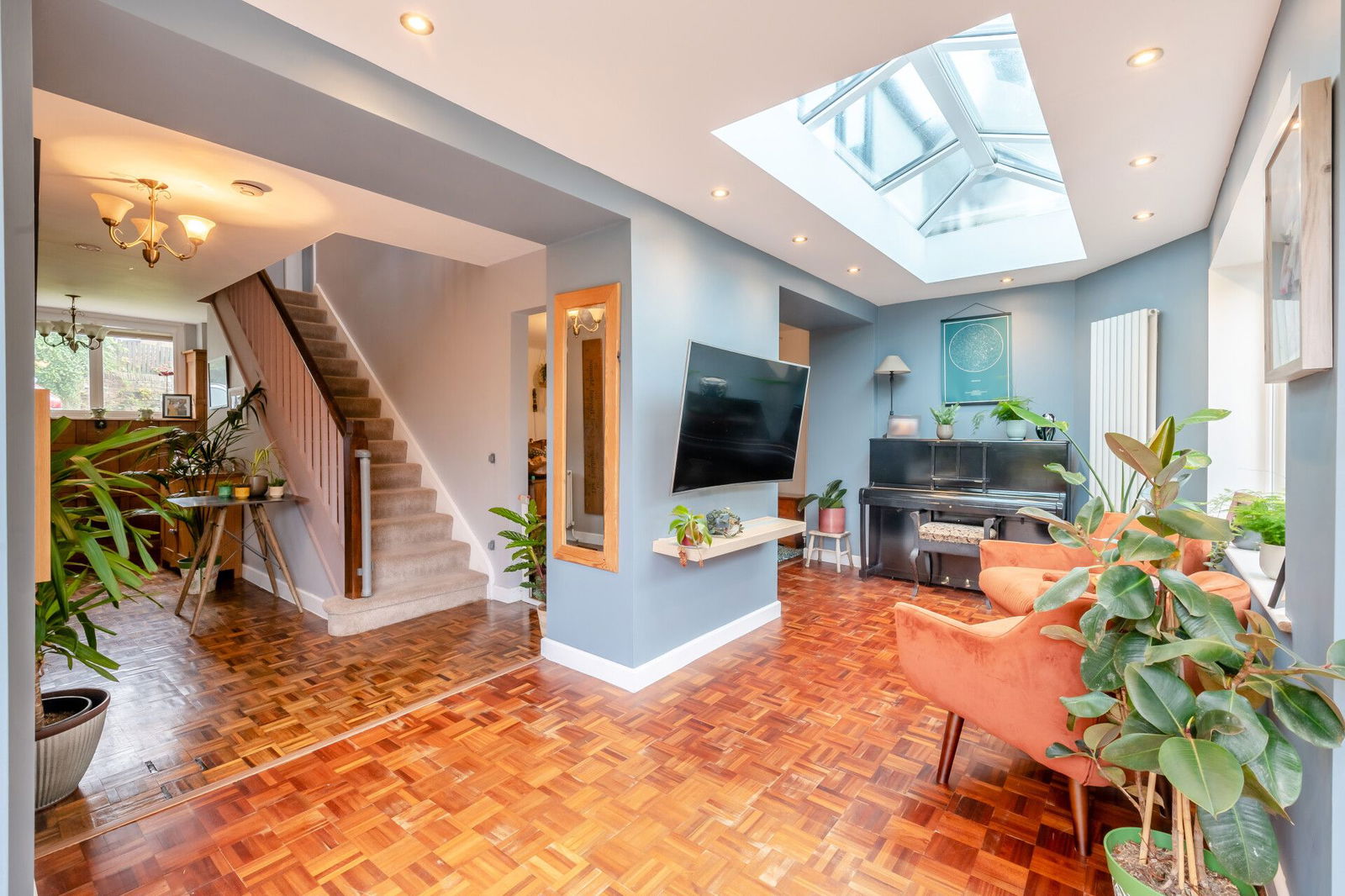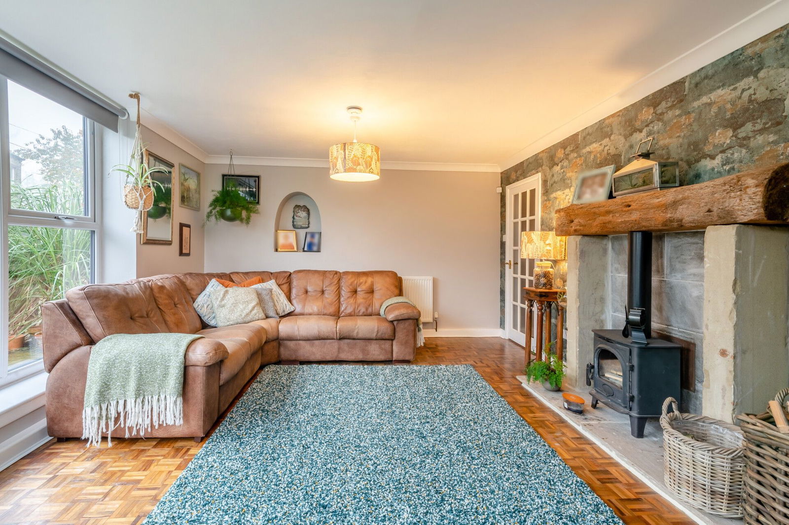 Leading from the entrance hall there is a formal sitting room. This spacious reception room has a log burning fire and enjoys a great degree of natural light, taking advantage of the southerly aspect and large windows.