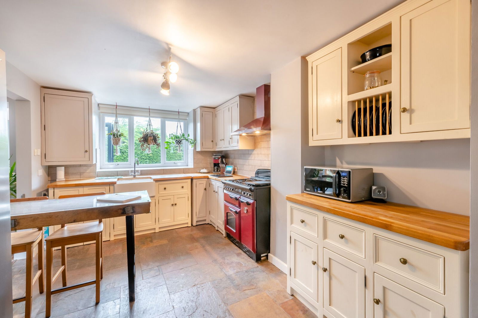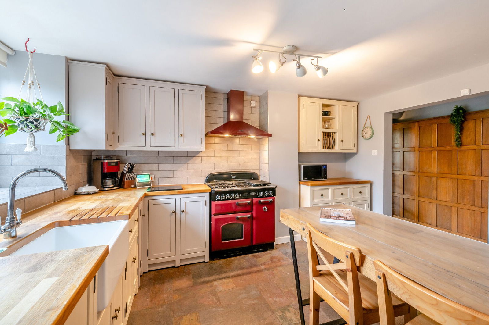 The breakfast kitchen, whilst a separate room, still remains open to the entrance hall. There are country style fitted base and wall units with timber worksurface and ceramic Belfast style stink with mixer tap, part tiled walls and tiles to the floor. There is a freestanding range oven with extractor fan over which is included in the sale.