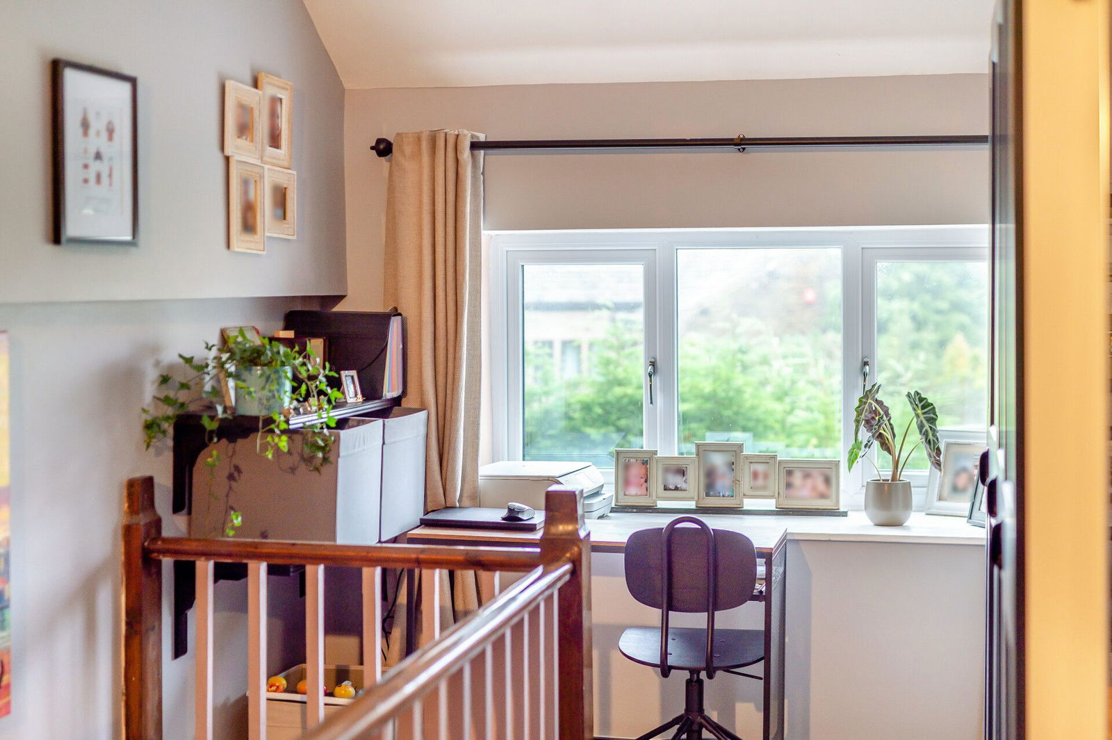 To the first floor there is a generous size open landing which is useful for use as a work from home space.