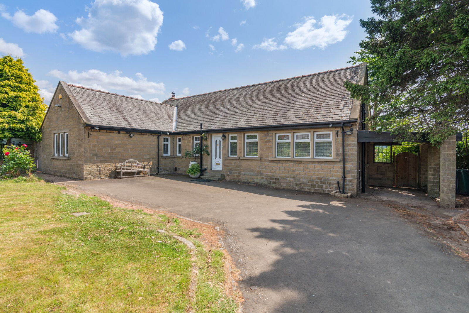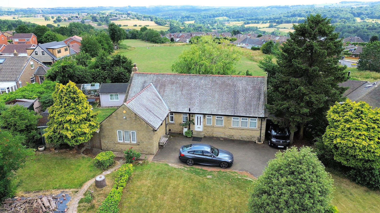 The property occupies a plot extending to approximately 1/3 of an acre with private south facing gardens. The property is approached through a pillared driveway which provides off street parking for multiple vehicles and leads to the car port. The front garden is laid predominately to lawn with mature and well stocked flower and shrub beds. A section is ideal for raised beds, a vegetable plot or a patio/decking area. To the rear aspect, enjoying a south facing outlook a generous garden is superb, extending to the side with a flagged patio area ideal for Al-fresco dining. There is a multi-purpose workshop/studio which could be utilised as a garden office or hobby room. A summer house offers summer shelter and the ideal entertaining space. The gardens take advantage of pleasant open aspect views across the Woodsome valley to the rear.