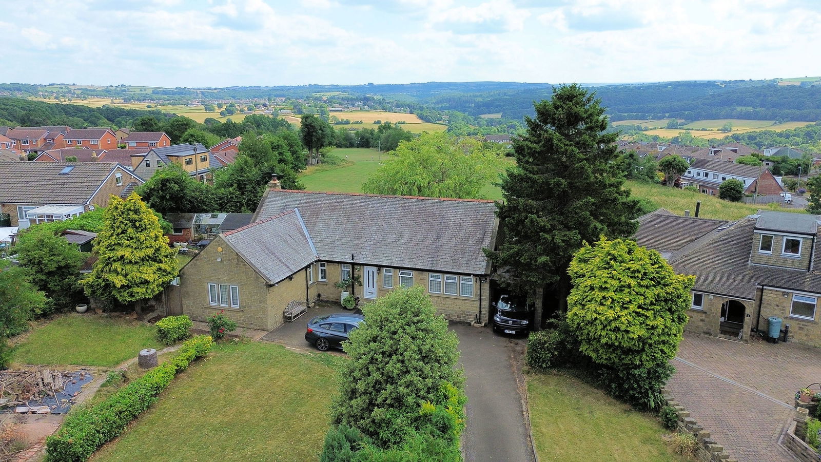 Privately enclosed with 1/3 of an acre grounds, enjoying south facing rear gardens and amazing cross valley views over the Woodsome Valley, an individually designed and built four bedroom property which offers spacious accommodation with a versatile layout.