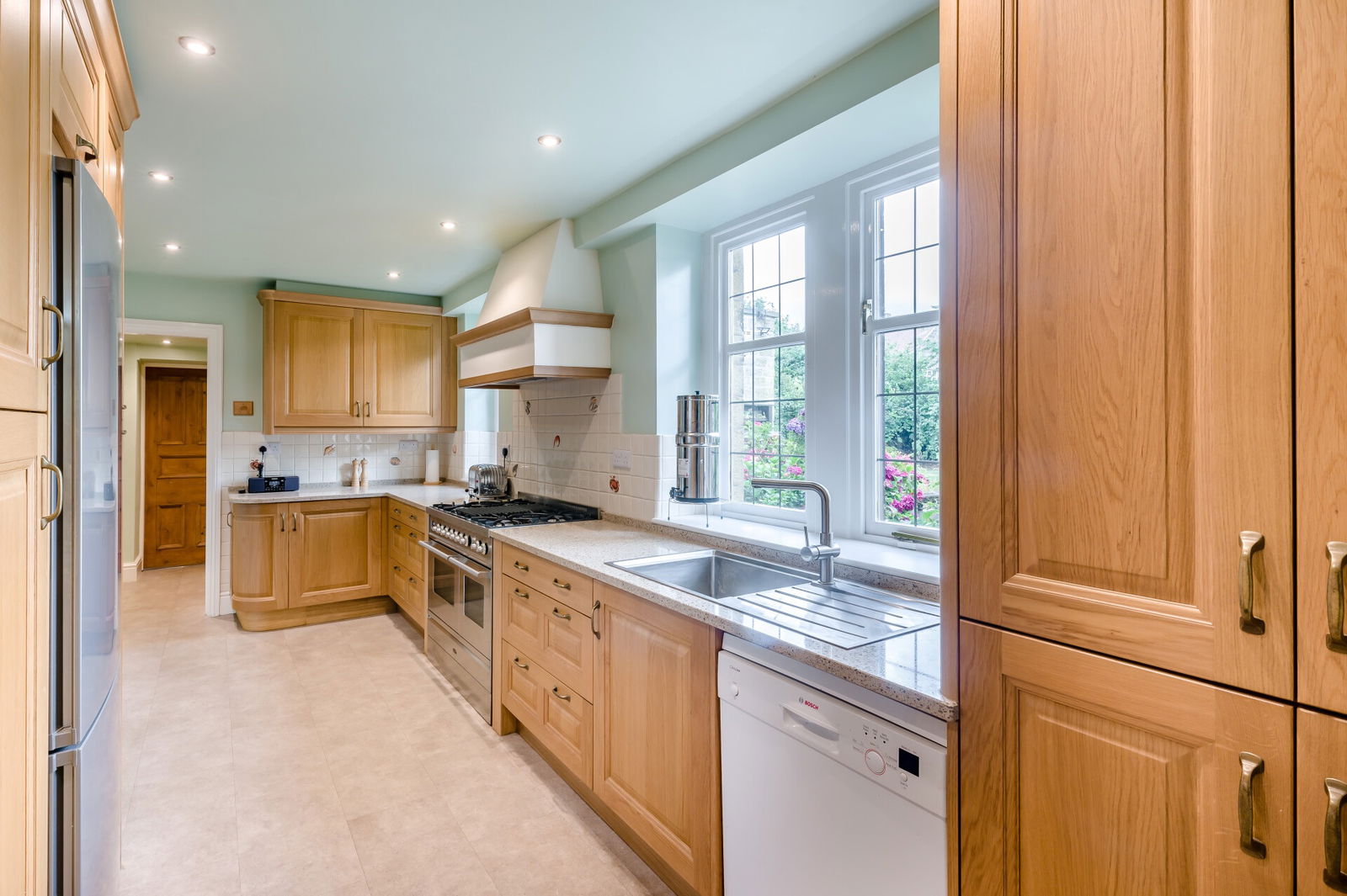 The kitchen strikes a perfect balance between tradition and functionality, with quality cabinetry offering timeless style and ample storage. Designed with practicality in mind, there’s generous space for freestanding appliances while still preserving a sense of flow and comfort.