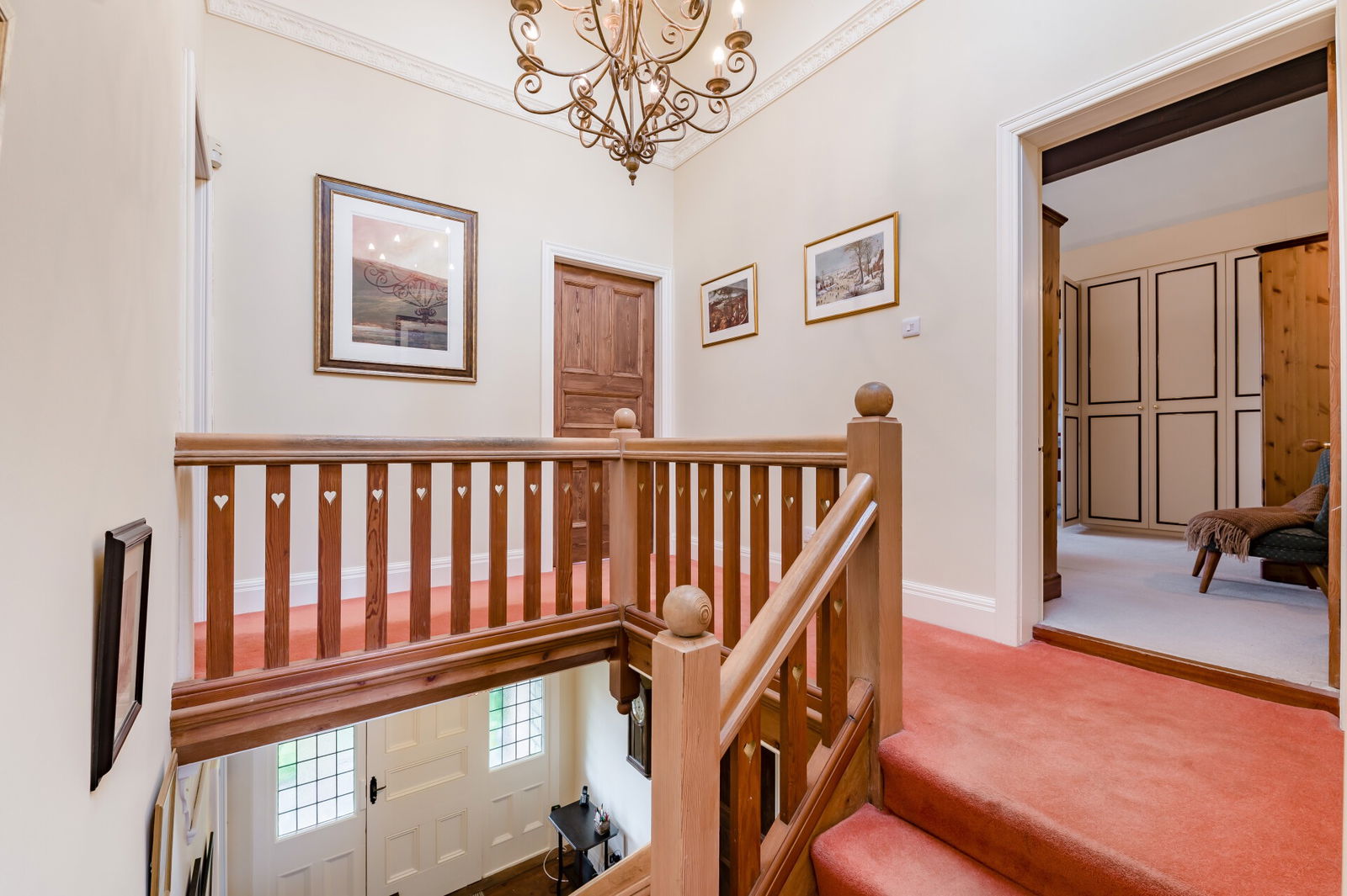 The first floor unfolds around an impressive galleried landing. From here, there is access to all four bedrooms and a reading corner that adds to the space.