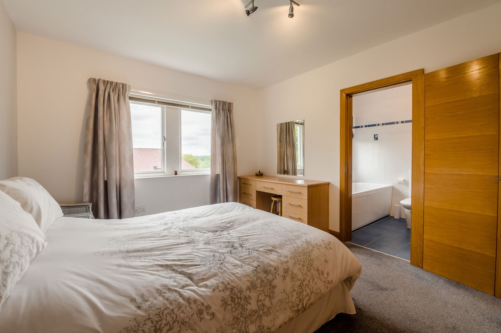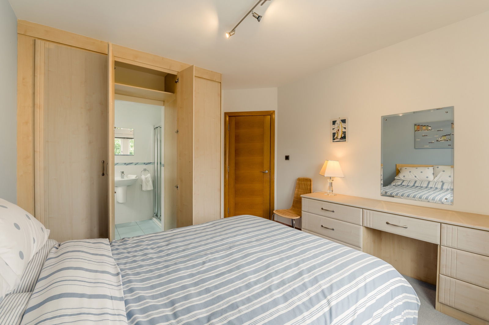 Featuring fitted wardrobes and a complementary dressing table, the room combines practicality with sleek, contemporary design, offering ample storage while maintaining a refined aesthetic. A beautifully finished en-suite shower room ensures convenience and privacy, enhancing the sense of indulgence.