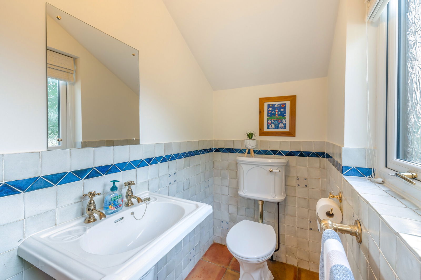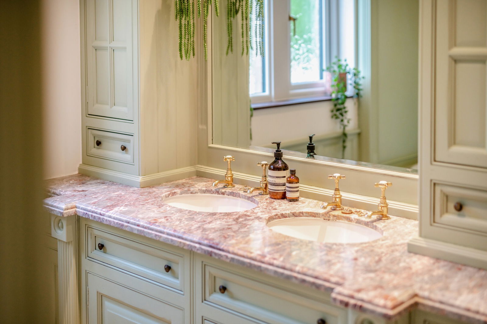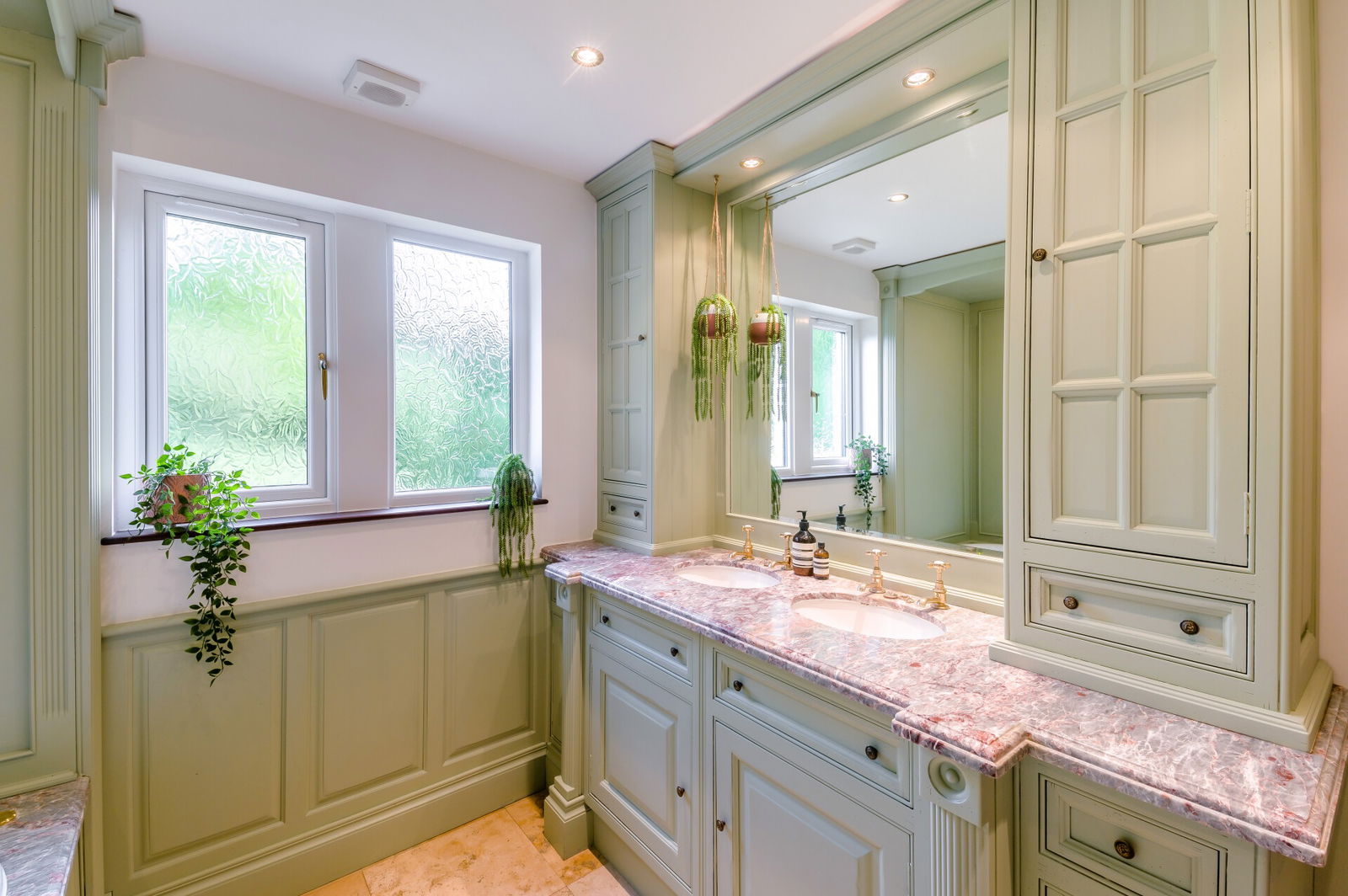 They share access to a beautifully appointed house bathroom, where quality cabinetry echo the home’s cohesive interior design.