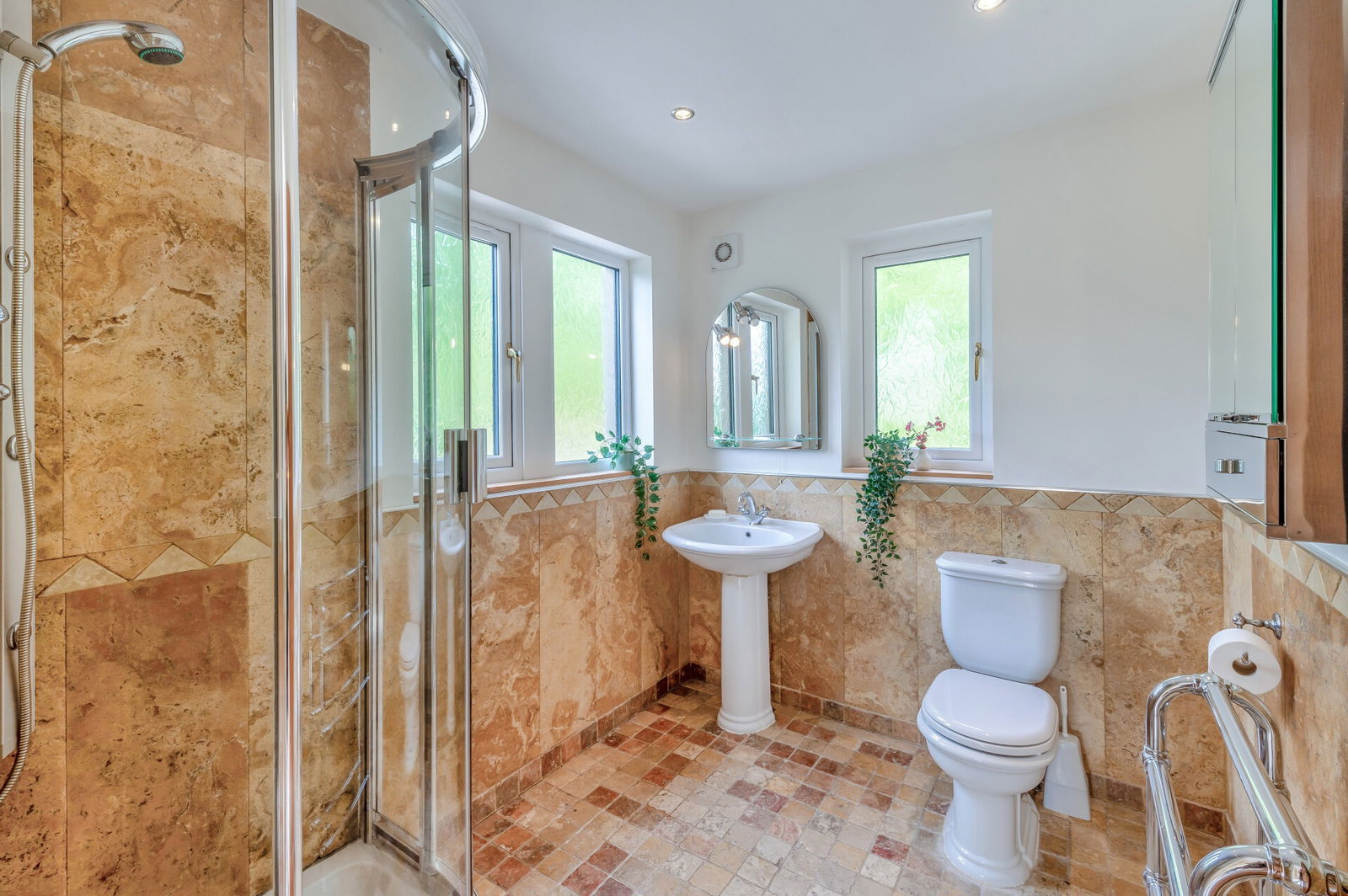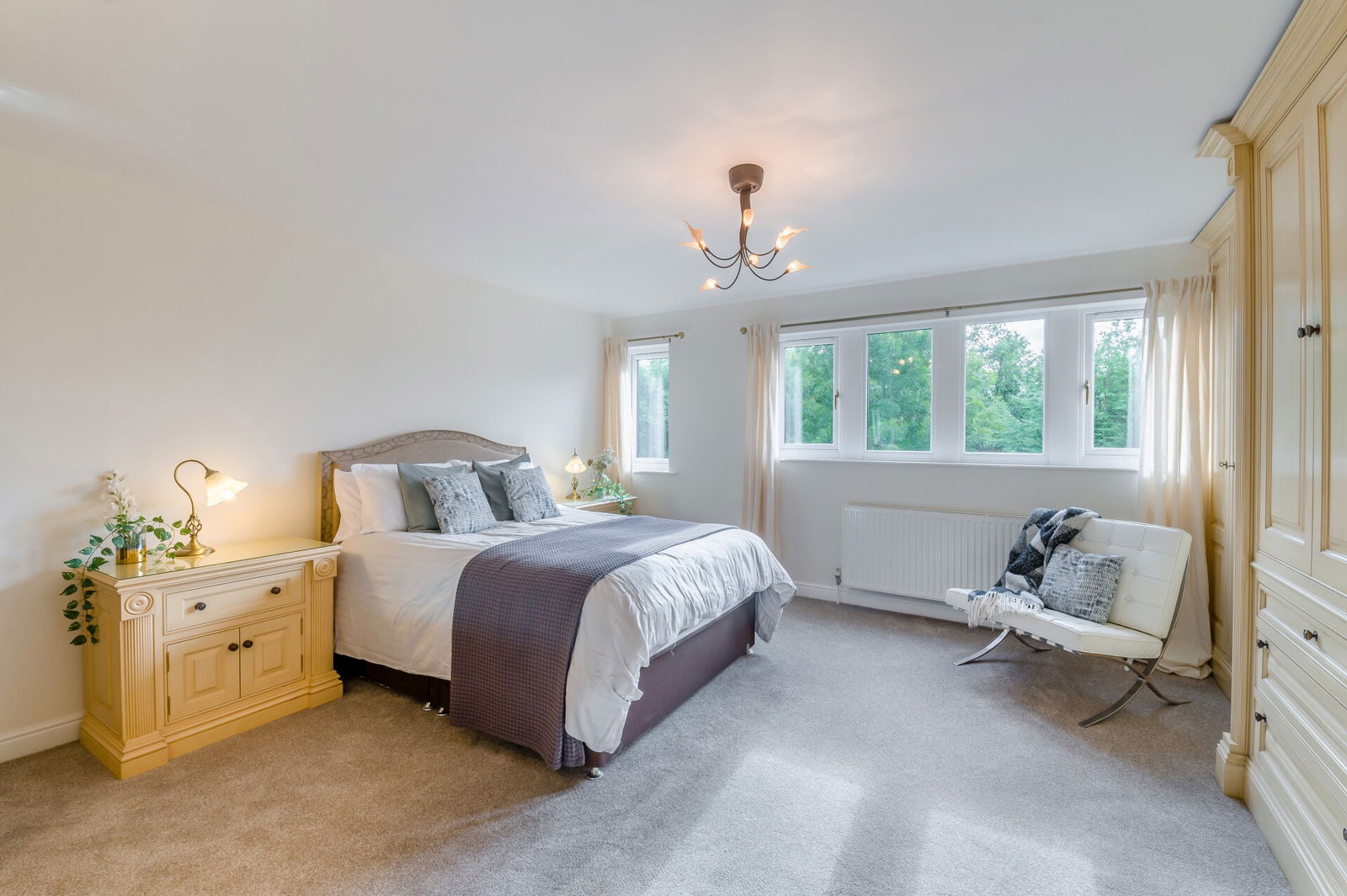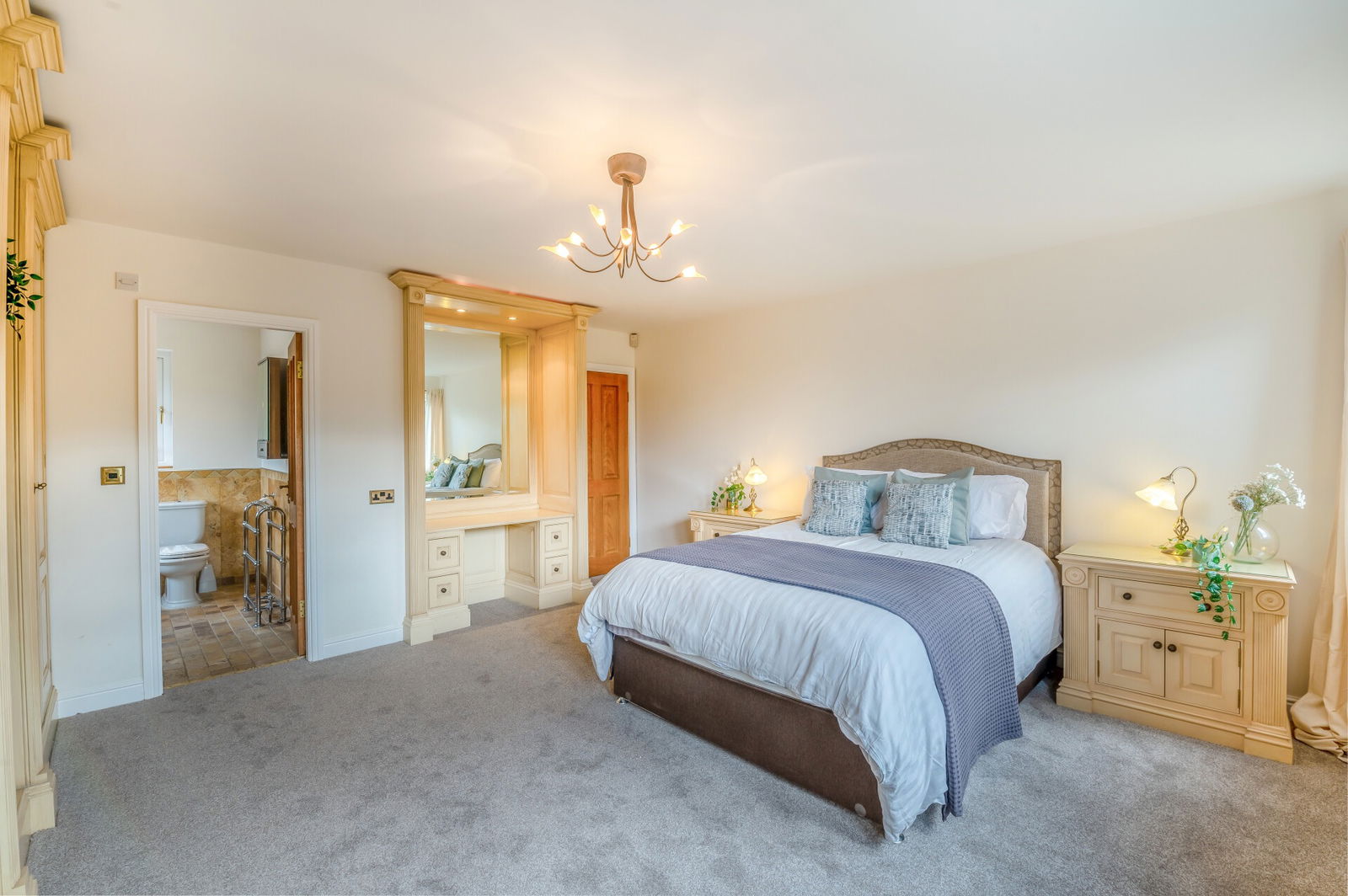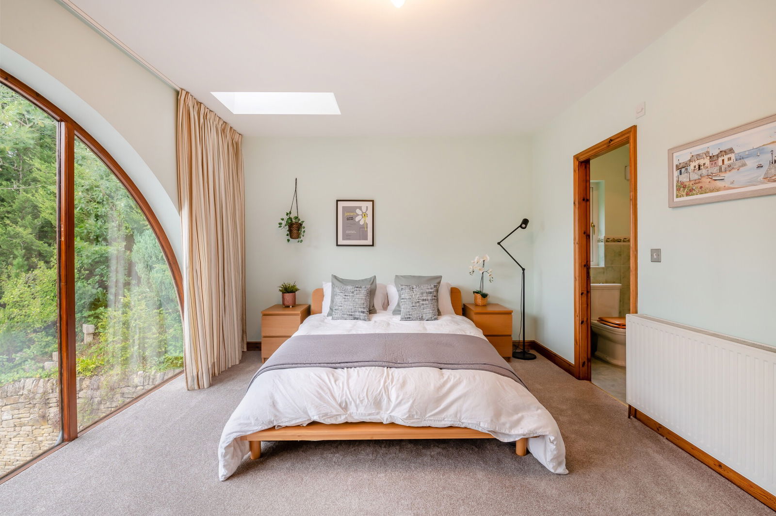 Equally impressive is the guest suite, distinguished by a graceful arched window that draws in natural light and provides a charming architectural flourish. This room also benefits from its own en-suite shower room, making it ideal for visitors or multi-generational living.