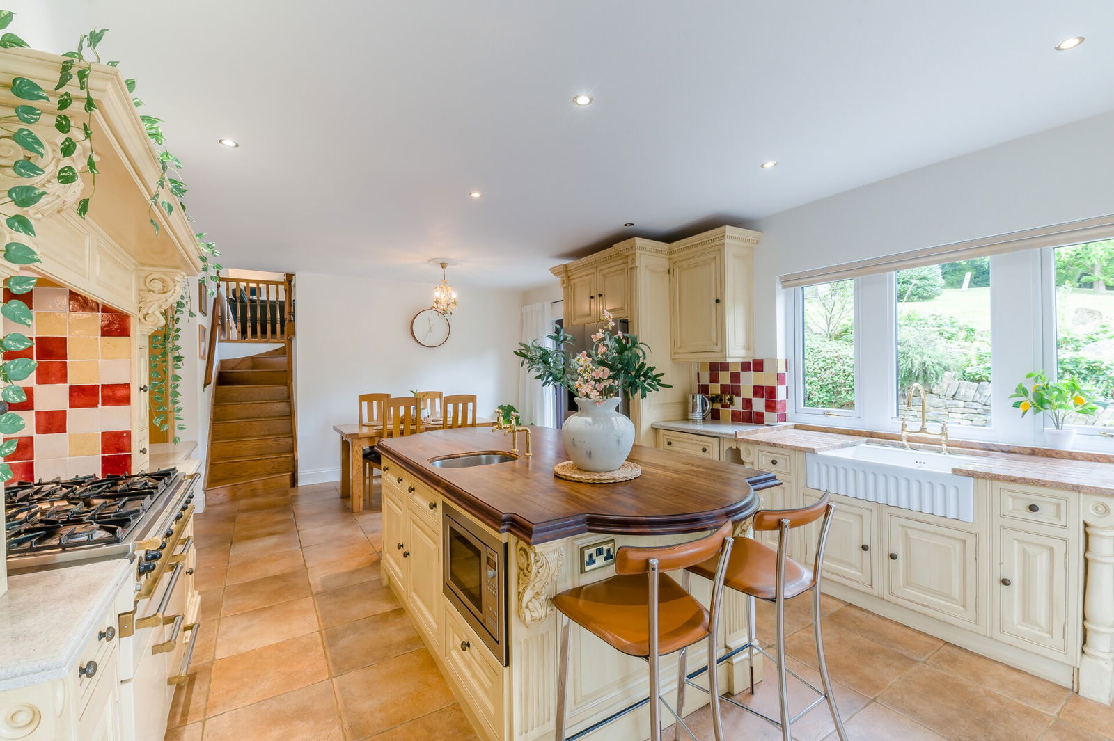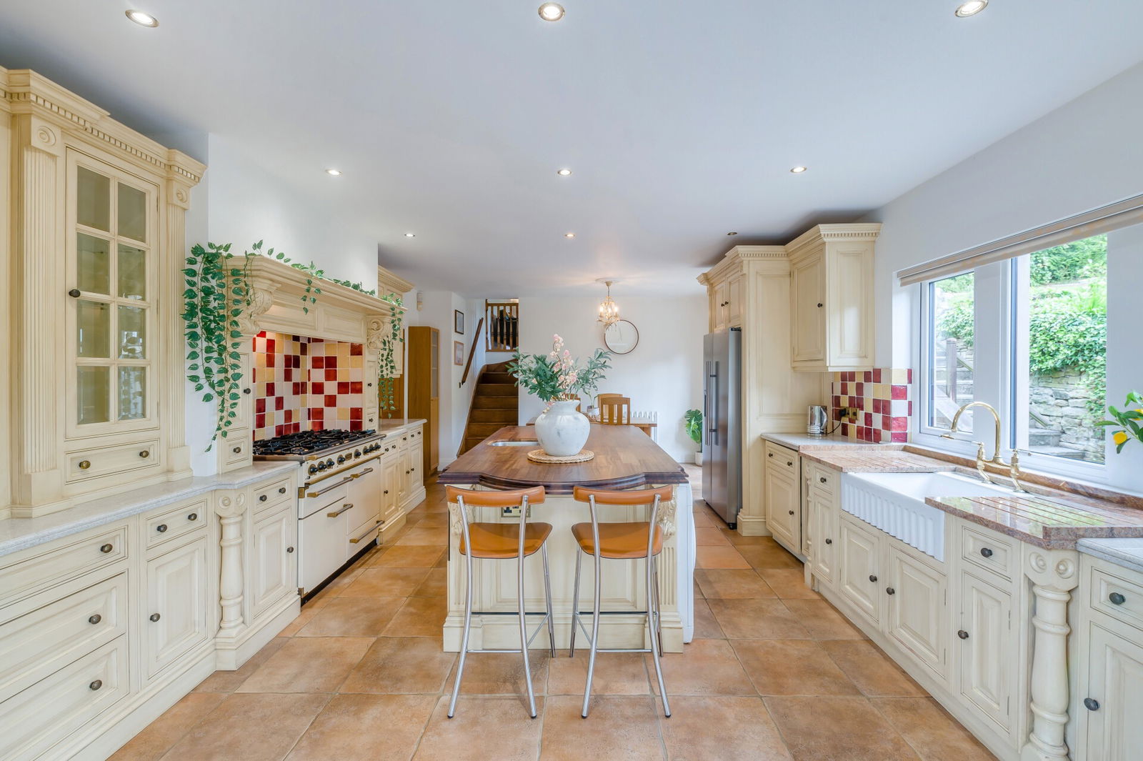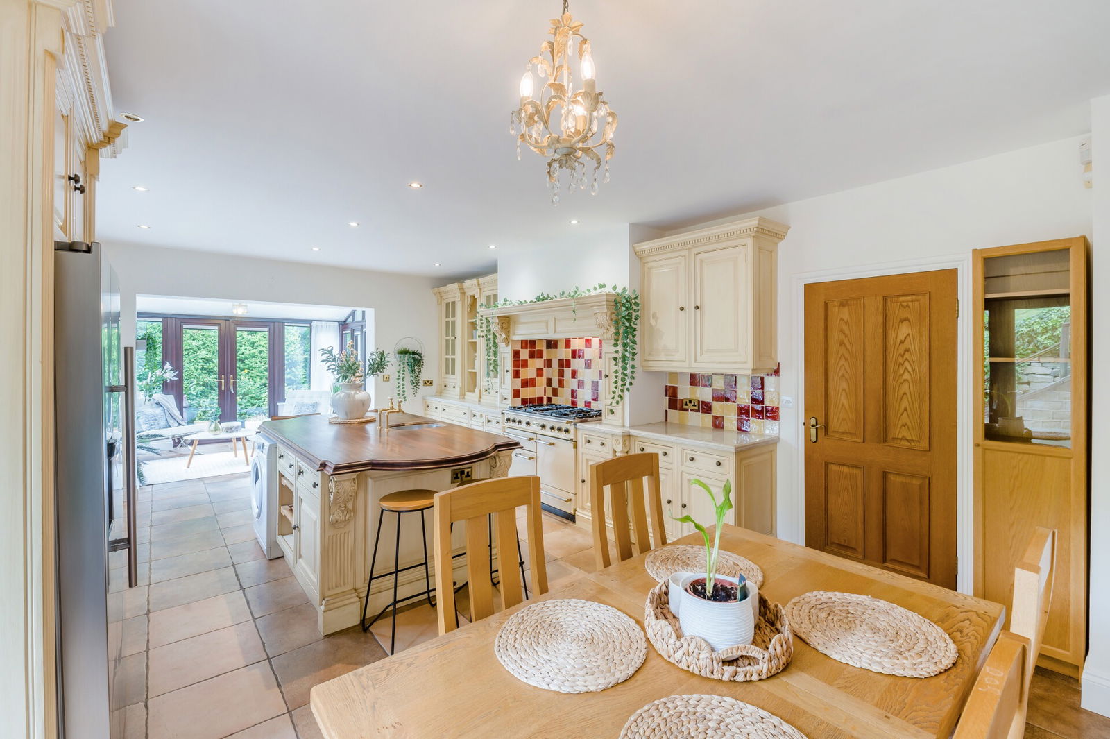 At the core of Acorn House lies a beautifully appointed open-plan dining kitchen, completed to a superb standard with Clive Christian cabinetry, offering a hallmark of timeless design and enduring quality. Finished in a traditional style, the cabinetry remains in immaculate condition and includes integrated appliances and has a large central island, ideal for casual breakfasts, sociable cooking, or entertaining on a generous scale.