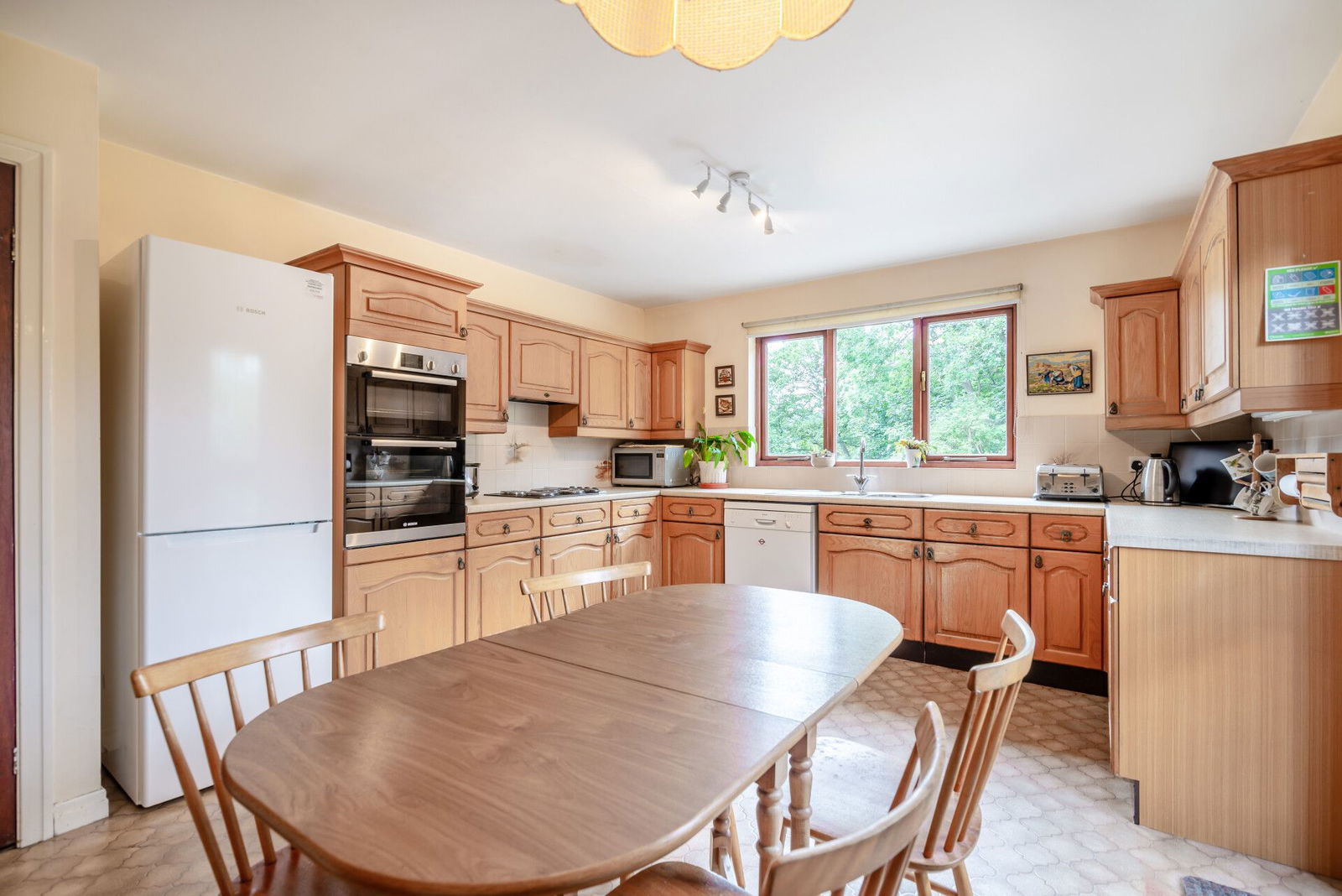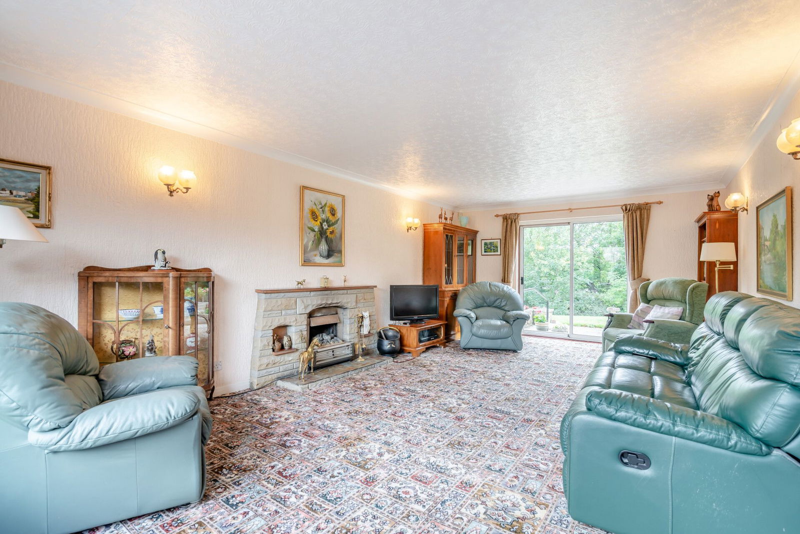 The lounge offers generous accommodation, enjoys exceptional levels of natural light with a picture window to the front offering a pleasant outlook whilst sliding patio doors to the rear open directly onto a flagged garden terrace and offers a view over the garden with a private tree lined backdrop.