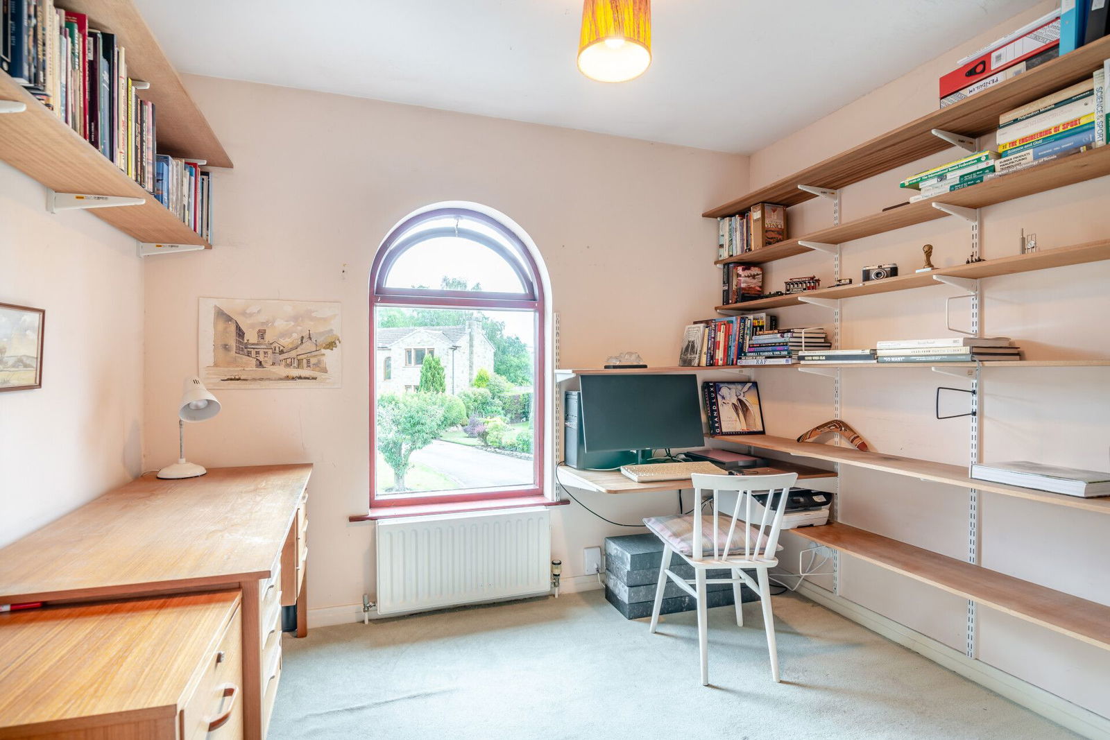 The fifth bedroom is currently used as a home office offering versatile accommodation, positioned to the front aspect of the house with a feature arched top window commanding a pleasant outlook.