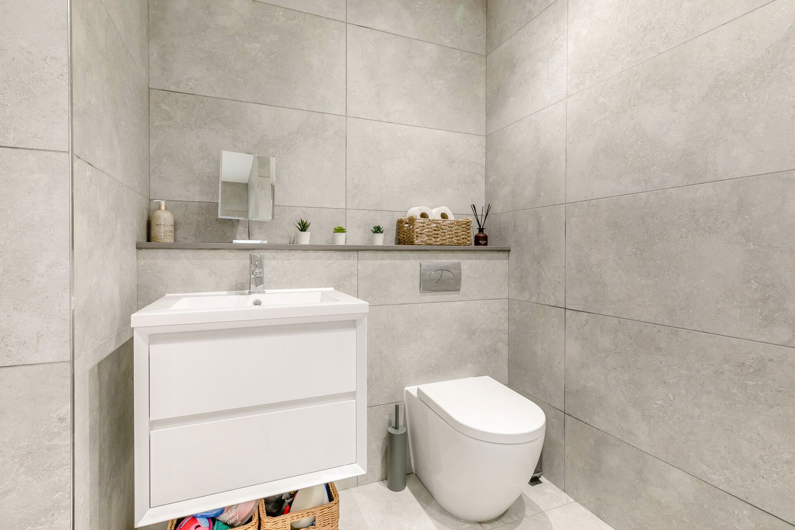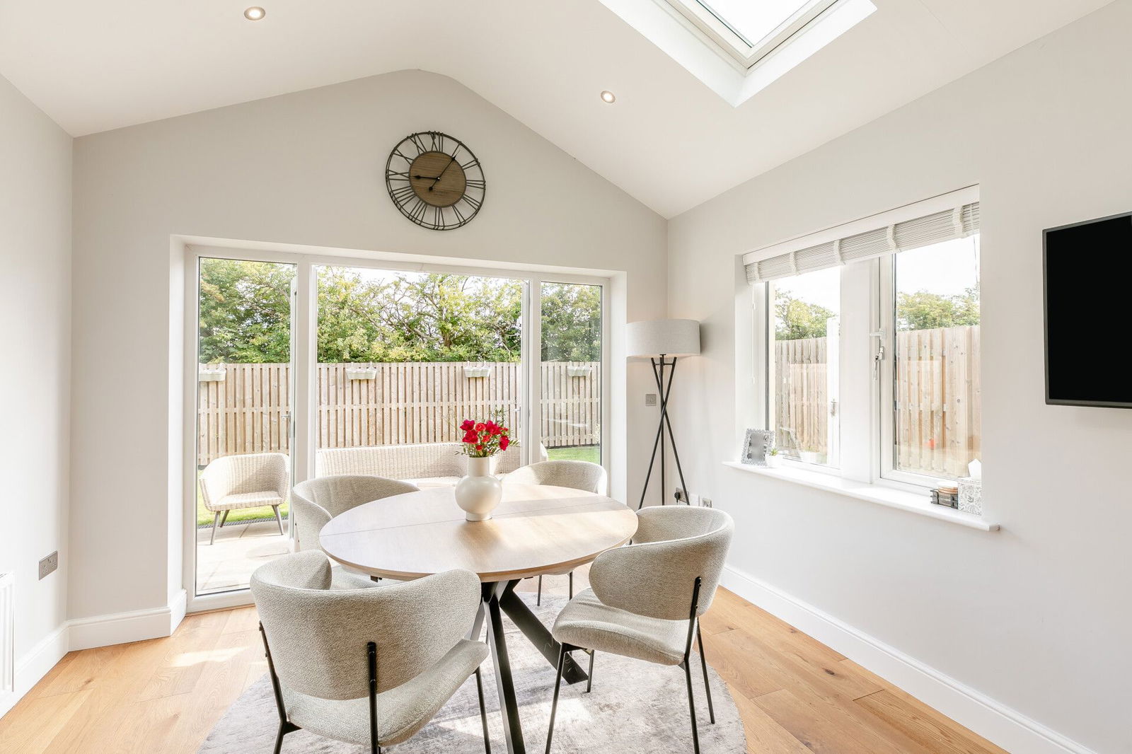 The utility has furniture matching the kitchen with a quartz work surface incorporating a sink, an engineered oak floor, plumbing for an automatic washing machine and a personal door to the side aspect. Access to a classroom presented with a modern two piece suite with complementary tiling to the walls and floor, and a frosted window.
