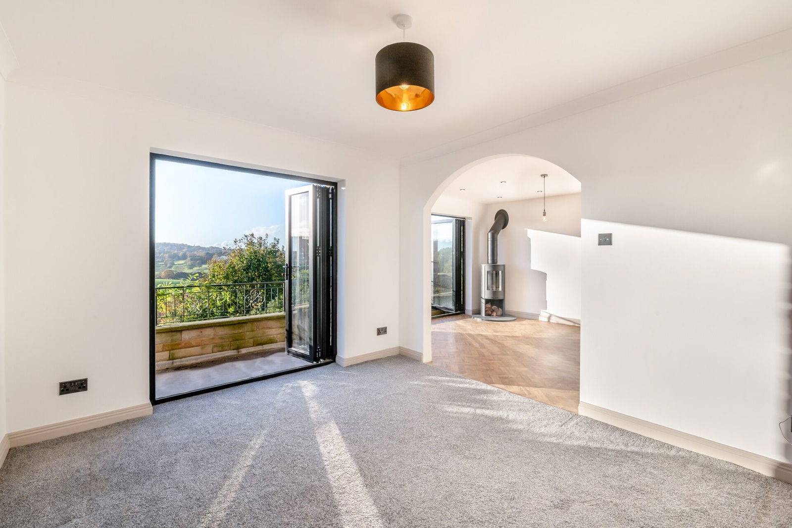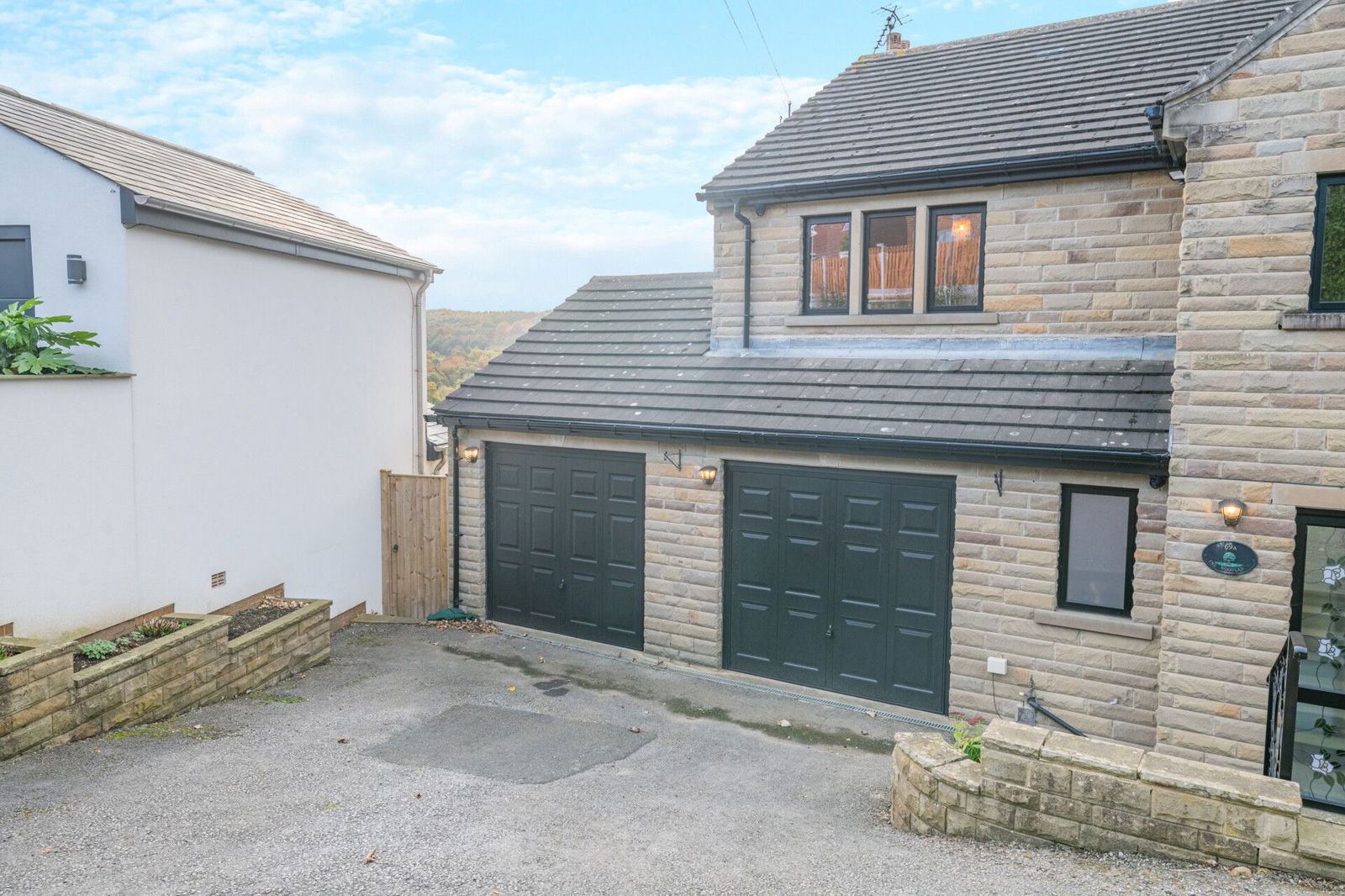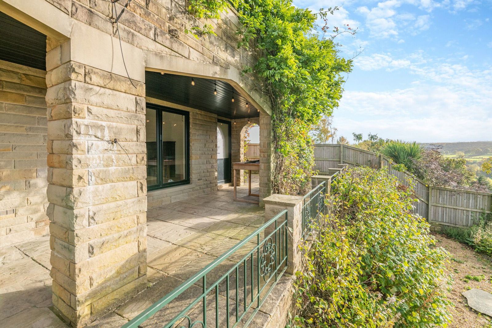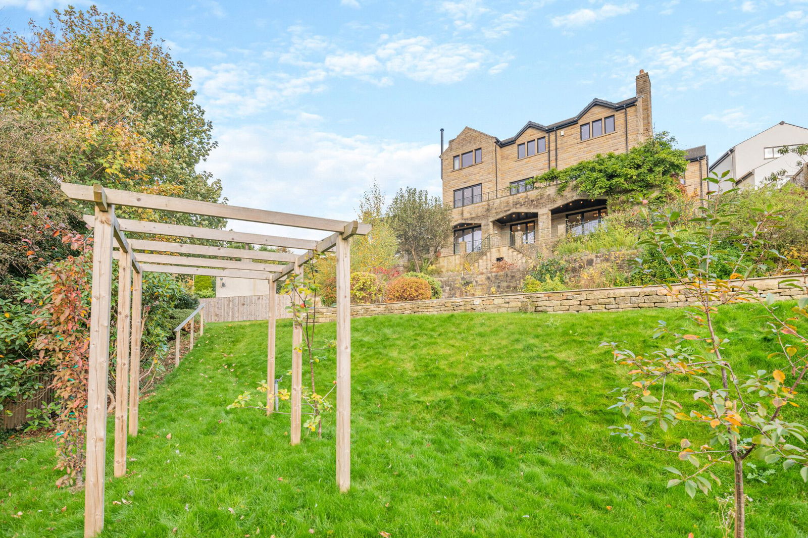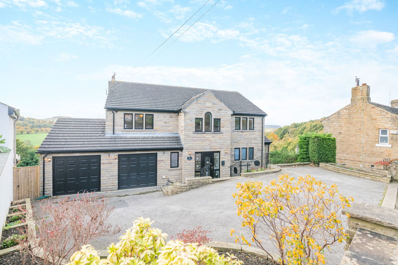 Understated from the front with a surprisingly large aspect and outstanding views to the rear, The Woodlands is a 3900sq ft detached family home that stands in grounds of 0.34 acres. This generous 6-bedroom detached family home incorporates an additional self-contained lower ground floor apartment which is ideal to accommodate an independent relative. To the rear aspect, there is an elevated outlook with stunning far-reaching views of Castle Hill and Woodsome Valley.