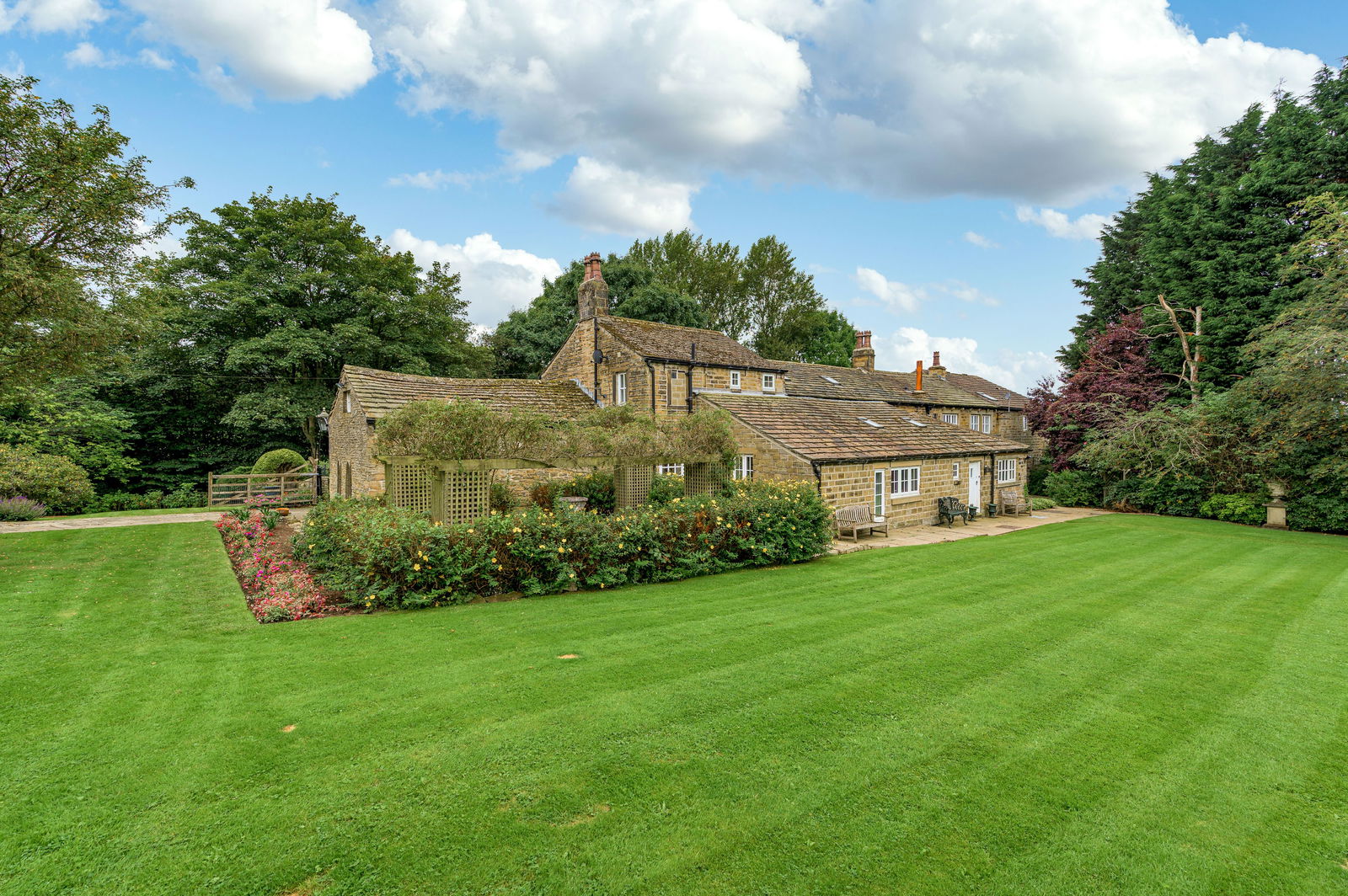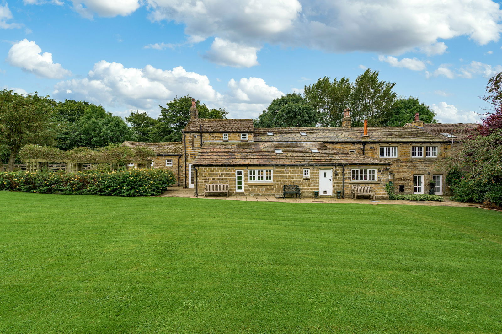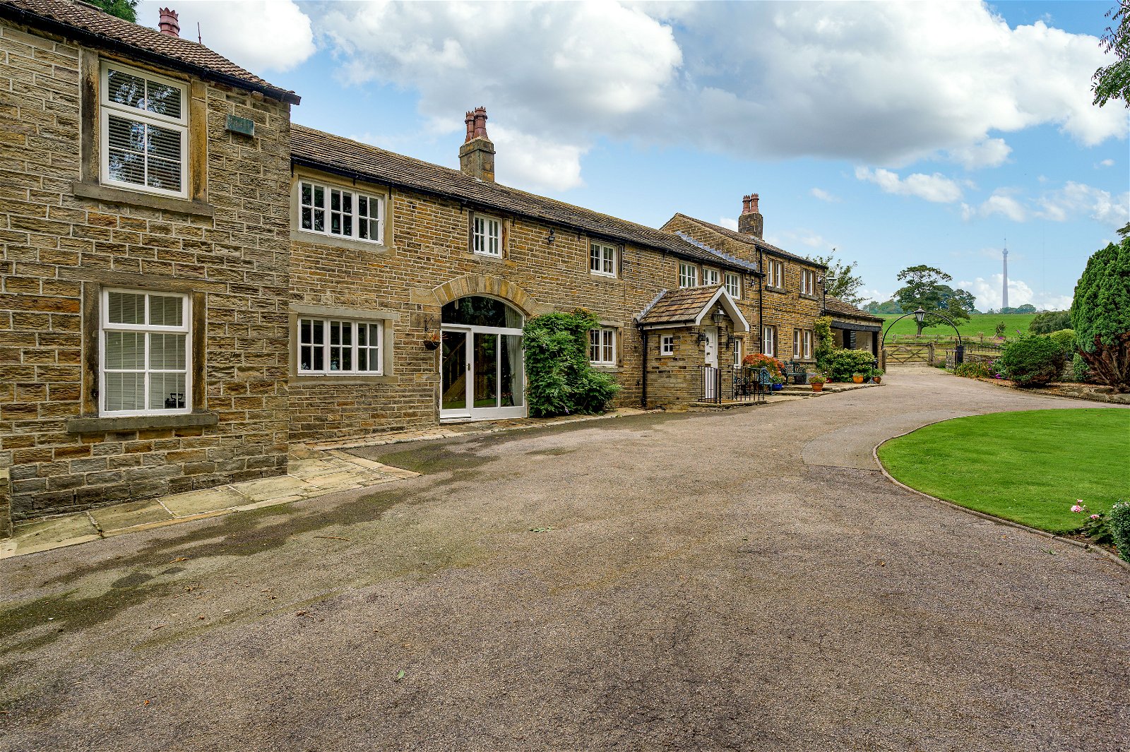 A handsome, stone property located in a private and tranquil setting of just over five acres surrounded by beautiful Pennine countryside yet just under a mile from the thriving village of Kirkburton. This six-bedroom period property has been sympathetically renovated throughout with a conversion of the adjoining barn to provide spacious and versatile accommodation, suitable for multigenerational living. With mature gardens, terraces, a stream, an orchard and superb equestrian facilities including paddocks, a menage and stabling, Folly Hall offers the most delightful outdoors lifestyle.