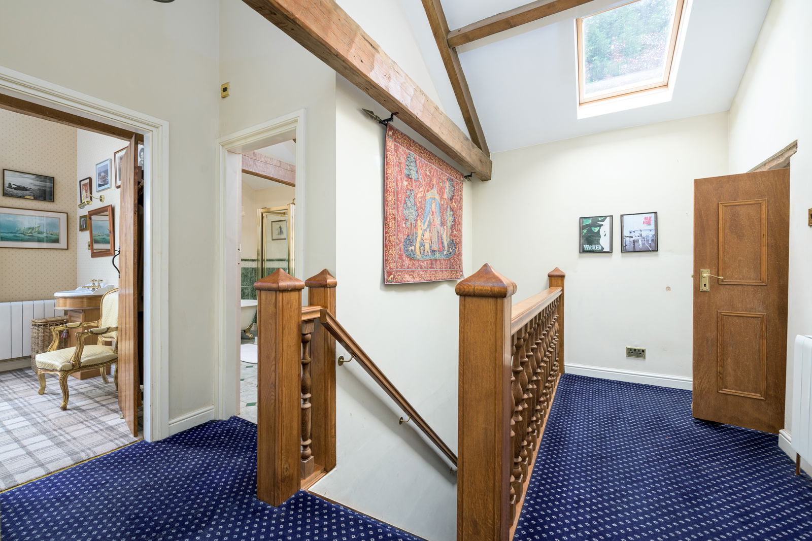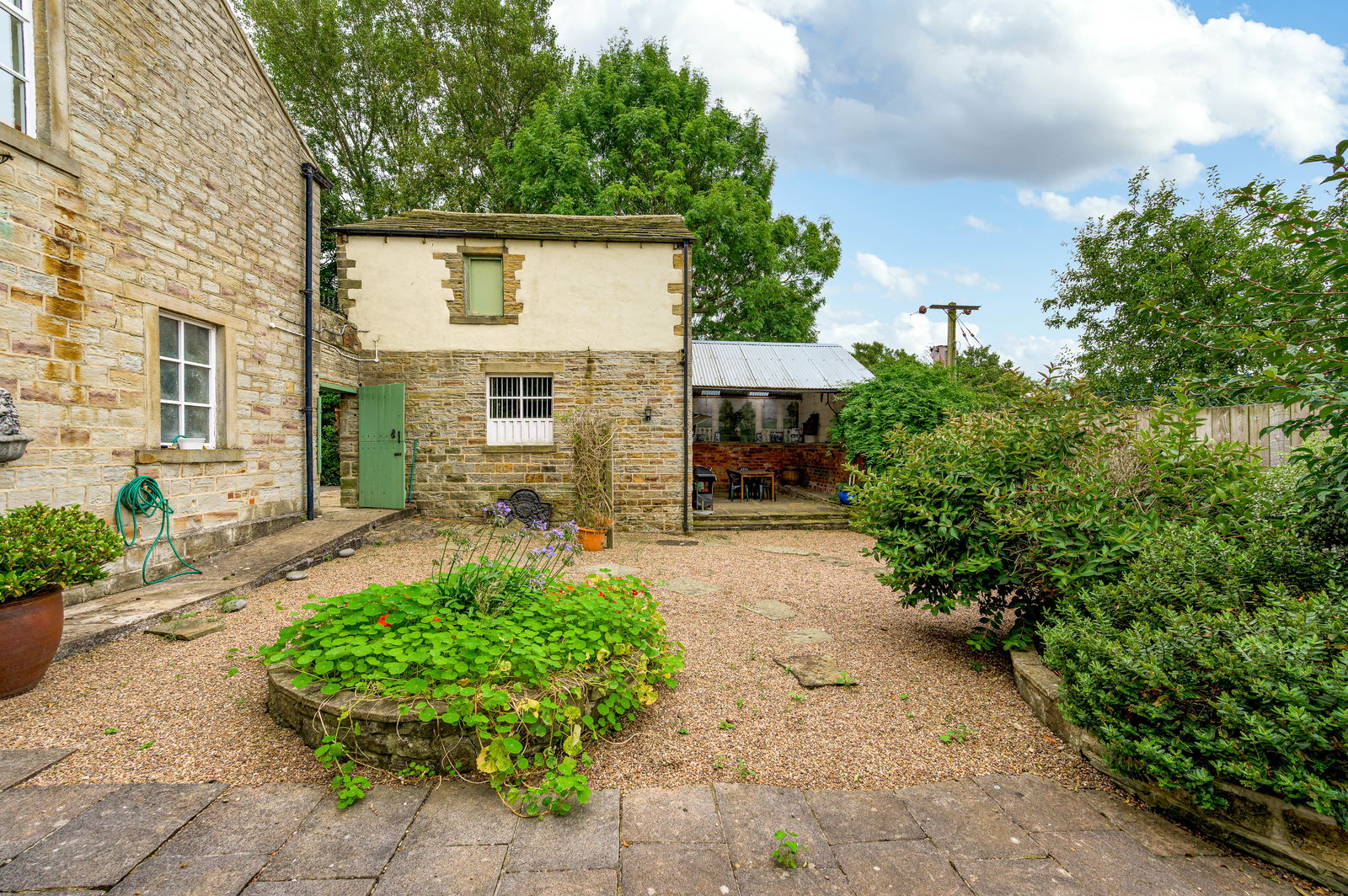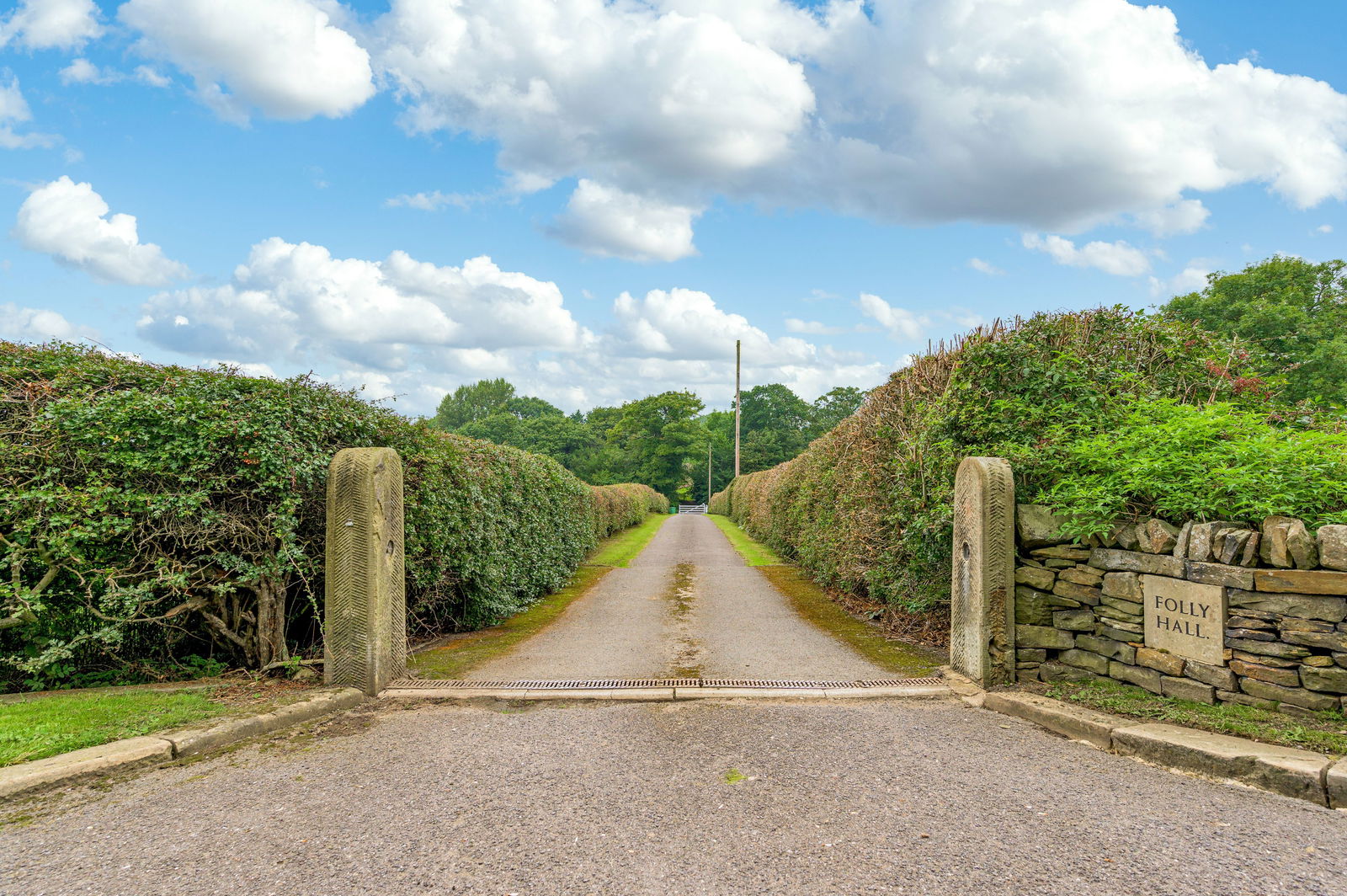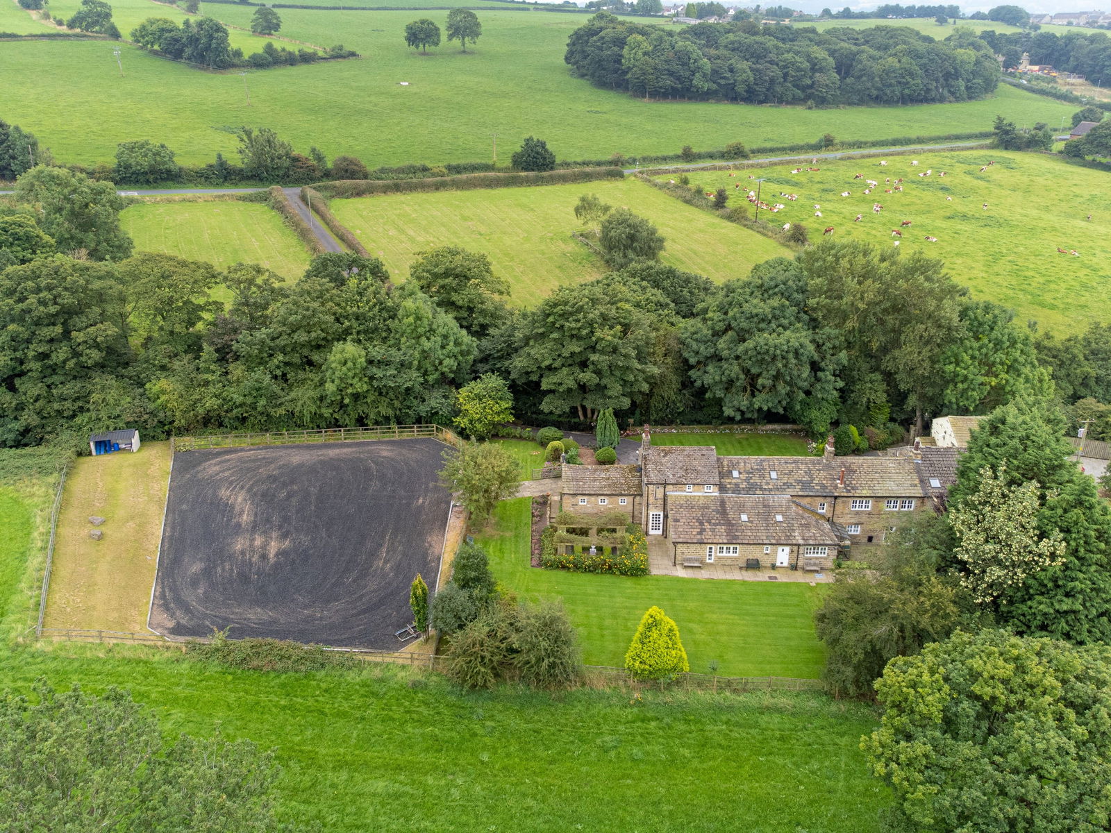 A handsome, stone property located in a private and tranquil setting of just over five acres surrounded by beautiful Pennine countryside yet just under a mile from the thriving village of Kirkburton. This six-bedroom period property has been sympathetically renovated throughout with a conversion of the adjoining barn to provide spacious and versatile accommodation, suitable for multigenerational living. With mature gardens, terraces, a stream, an orchard and superb equestrian facilities including paddocks, a menage and stabling, Folly Hall offers the most delightful outdoors lifestyle.