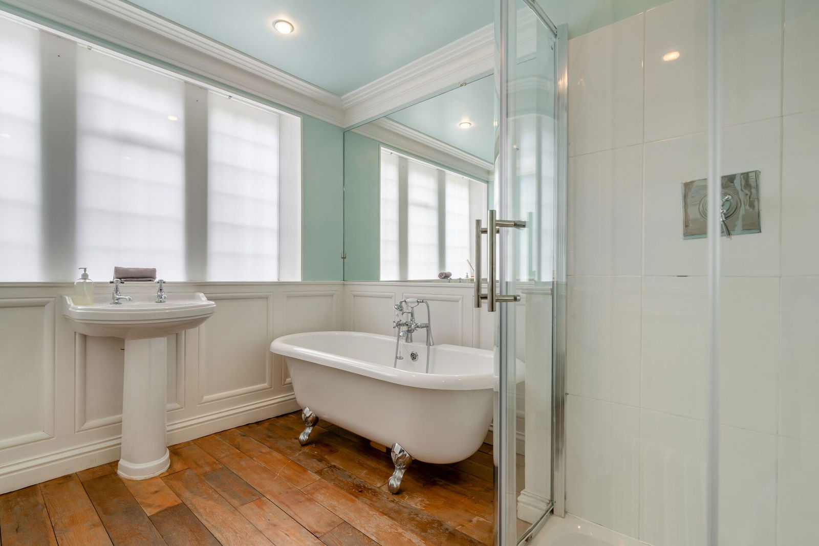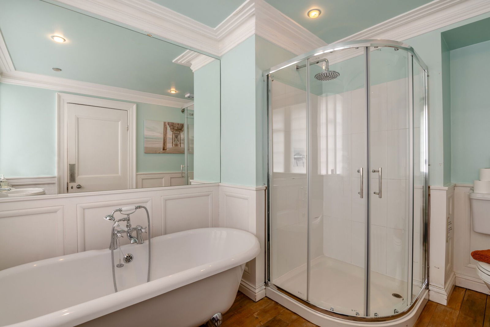 A double bedroom to the side has a self-contained en-suite bathroom that is presented with a three piece suite, a double bedroom to the front enjoys a double aspect position and once again has a three piece en-suite with a bath, low flush W.C and a pedestal wash hand basin.