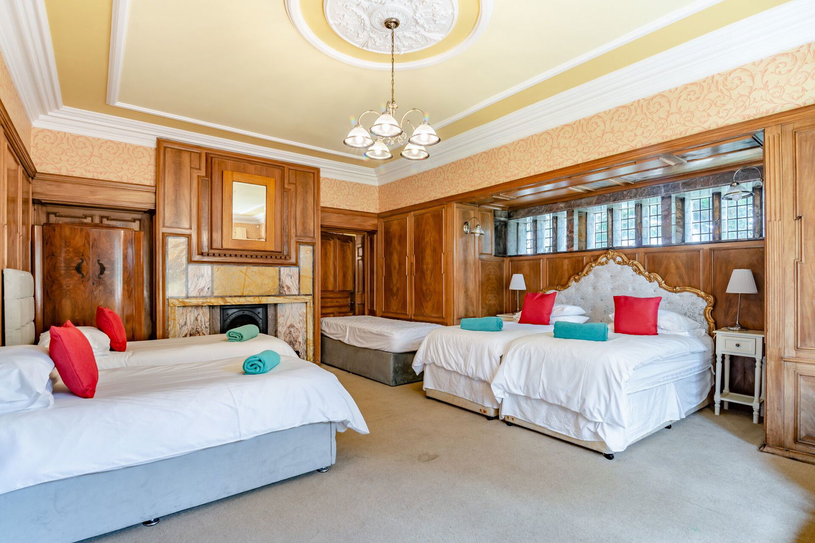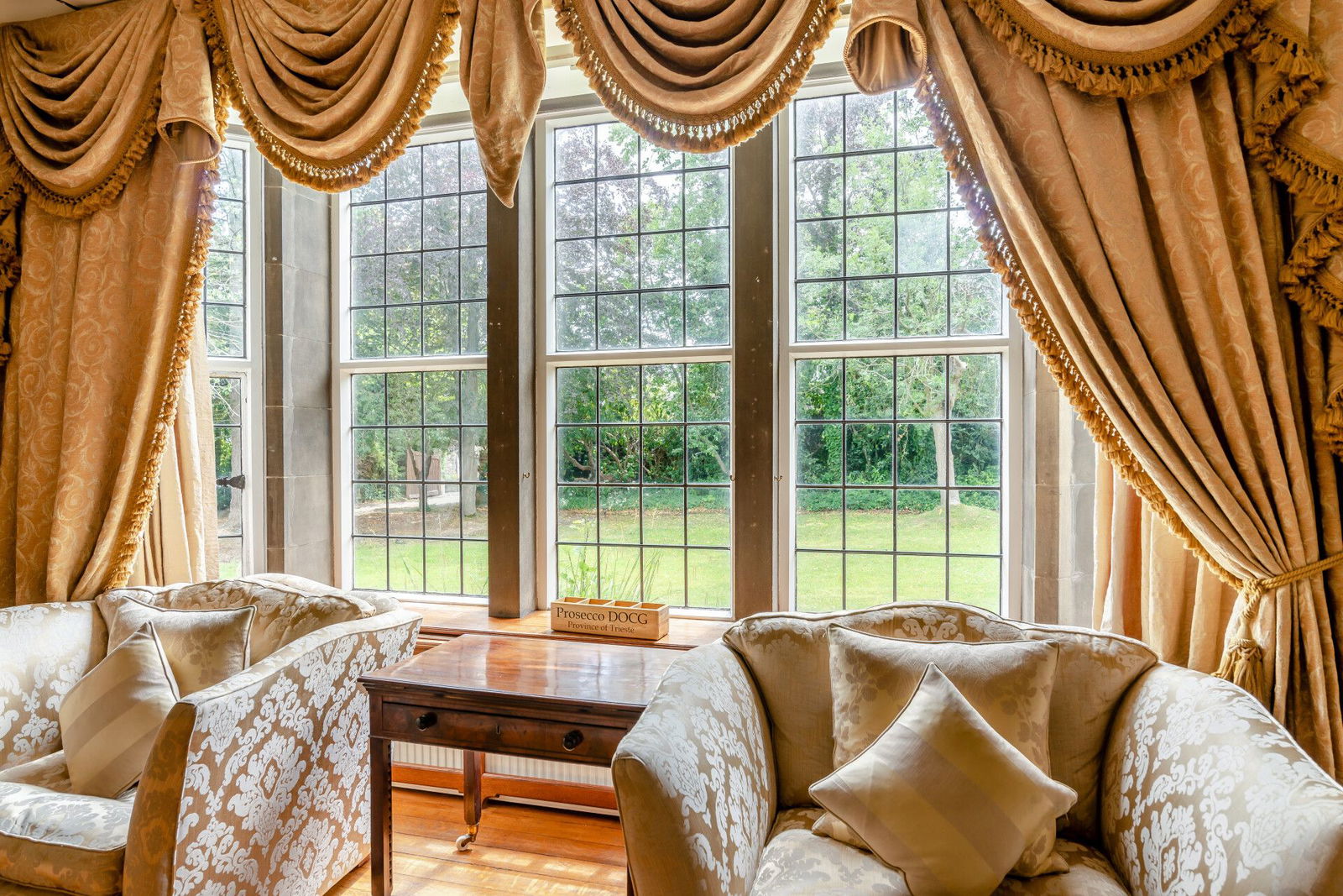 The sitting room enjoys a double aspect position, has feature wood panelling to the walls, a beautiful marble fireplace with real flame cast iron range whilst sash windows to the front and side aspects offer a delightful outlook over the grounds.