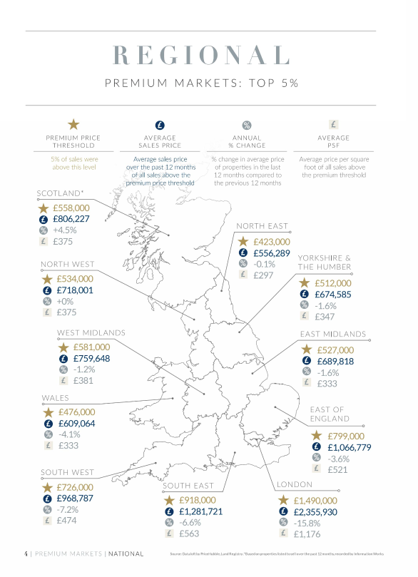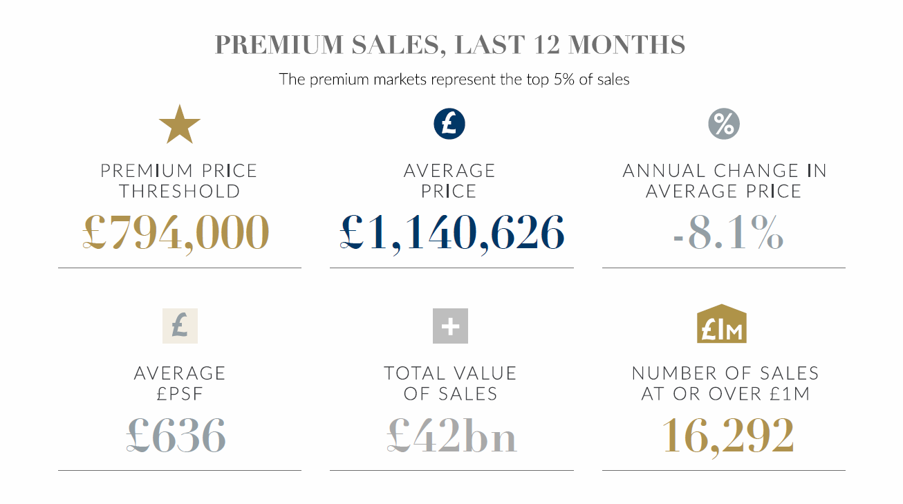 August saw a slight softening in the rate of annual house price growth to 2.1%, from 2.4% in July². Buyers have the upper hand in this high-supply market, so getting the price right is becoming increasingly important. On average, homes needing a price cut take 2.4 times longer to secure a buyer than those priced correctly from the outset³. Across the prime markets of England and Wales, the average price of a property is £1,140,626, down -8.1% compared to the same time last year.