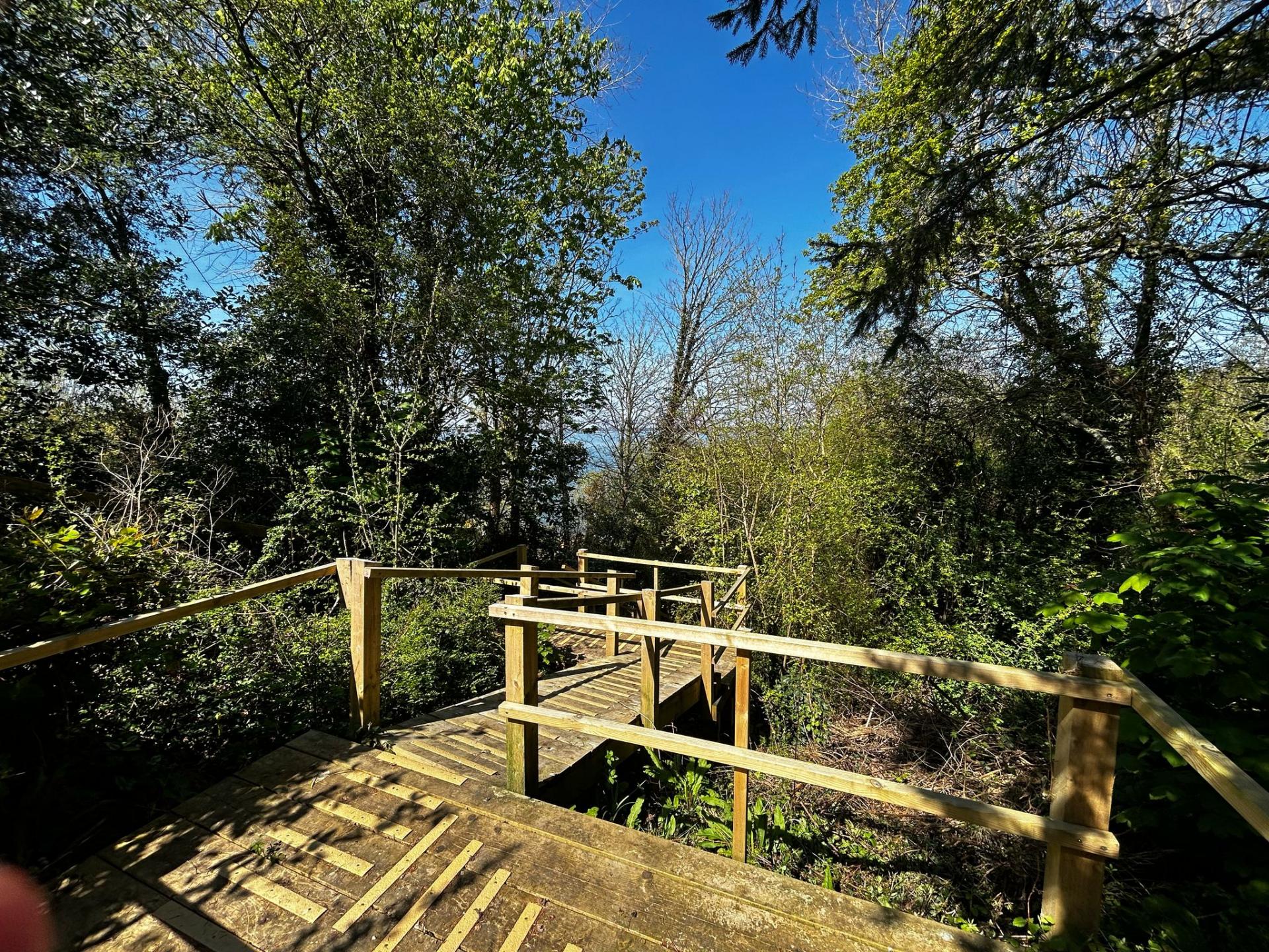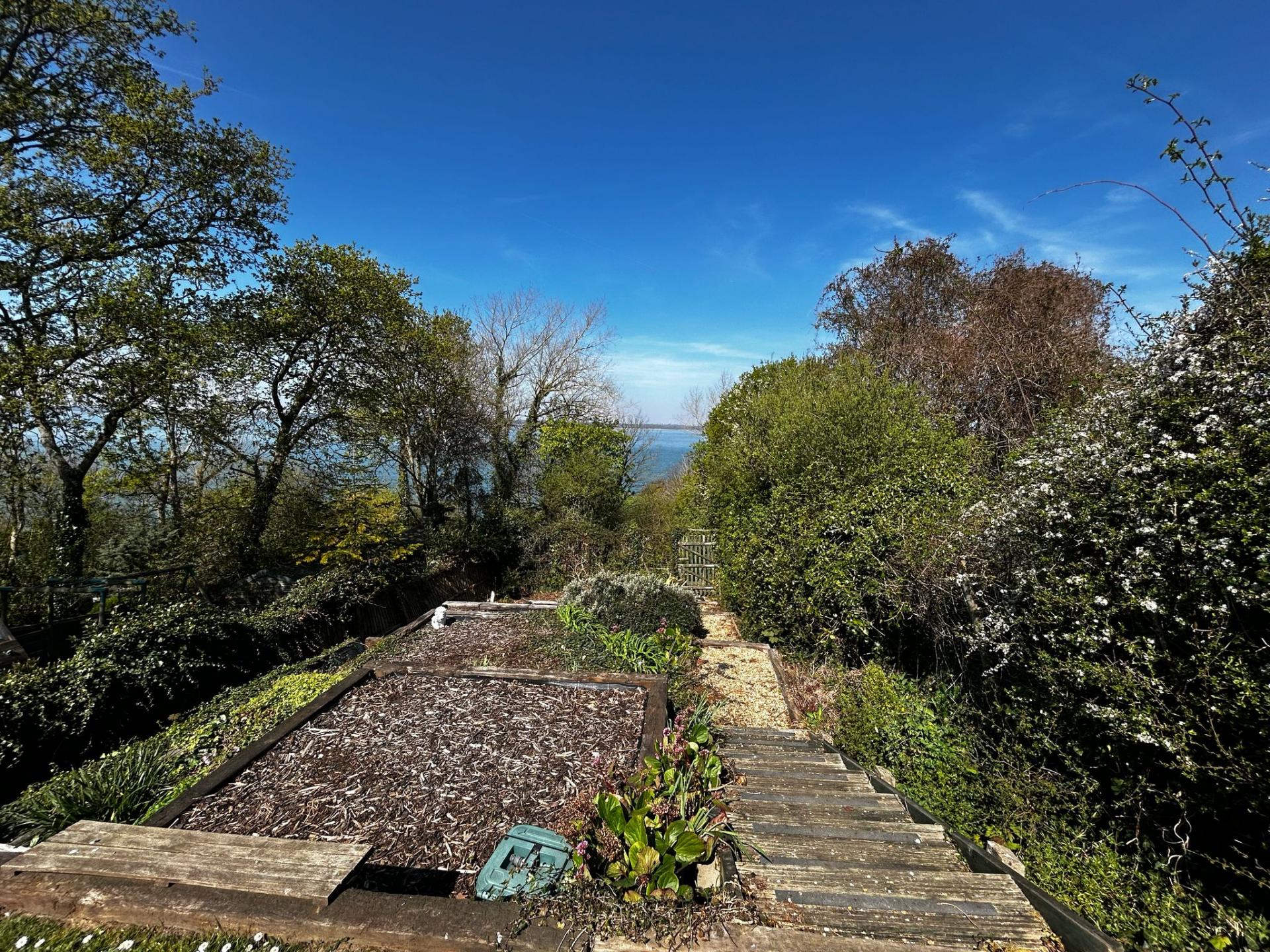 One of the standout features of this property is its private access to the beach. A newly built wide wooden staircase leads down to a leafy woodland pathway, which is included within the property’s boundary. This pathway leads directly to Gurnard Beach, offering a peaceful and secluded escape.