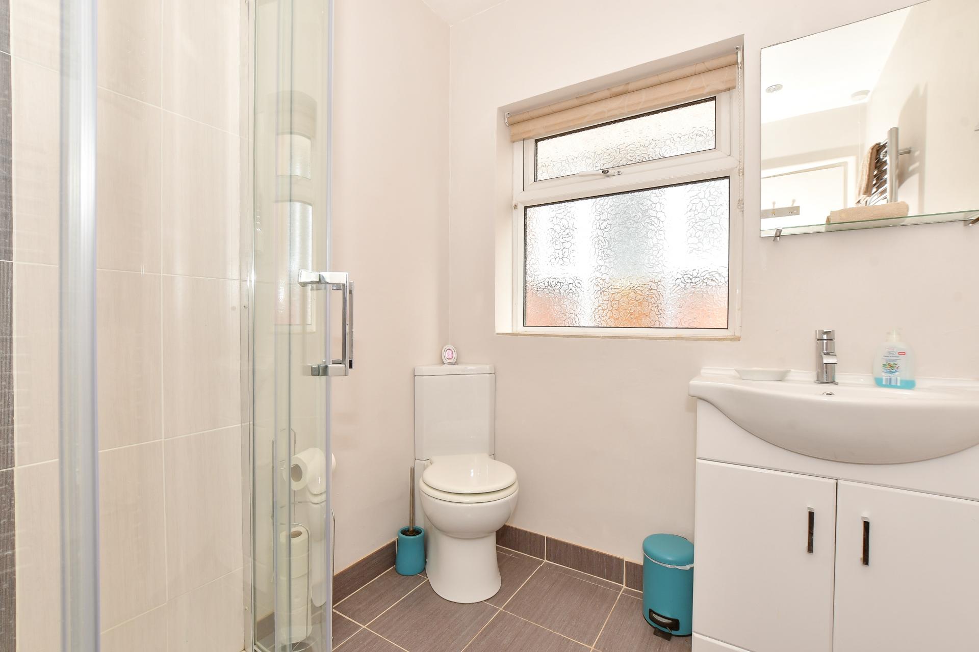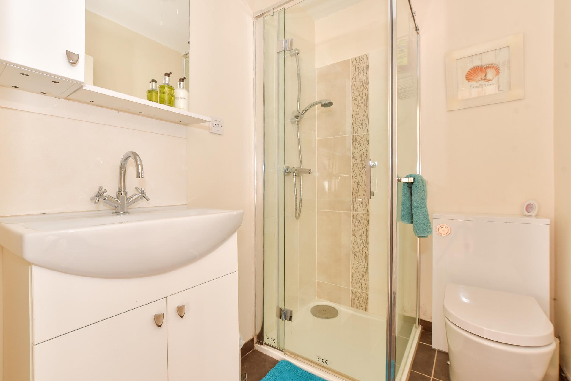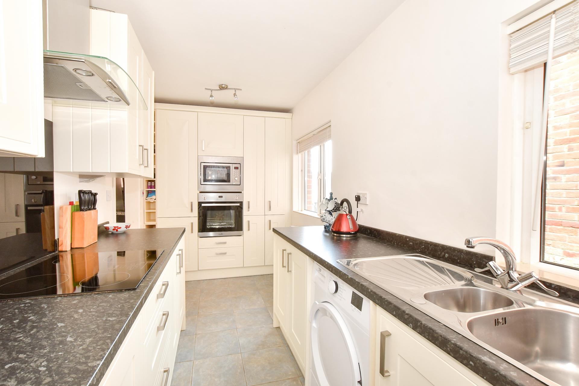 The kitchen is equipped with a range of ivory-coloured base and wall units, complemented by integrated appliances, including an oven, microwave, and a four-zone ceramic hob. Additional appliances such as a freestanding washing machine, tumble dryer, and fridge freezer are included, ensuring convenience and ample storage space for everyday living. The highlight of the property is the conservatory, which offers sweeping views over the garden and across The Solent. With wide sliding patio doors, this tranquil retreat offers a perfect space to enjoy the changing seascape, watch wildlife, or simply relax and take in the serene surroundings.