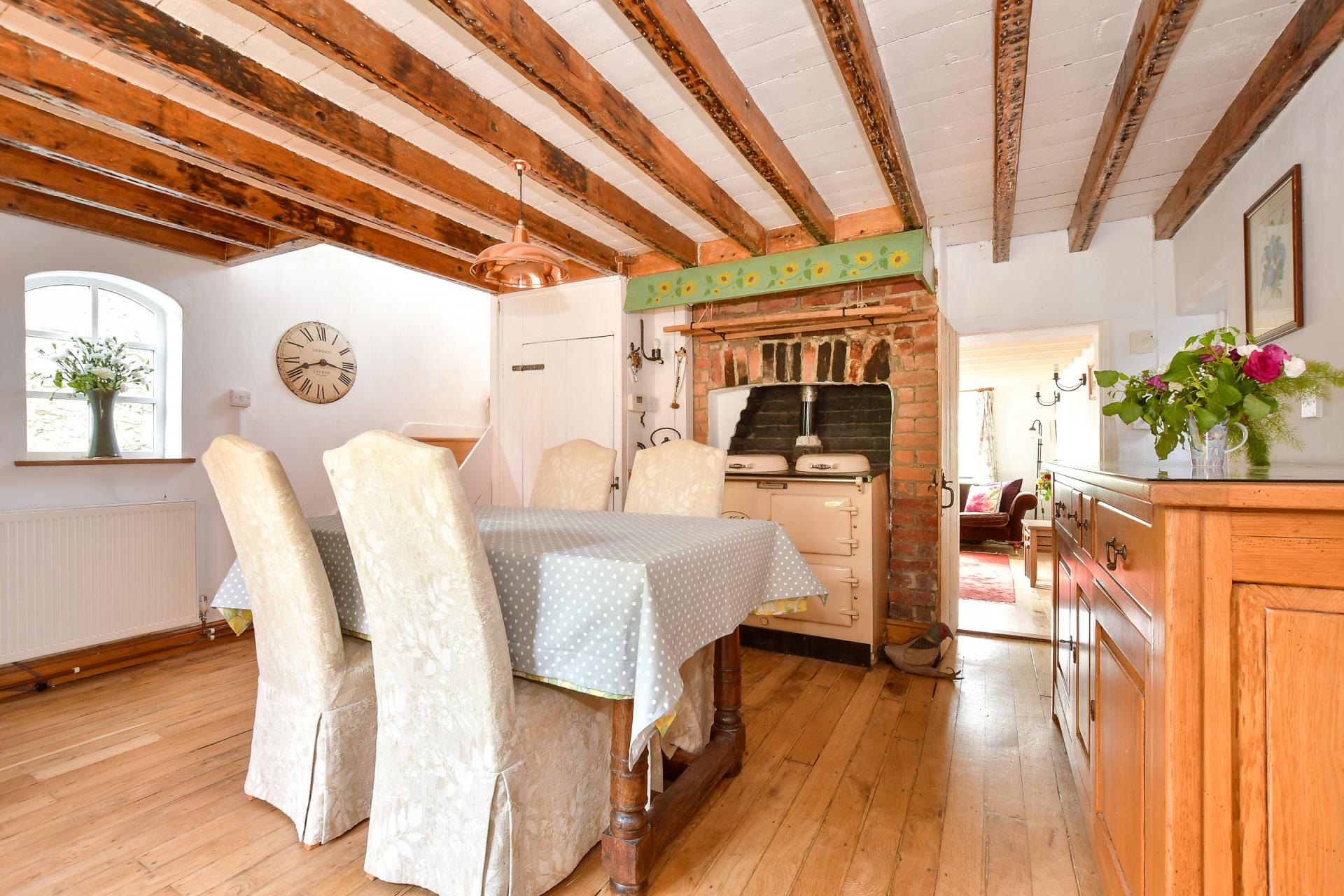 The separate dining room offers an elegant setting for family meals or dinner parties adjacent to the kitchen. The well-fitted kitchen is thoughtfully arranged to offer plenty of worktop and storage space, while retaining the cottage’s rustic, countryside charm. A well-appointed ground floor bathroom adds convenience and completes the downstairs accommodation.