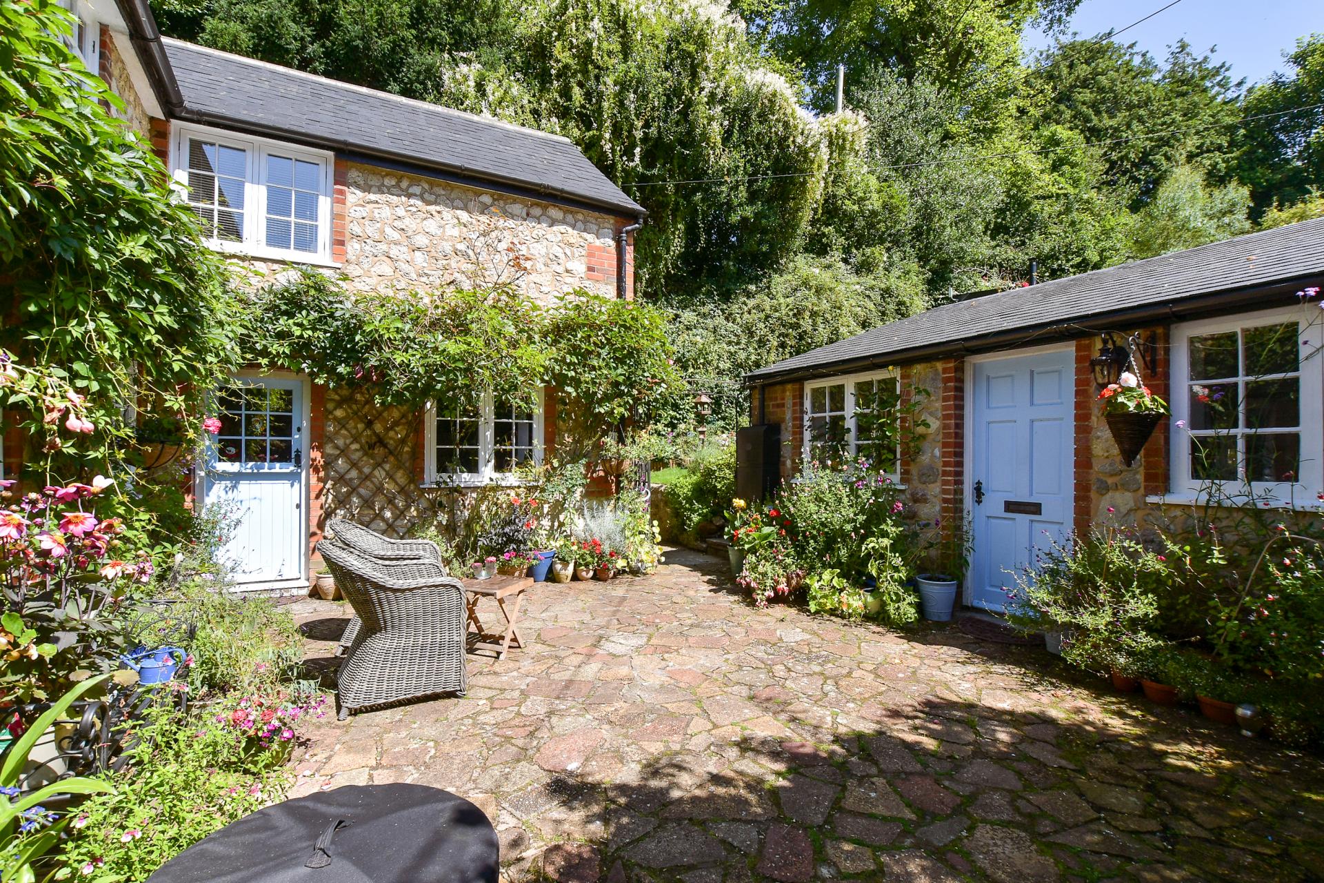 The substantial rear garden is a delight, the large private courtyard formally mentioned, gives access to a quaint stone outbuilding which has been divided into two rooms, one used a guest bedroom with an adjacent kitchenette, potentially allowing this building to serve as a home office if required.