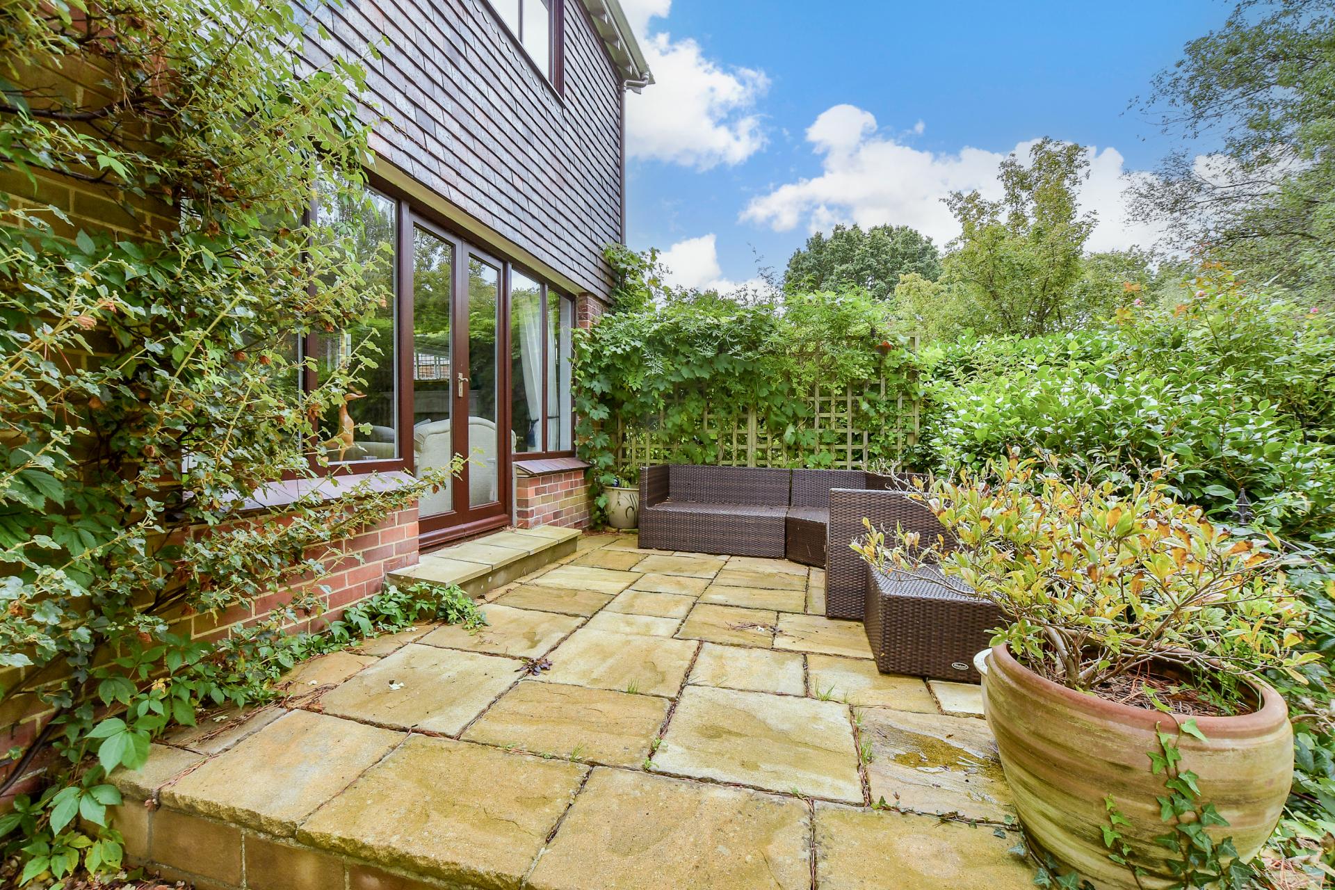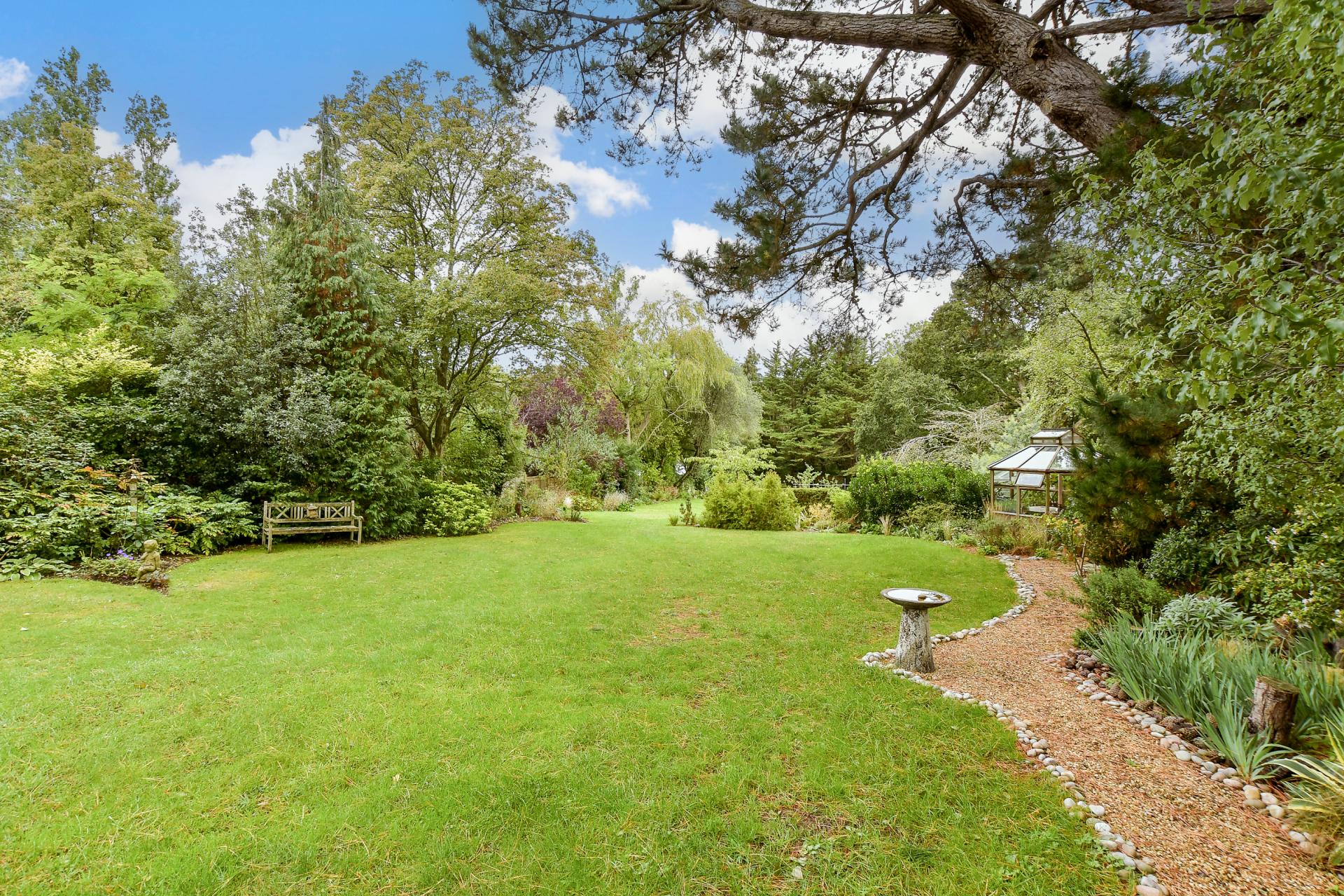 For those who love to garden, the grounds are a haven. Fruit trees, including apple, pear, plum, and damson, provide seasonal abundance, while wild orchids and an organic vegetable garden create year-round interest. The property also benefits from a greenhouse, gated vehicle access on to Ashlake Copse Road and pedestrian side access on both sides of the house.