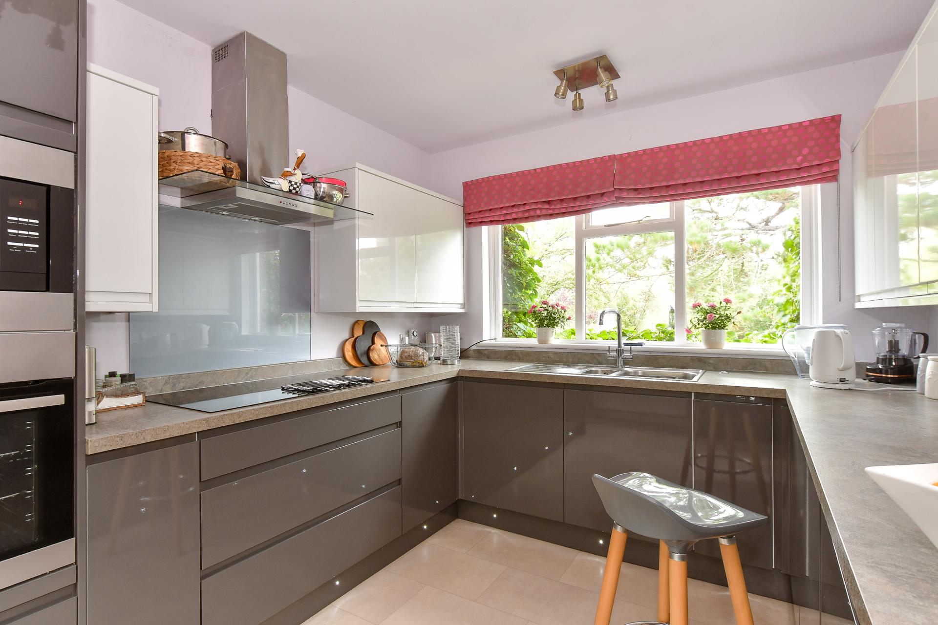 The heart of the home is its contemporary kitchen, replaced just six years ago with sleek wall and base units, contrasting worktops, and a range of quality integrated appliances, including oven, microwave, fridge freezer, dishwasher, washing machine, and a recently fitted electric hob. This bright, practical space flows naturally into the dining room, where a large window frames delightful garden views. Perfect for family gatherings or entertaining, the dining room links directly to the dual aspect sitting room. Here, French doors open onto a full width raised patio, creating a seamless transition between indoor and outdoor living.