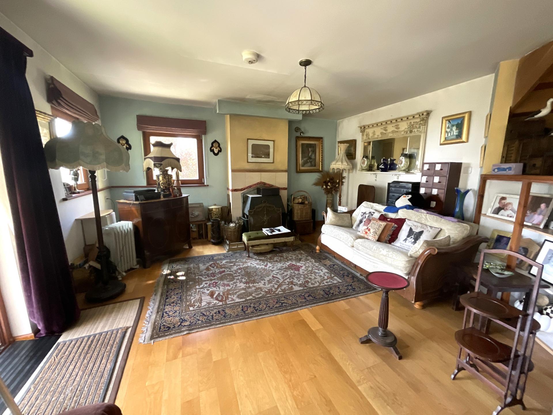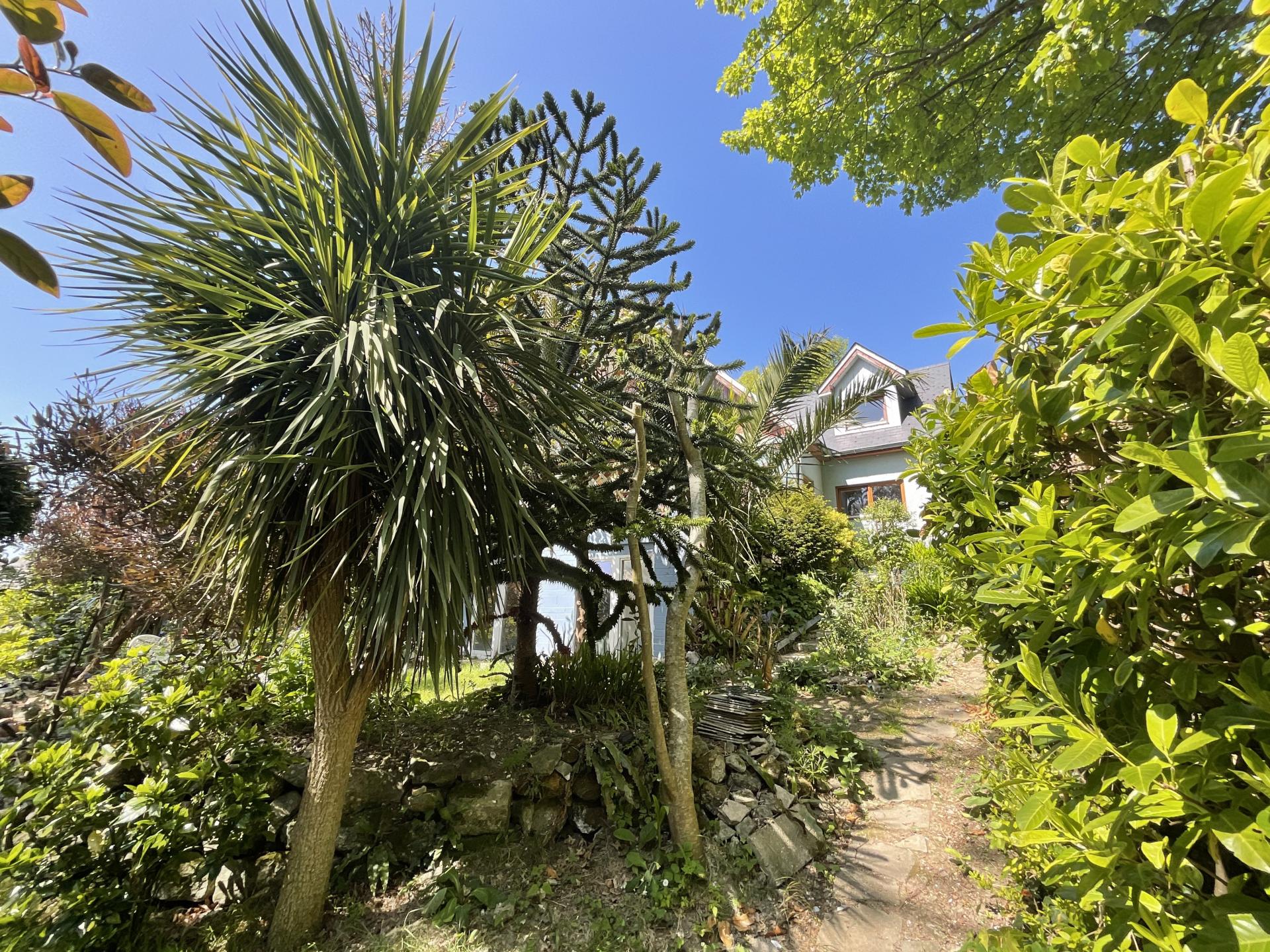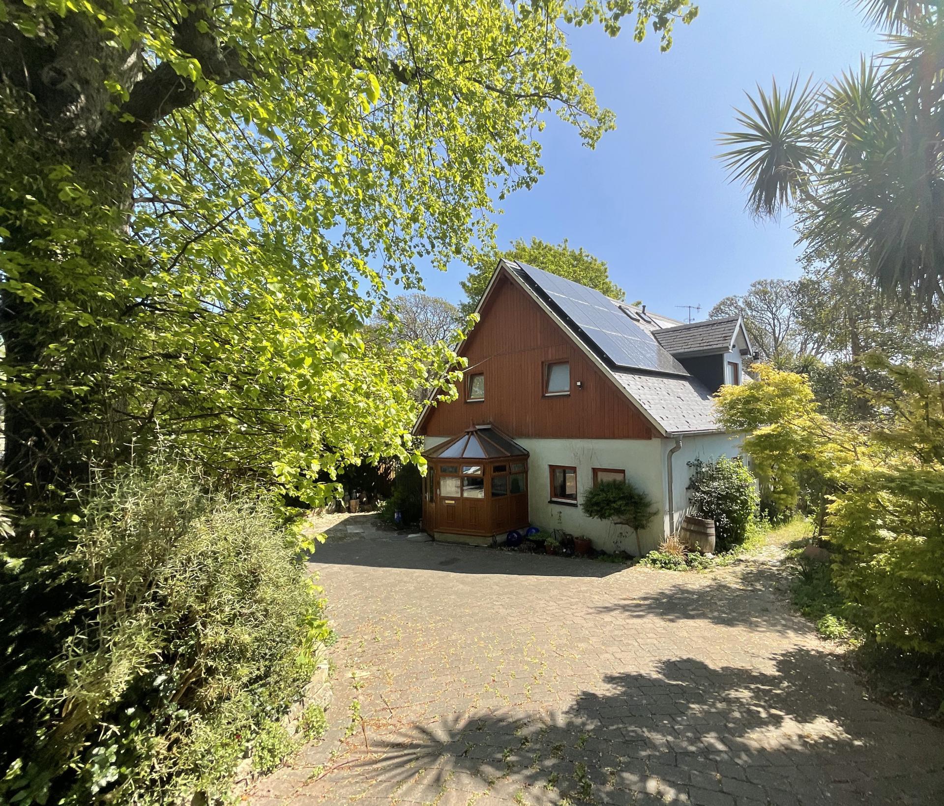 Outside the driveway, where you can park numerous vehicles, continues past the house to the garage and the garden. Here you will find a summerhouse and delightful shrubs and trees as well as a lawned area and delightful rockeries and pathways leading down to a gate in the wall, adjacent to the road, opposite the entrance to flowers brook.