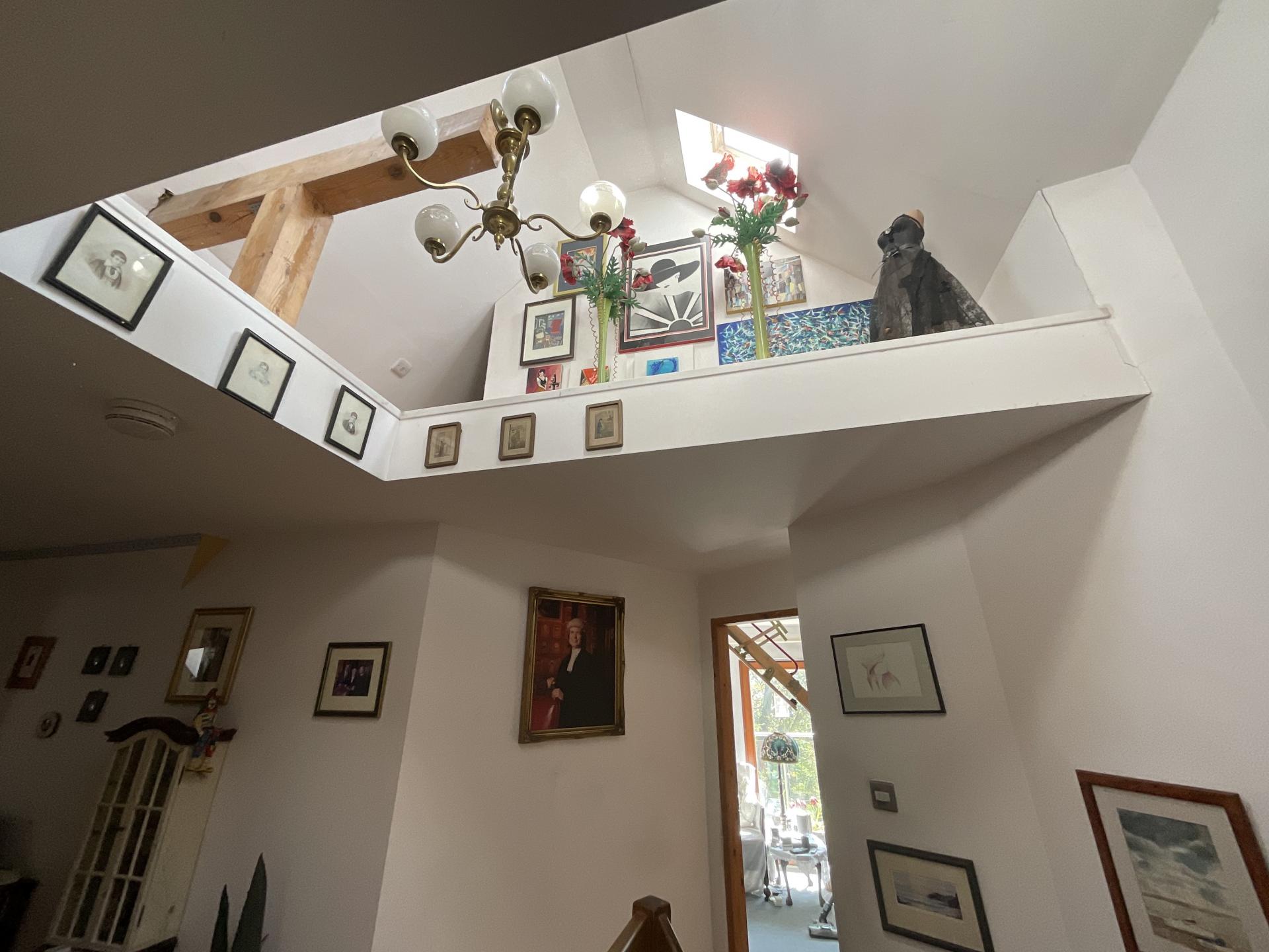 The staircase, with its unusual steel and wood uprights leads to the galleried landing that is big enough to be used as a seating or study area. It has a large skylight providing natural light and access to the boarded loft that is ideal for storage. There is a family bathroom with a corner bath and three bedrooms including the main bedroom. This lovely room, with a partially vaulted ceiling, has an en suite shower and two sets of patio doors to a good-sized balcony with a steel and glass balustrade. So, whether you are sitting up in bed or drinking your morning coffee on the balcony, you can revel in the panoramic vista.
