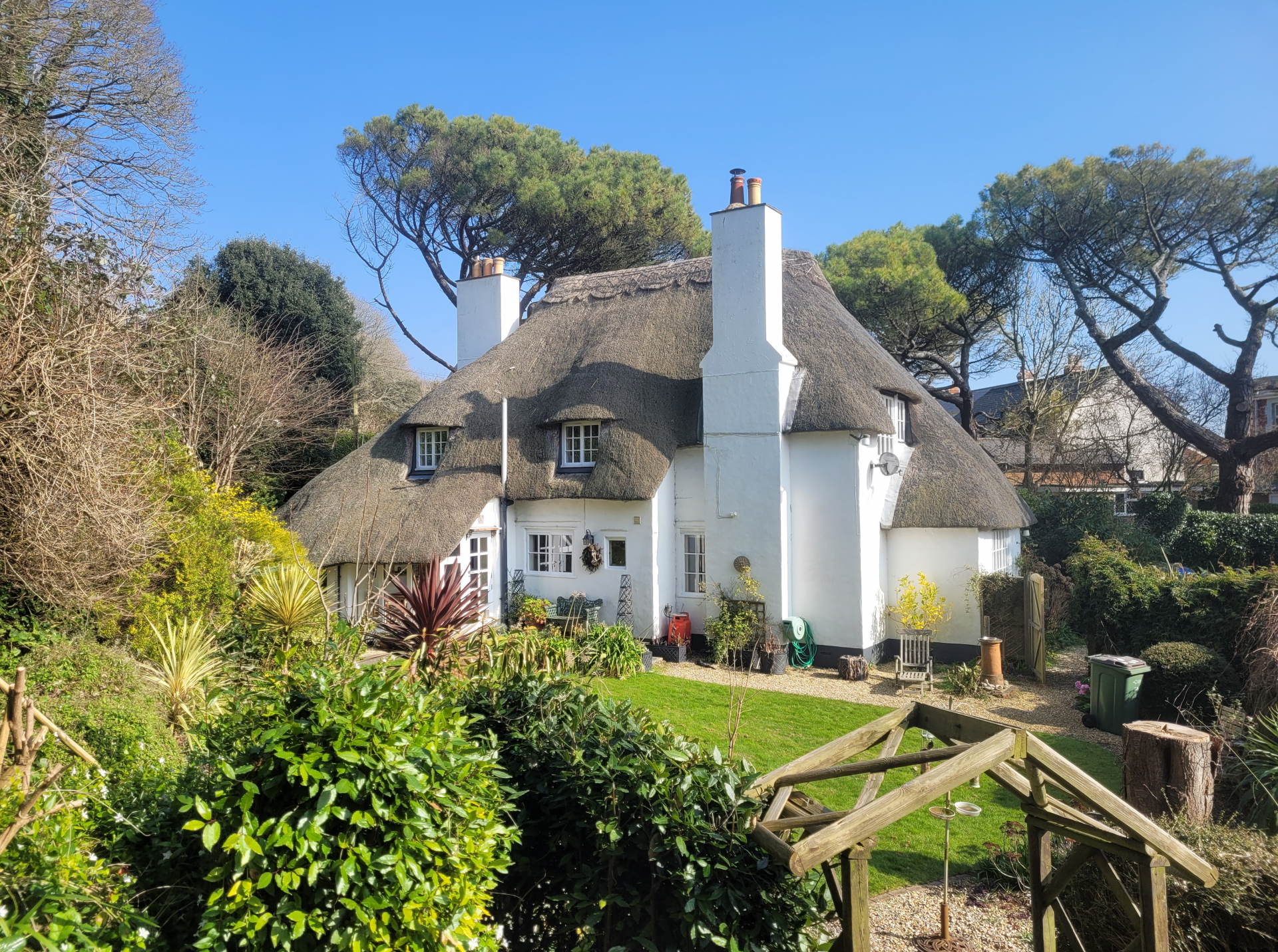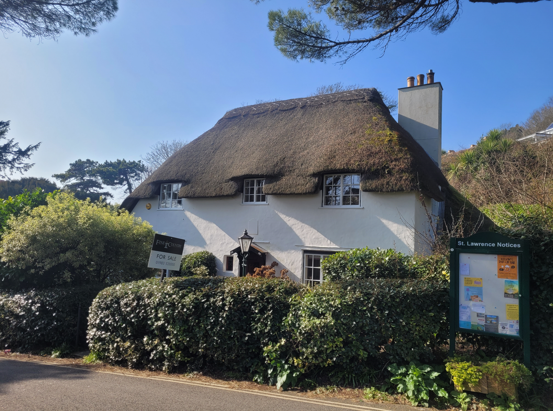 This charming thatched cottage, designed by Baillie Scott, is nestled in the peaceful village of St Lawrence, offering stunning sea views. Surrounded by large, mature gardens, it features ample parking and a garage. The perfect blend of character and tranquility, this property provides a serene retreat with picturesque landscapes and coastal beauty.