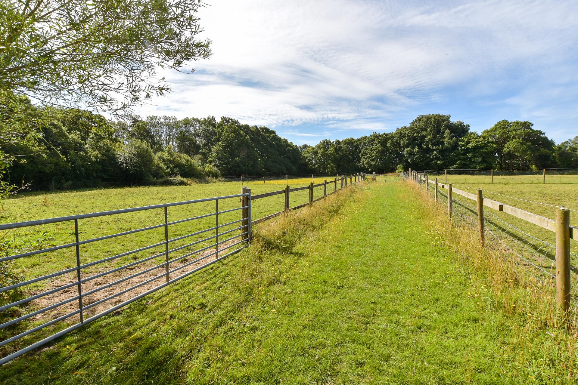 The equestrian facility comprises of a large stable yard which includes fifteen stables as well as store and tack rooms. Additionally, there’s a feed store here, as well as a convenient toilet and utility room, with plumbing for a washing machine and space for a tumble dryer. Of the ten acres in total, nine are used for grazing and are divided into numerous paddocks, several of which benefit from field shelters. There’s also the added advantage of a purpose designed all-weather turnout paddock – a necessity for horse owners with our increasingly wetter winters here in the UK. And of course, no equestrian facility would be complete without a menage.