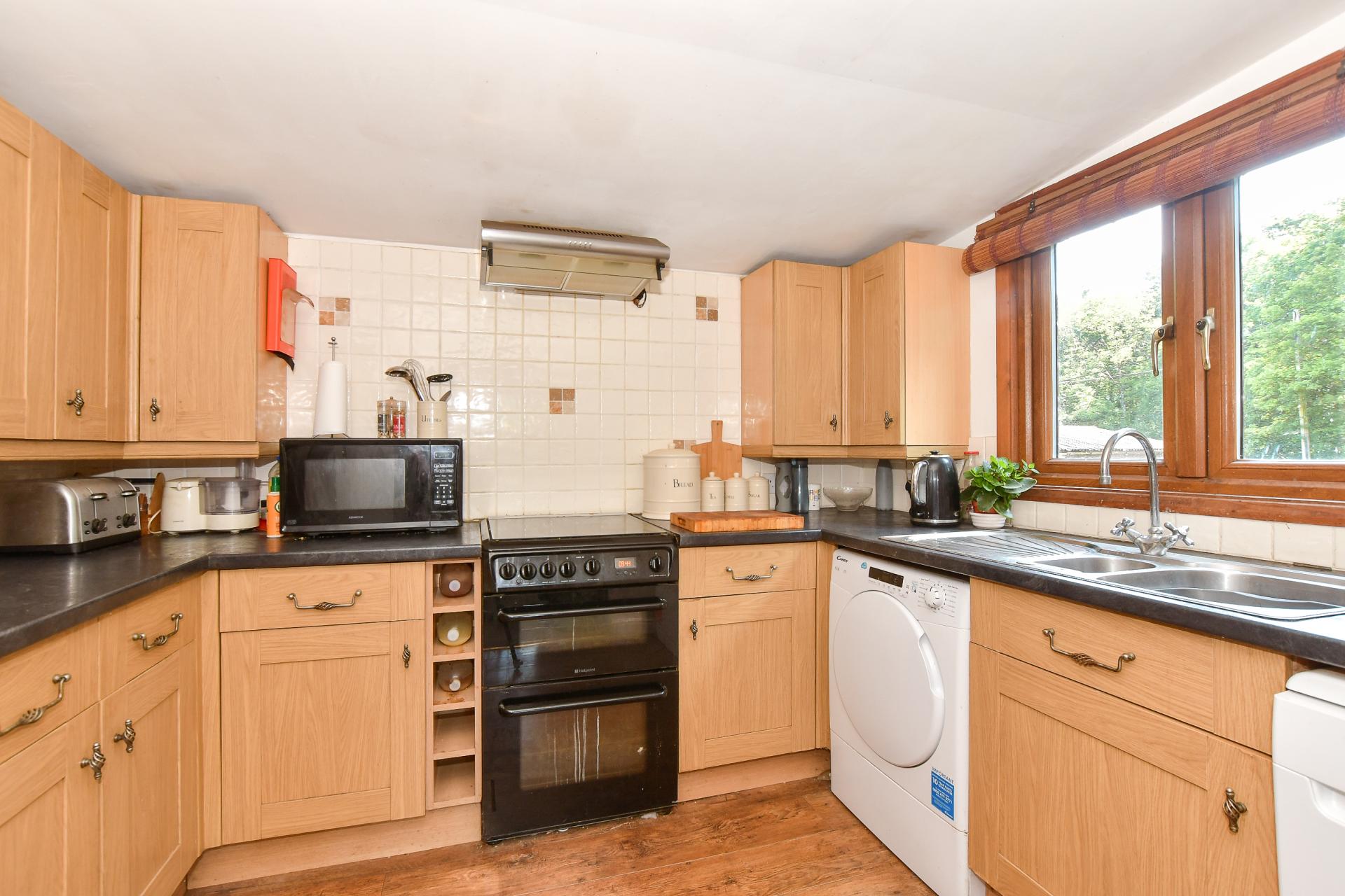 Situated off a quiet, country lane, down a private driveway, in a picturesque location surrounded by fields and woodland, lies this idyllic, pretty cottage with a large, enclosed garden, bordered by a quaint, picket fence and ample parking for numerous vehicles as well as a garage. Inside you’ll find a well-equipped, contemporary kitchen complete with space for a dishwasher and tumble dryer as well as the American style fridge freezer. This opens out via an archway into the spacious sitting room that’s bathed in natural light from the French doors and dual aspect windows, and which boasts an attractive wood burning stove.