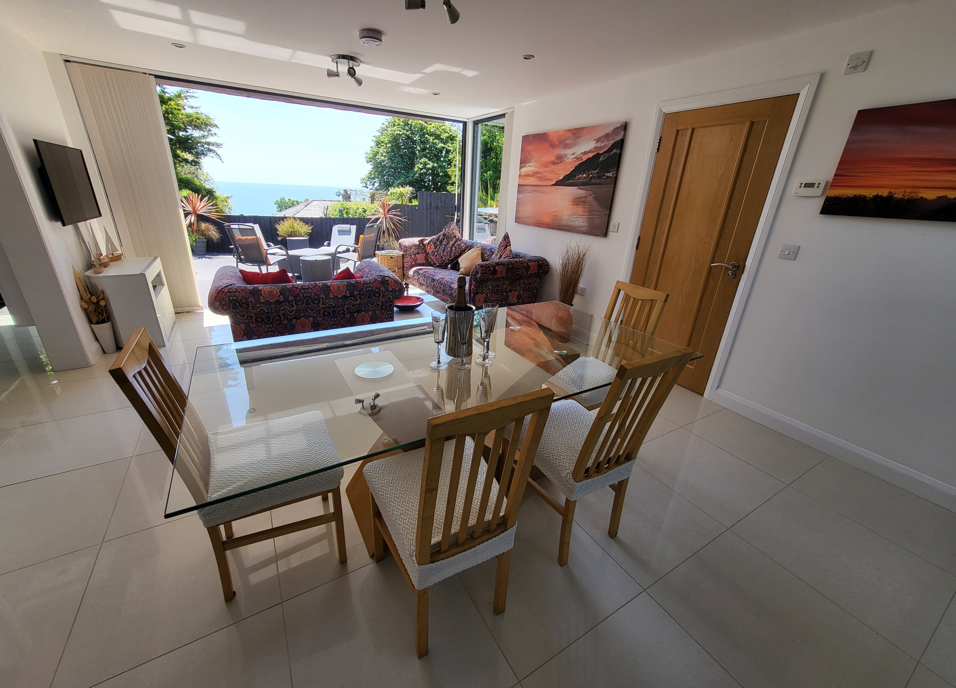 Outside the block paved driveway provides off road parking for three cars and leads to the garage/cycle store. The low maintenance, non-overlooked, secluded garden, includes decked terraces with delightful sea views and two useful outbuildings, as well as sub-tropical planting, that enjoy the local micro-climate.