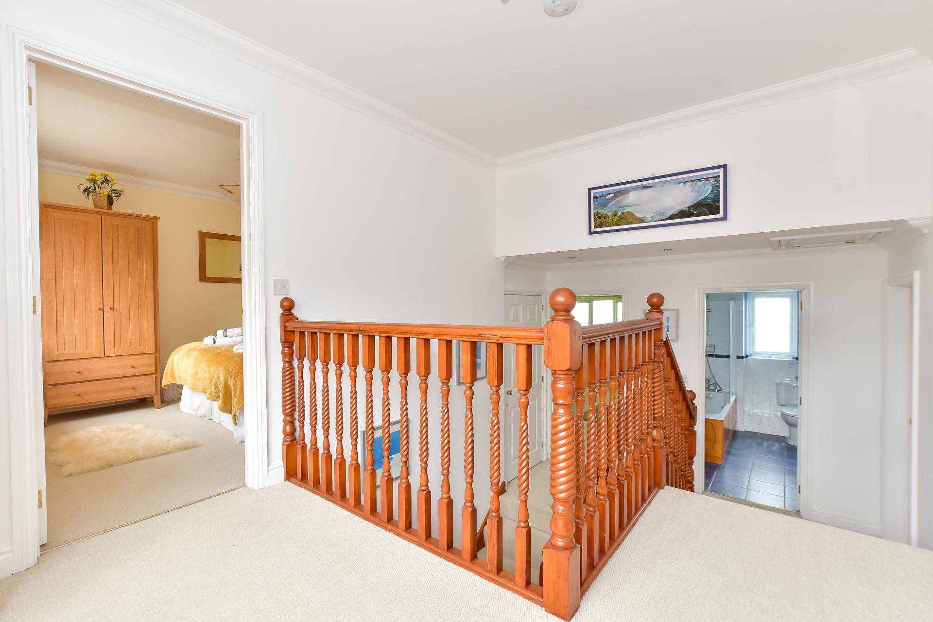 An exceptional, detached residence located within an exclusive cliff top cul-de-sac of four houses, this individual executive-style home offers stunning panoramic sea views, including breathtaking vistas of Sandown Bay and Culver Cliff. Completed in 2002 to a very high standard, its elevated position and thoughtful design maximizes the amazing coastal views, with the property enjoying an easterly aspect.