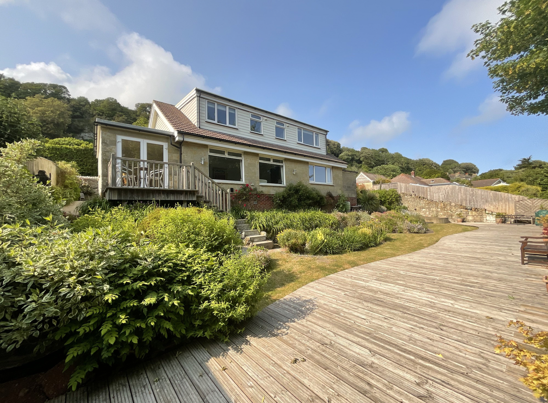 This impressive, four-bedroom property in the quaint coastal village of Bonchurch is situated in an elevated position, in a very desirable road of individual homes, affording views of the English Channel, framed by ancient trees.